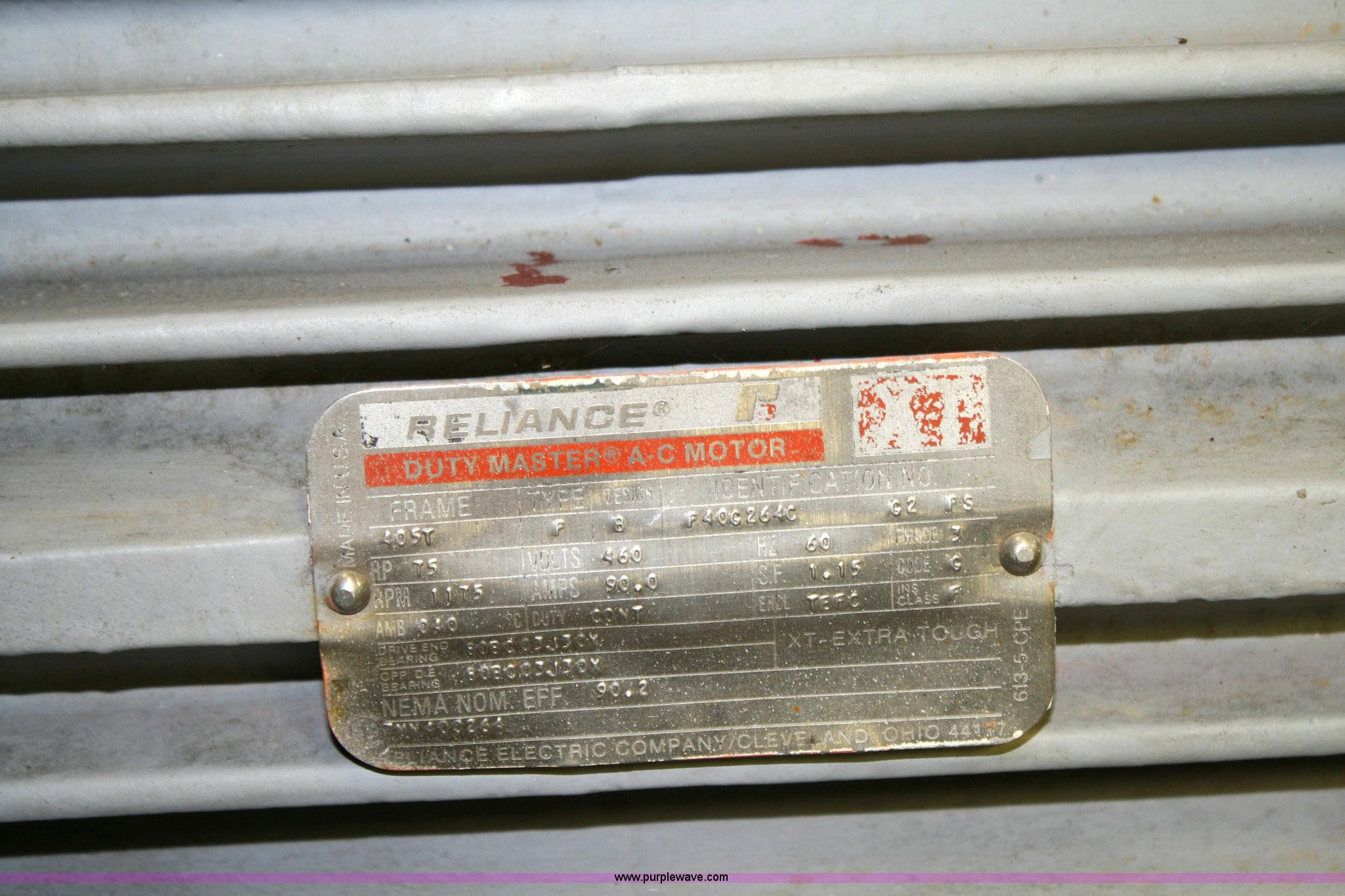 Purple Wave is selling a used Tools in Kansas. This item is a Reliance Duty Master AC motor with the following: 75hp, Three phase, 460 volts, Continuous duty, Identification# F40G264CG2PS