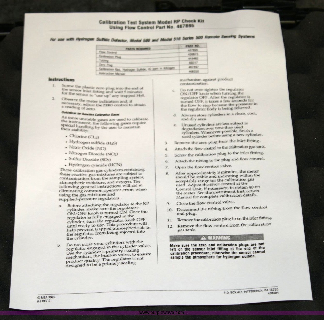 (2) MSA Orion multi-gas detector has sold in Colwich, Kansas for $231. Item 6512 sold on November 17th, 2010.