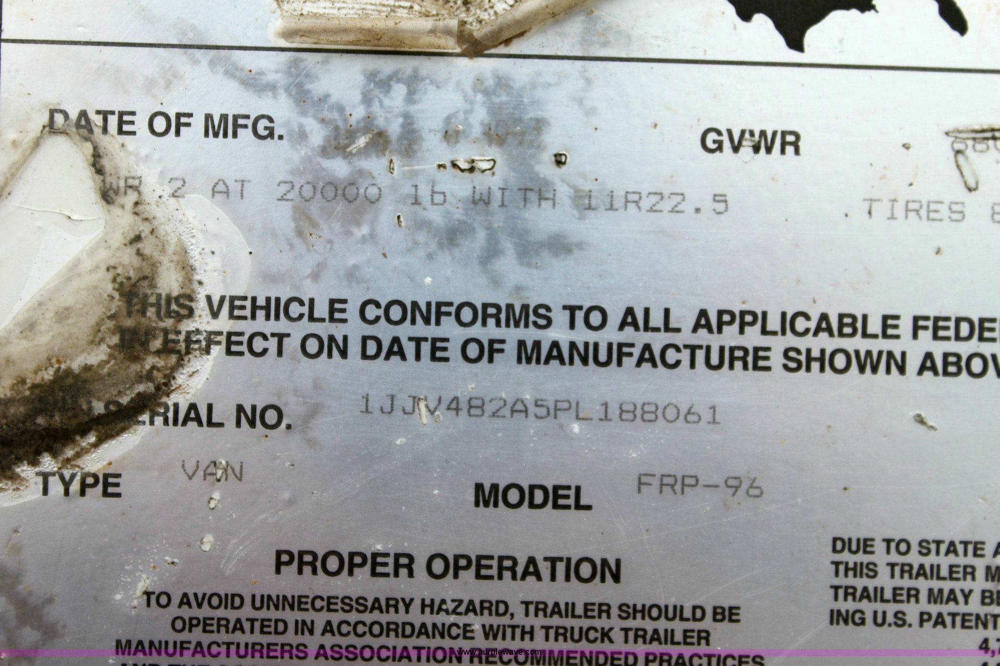 1993 Wabash FRP-96 48' van trailer. GVWR 68,000 lbs , 11R22.5 tires. 1JJV482A5PL188061. Shipping quotes available. ICM. 310 N 1st. Colwich, KS 67030