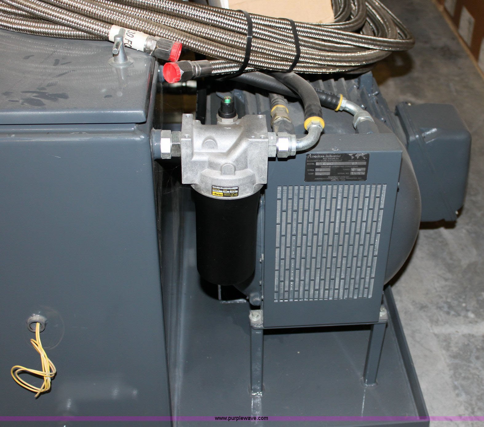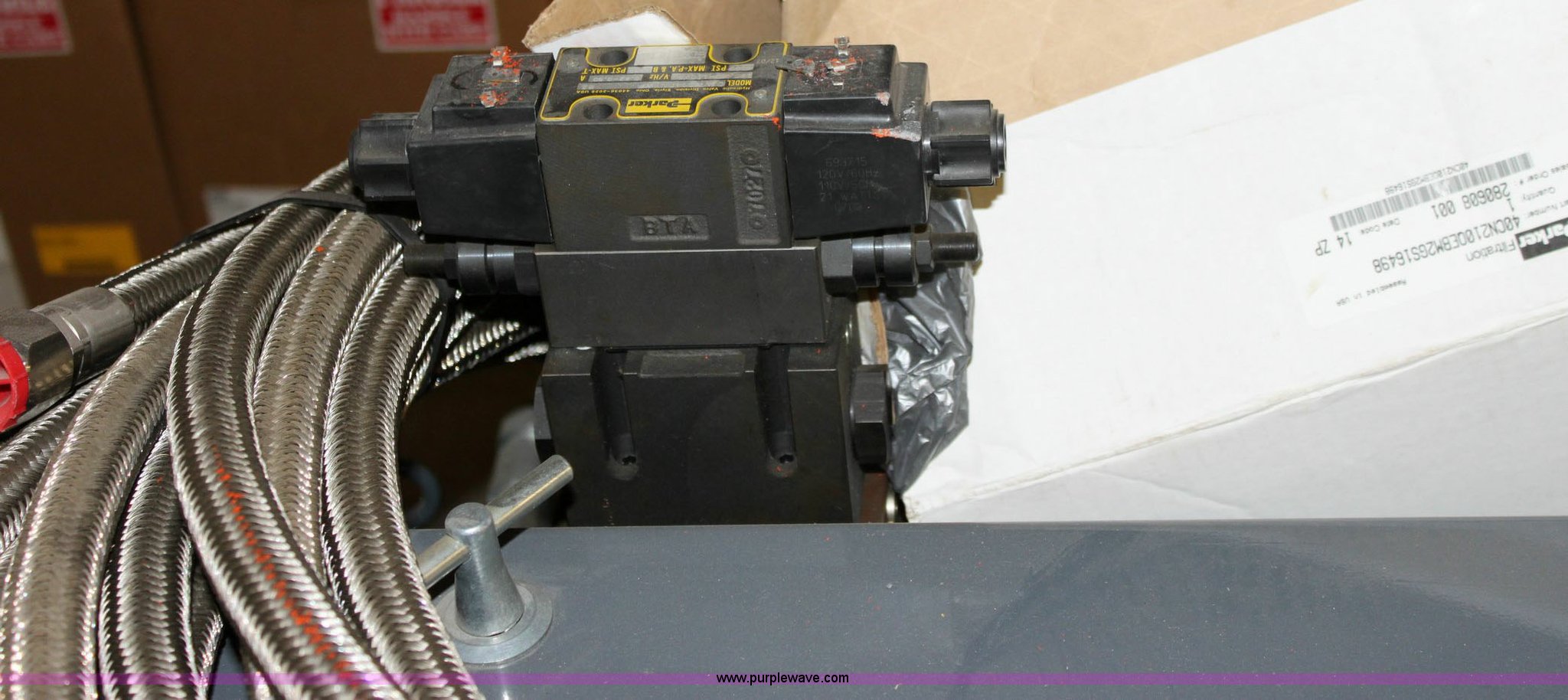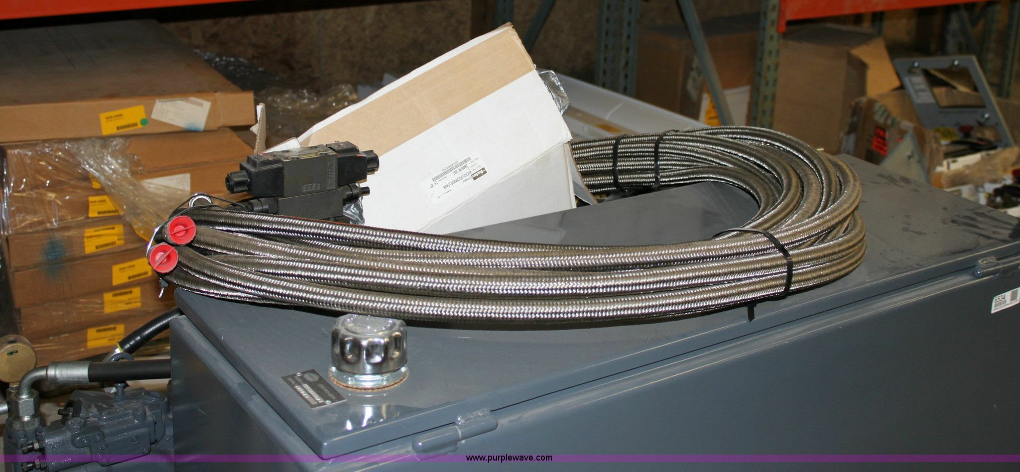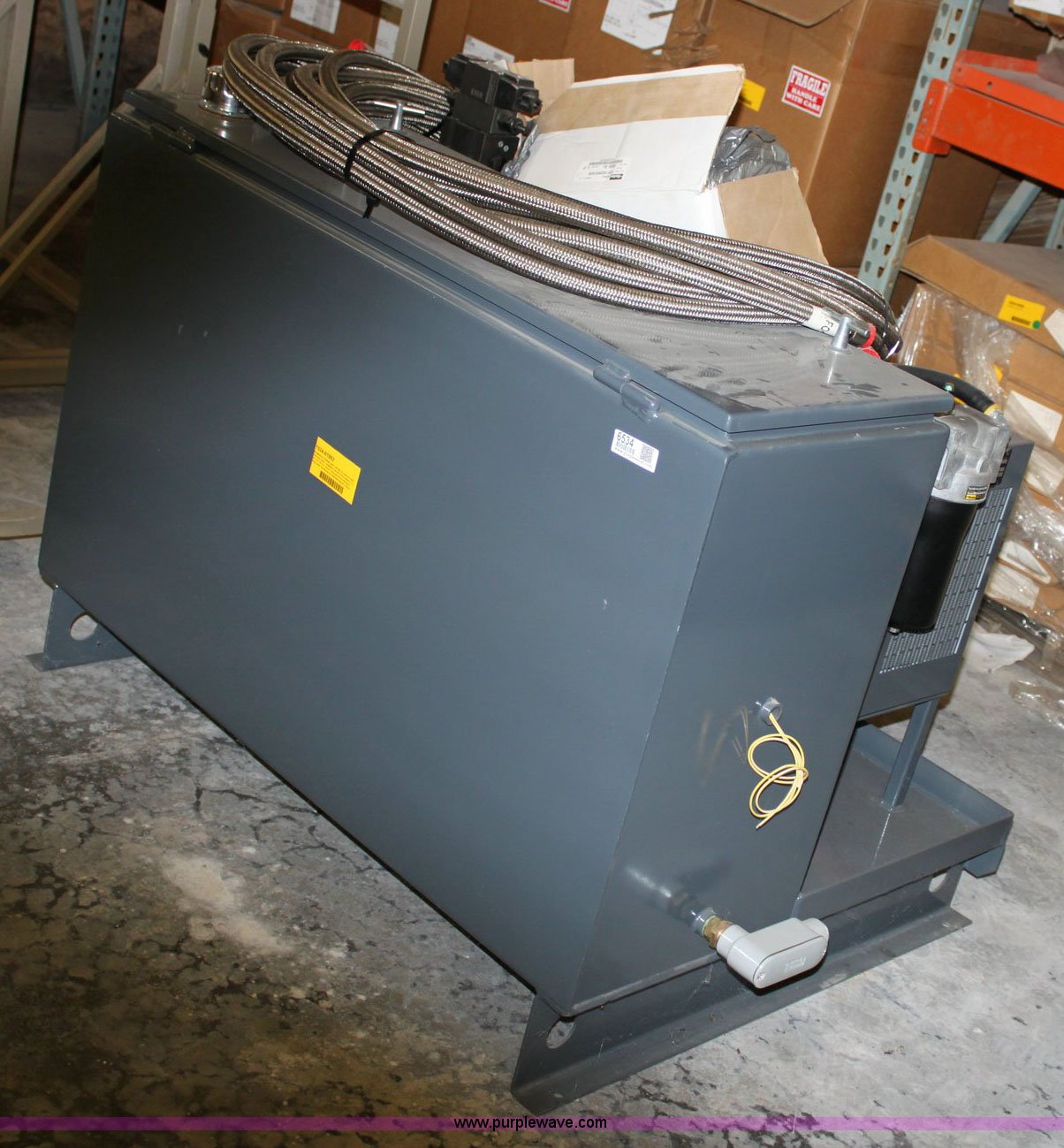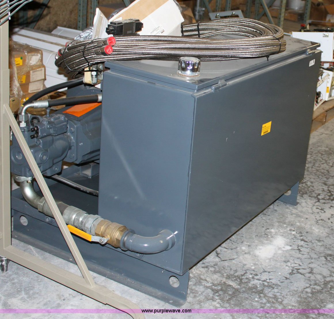 Purple Wave is selling a used Tools in Kansas. This item is a Hydraulic power unit with the following: 60 gallon reservoir with kill switch, 3/4" x 20' stainless steel hoses, 40hp C-face motor