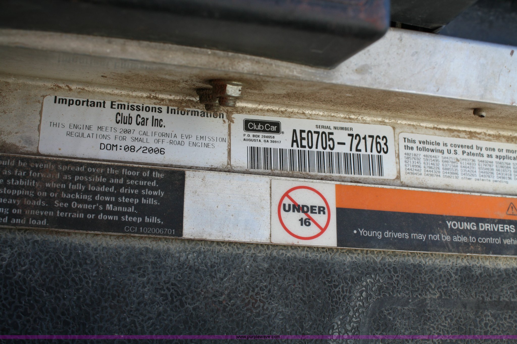 Purple Wave is selling a used Utility Vehicle in Kansas. This item is a 2006 Ingersoll Rand XRT-900 club car with the following: 1526 hours on meter, Kawasaki 11.5 HP engine, One forward and one reverse gear, 48"W x 46"L dump bed, Aluminum floor, Headlights, Canopy, 22x11.00-11 tires, 500 lbs bed capacity, 900 lbs total capacity, Serial AE0705721763, EIN: 655615