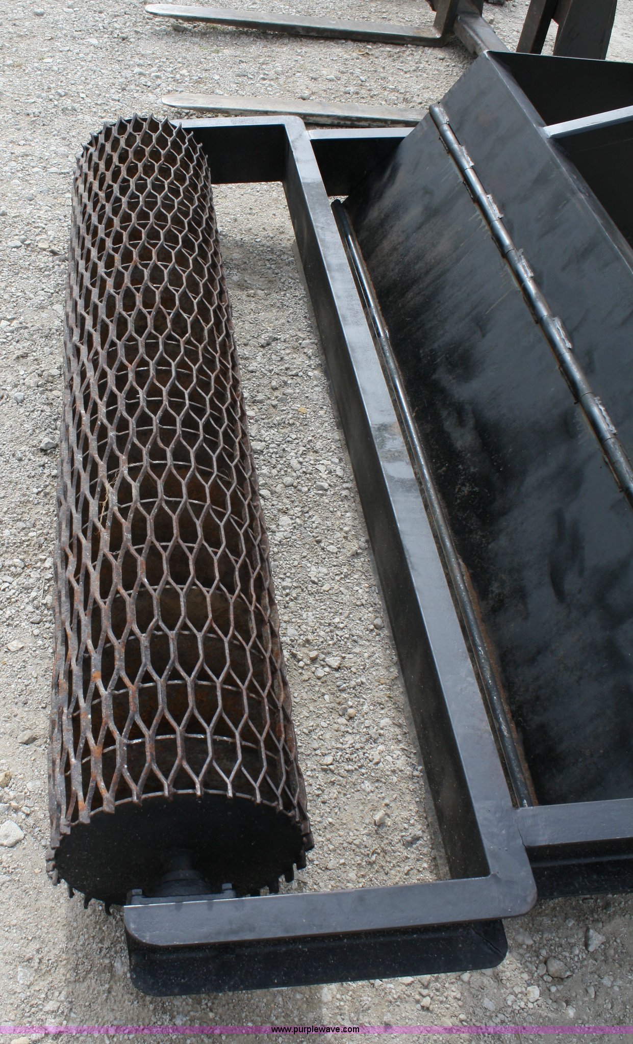 Purple Wave is selling a used Other Attach. or Equip. in Kansas. This item is a Skid steer box blade with roller with the following: 66" width