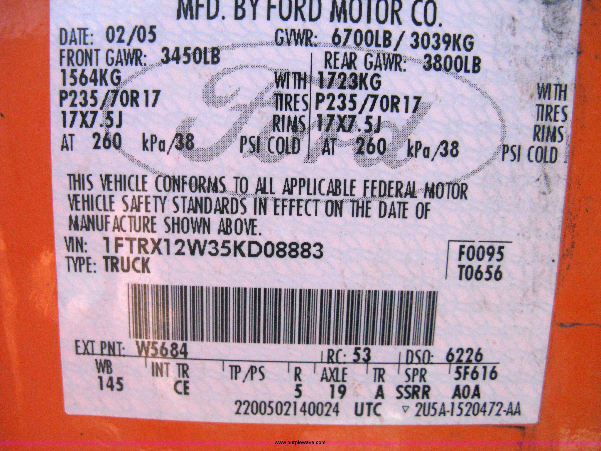 Take a look at this used 2005 Ford F150 XL extended cab pickup truck being sold on November 18th, 2010 in the SOLD! November 18 Construction Equipment Internet Auction made by Ford. Take a look at all of the item information below or take a look at similar auctions for Passenger Vehicles.