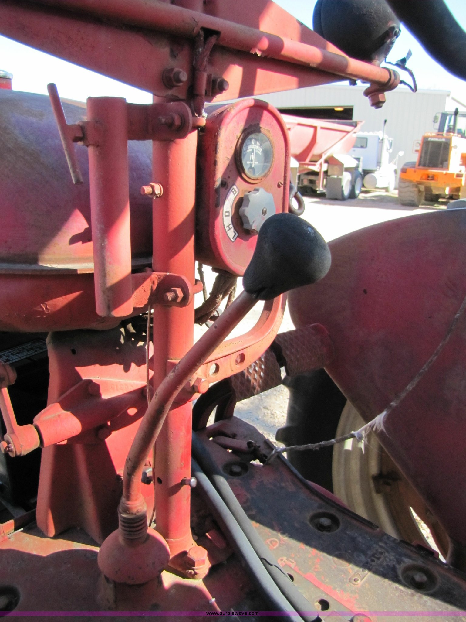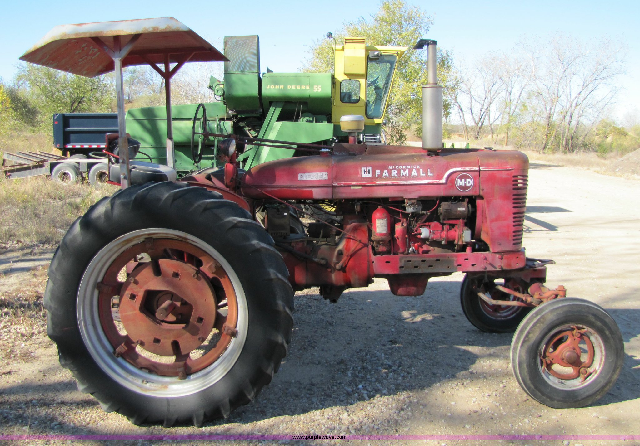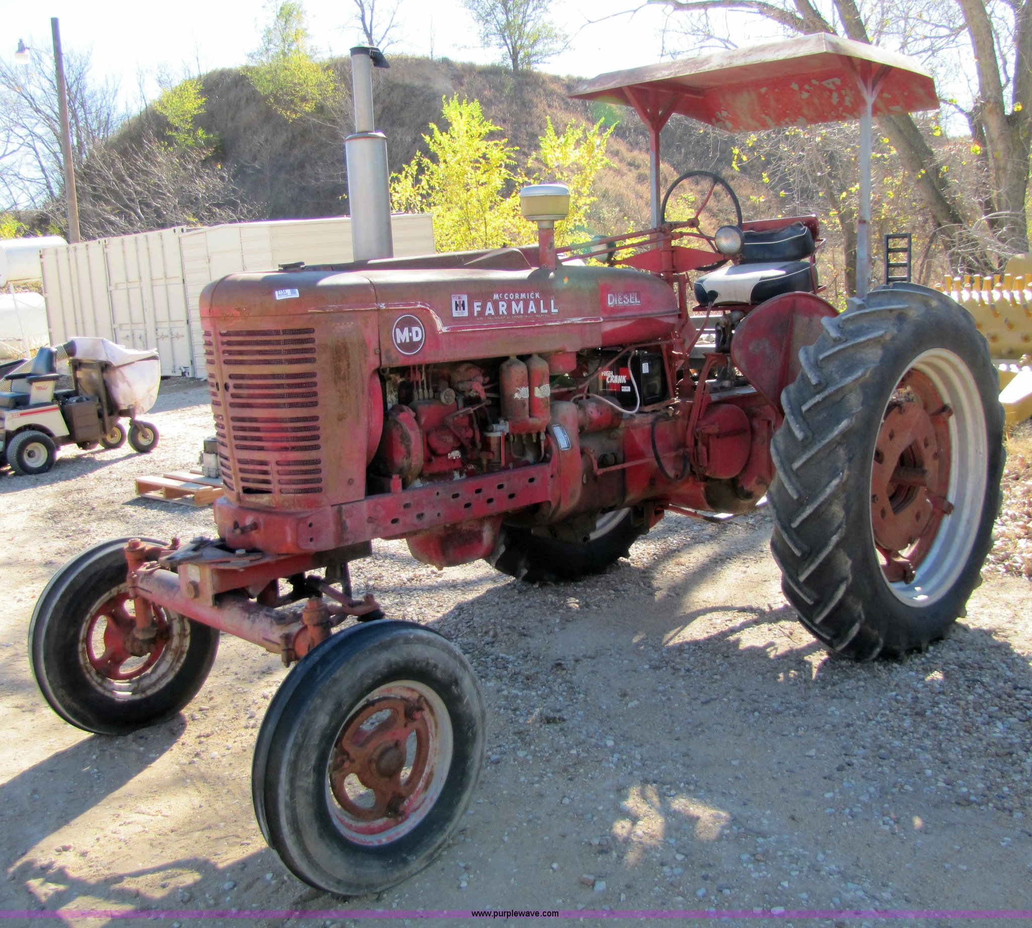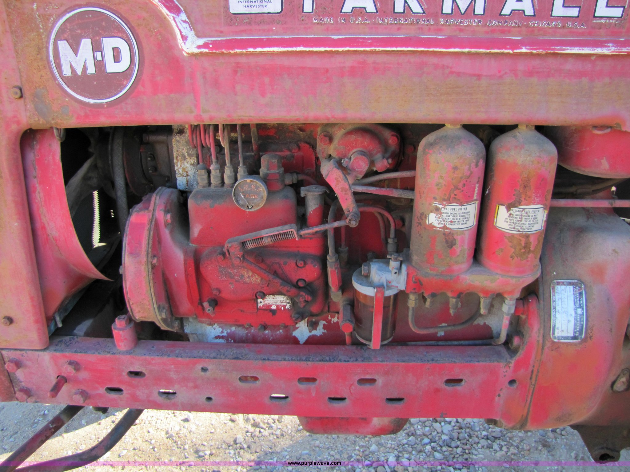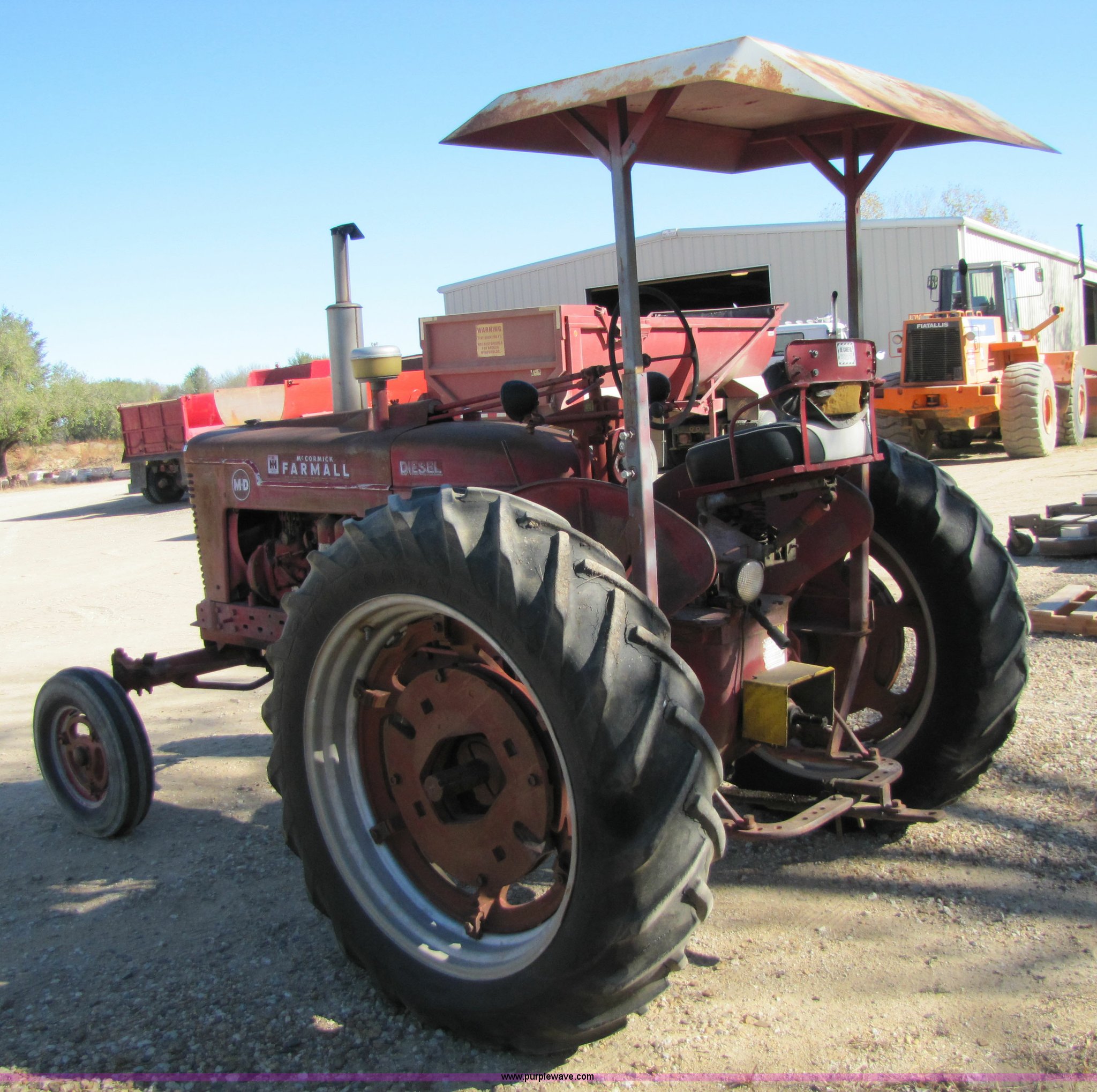 Purple Wave is selling a used Tractor in Kansas. This item is a International Farmall MD tractor with the following: Four cylinder dual fuel engine, Starts on gasoline and runs on diesel, Five forward and one reverse gears, 540 PTO, One hydraulic remote, Draw bar, Canopy, 12-38 rear tires, Serial FDBK240349
