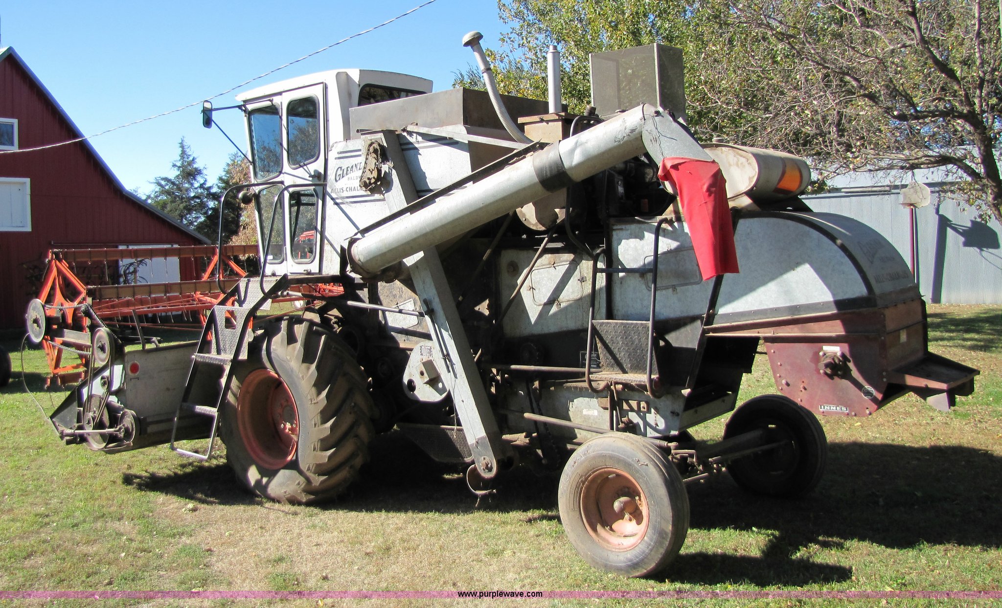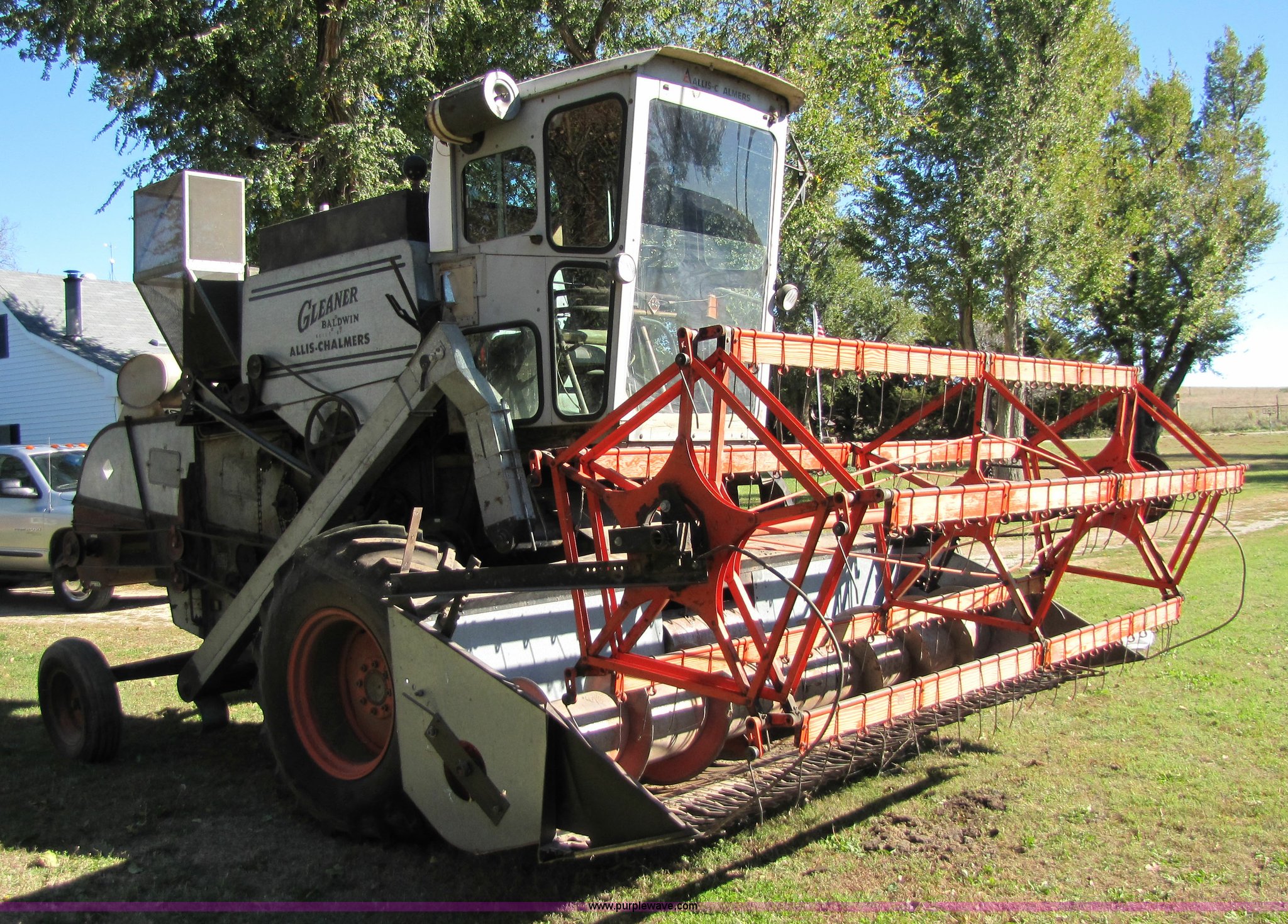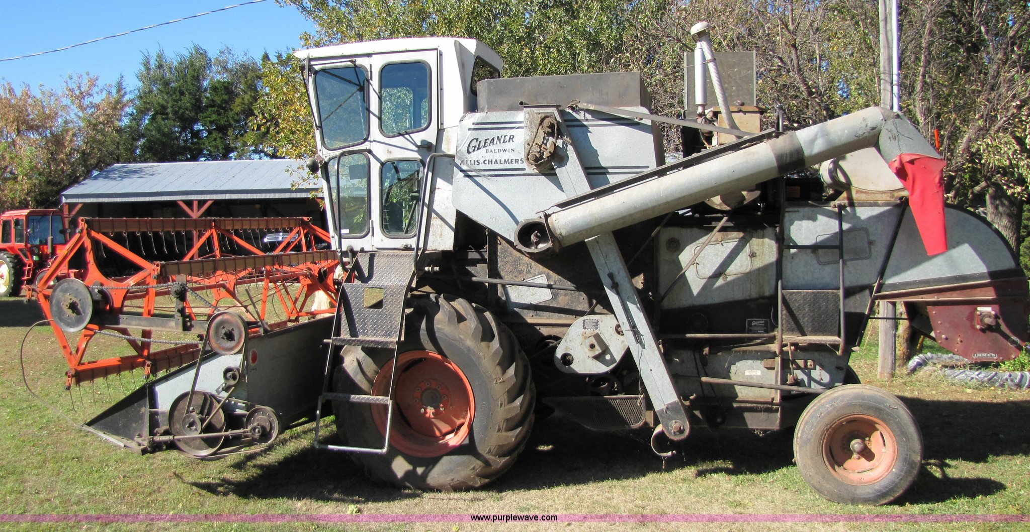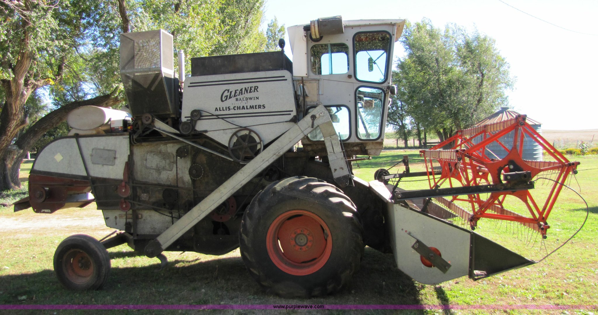 Purple Wave is selling a used Combine in Kansas. This item is a 1968 Gleaner E combine with the following: Four cylinder gas engine, Variable speed transmission, 18.5-26 flotation tires, Straw chopper and straw spreader, Cab with blower, Milo guards, 13' head, Pickup reel, Includes bat reel, No battery, Serial E-3473