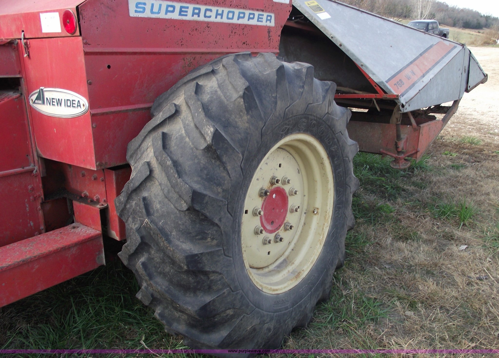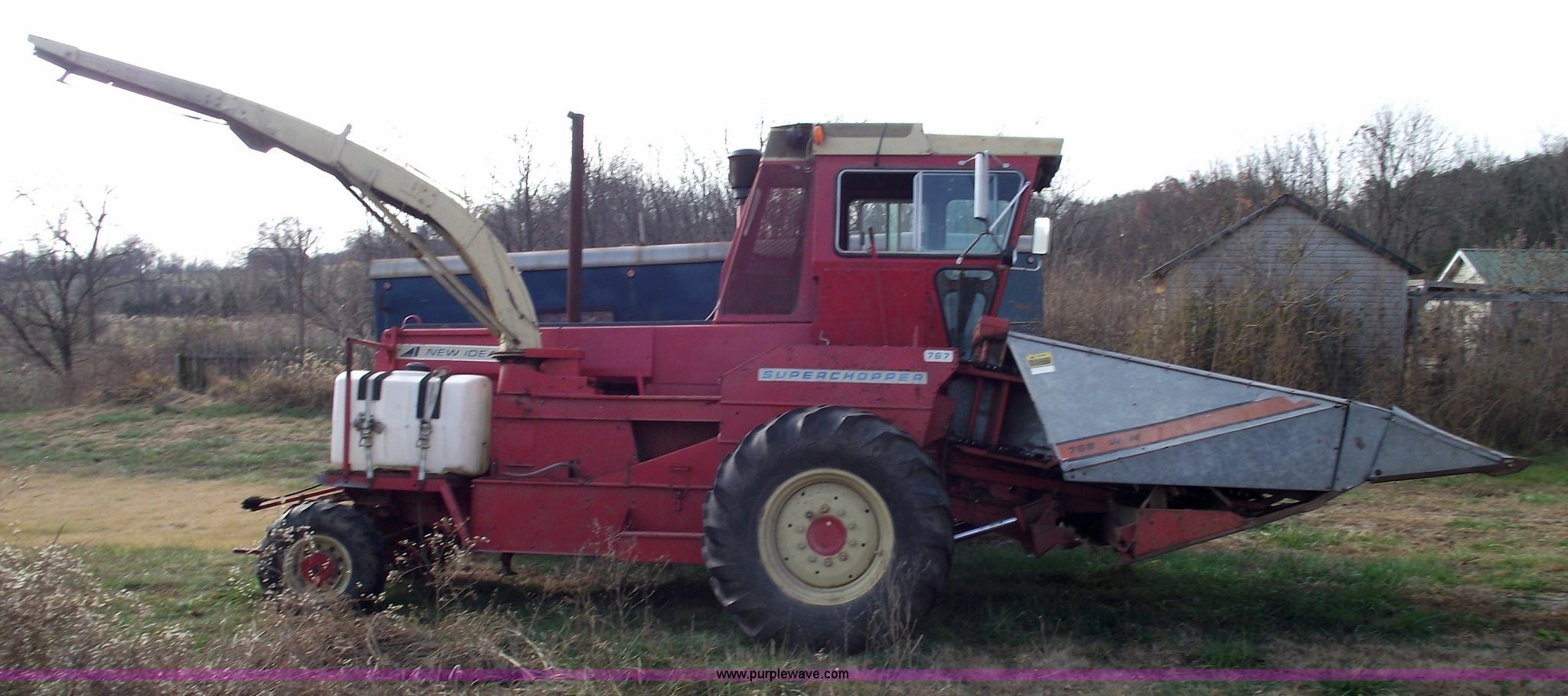 Purple Wave is selling a used Forage Harvester in Missouri. This item is a 1981 New Idea 767 Super Chopper Uni-chopper silage/forage chopper with the following: 2276 hours on meter, Cummins six cylinder diesel engine, Hydrostatic transmission, Four wheel drive, Enclosed cab with heat and AC, Spring seat, 768 WN three row narrow head, 18.4-26 front tires, 12.5-15 rear tires, 100 gallon inoculant tank, Manuals, In running condition, Serial 88700