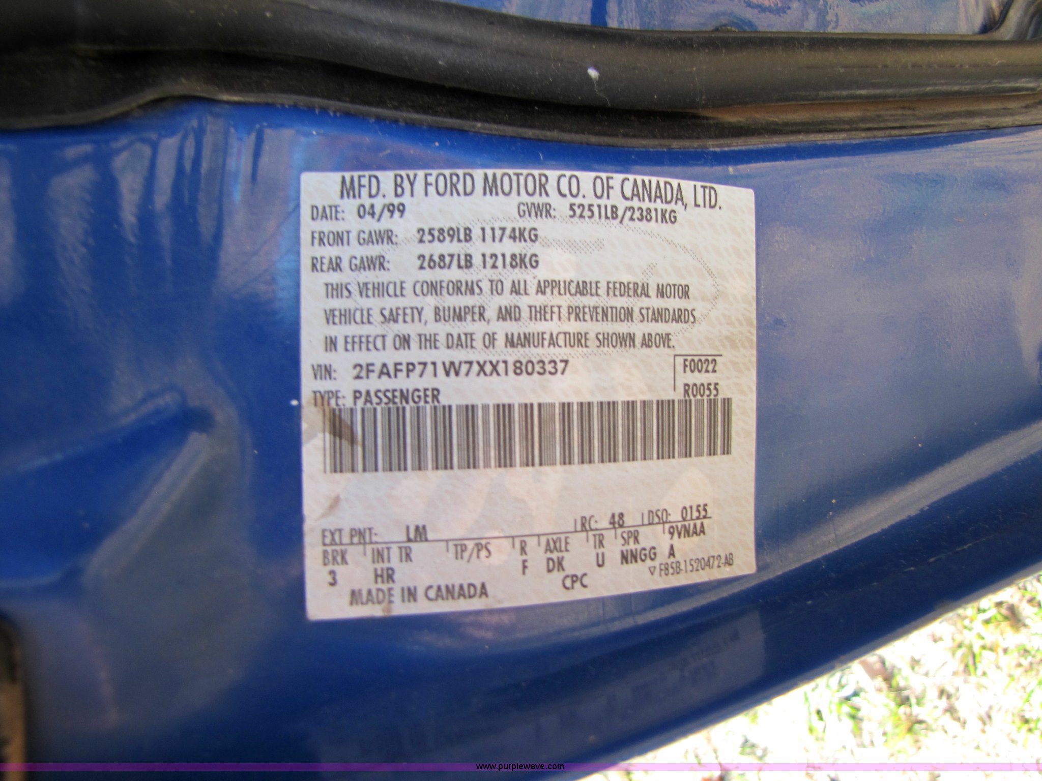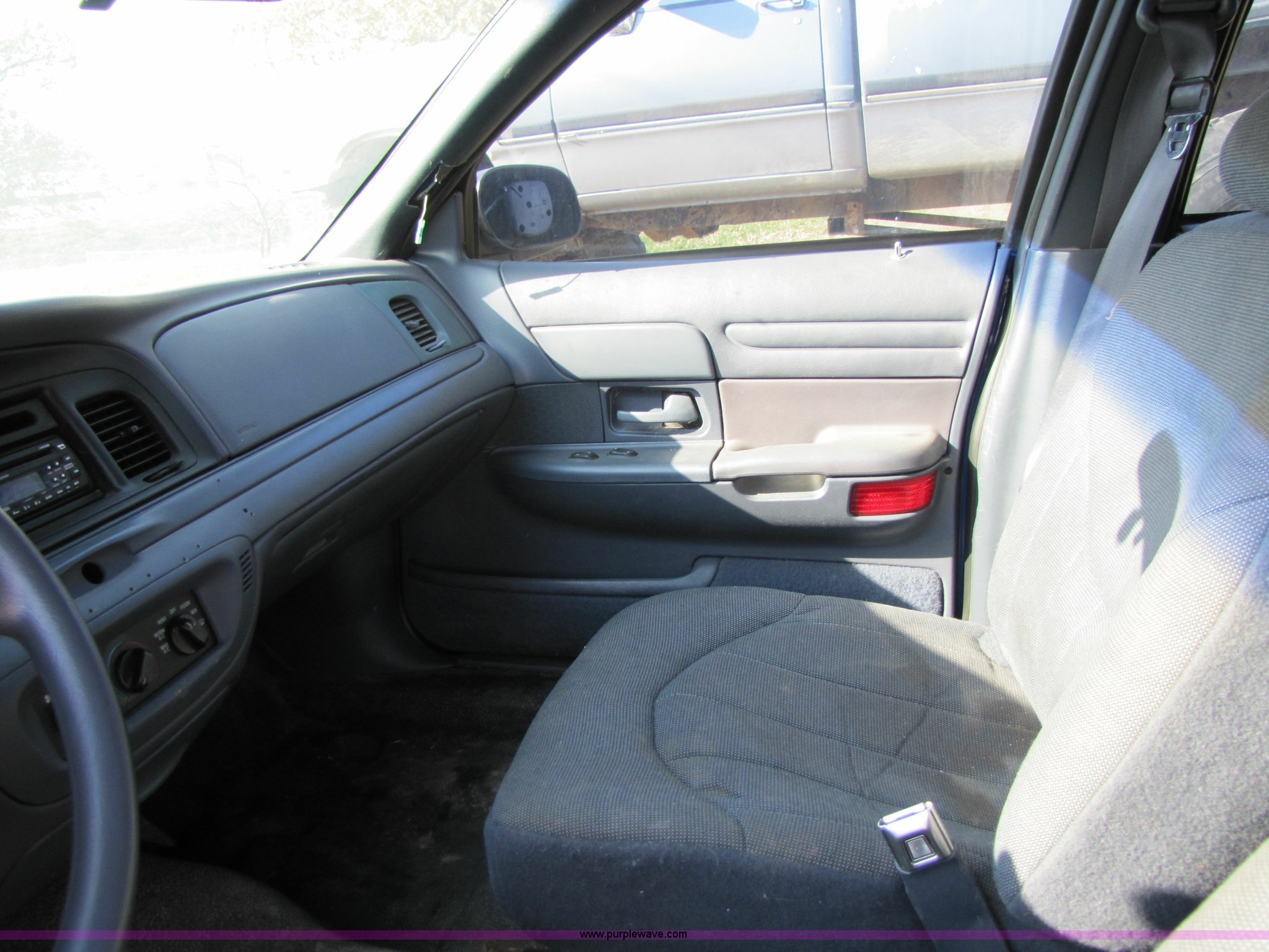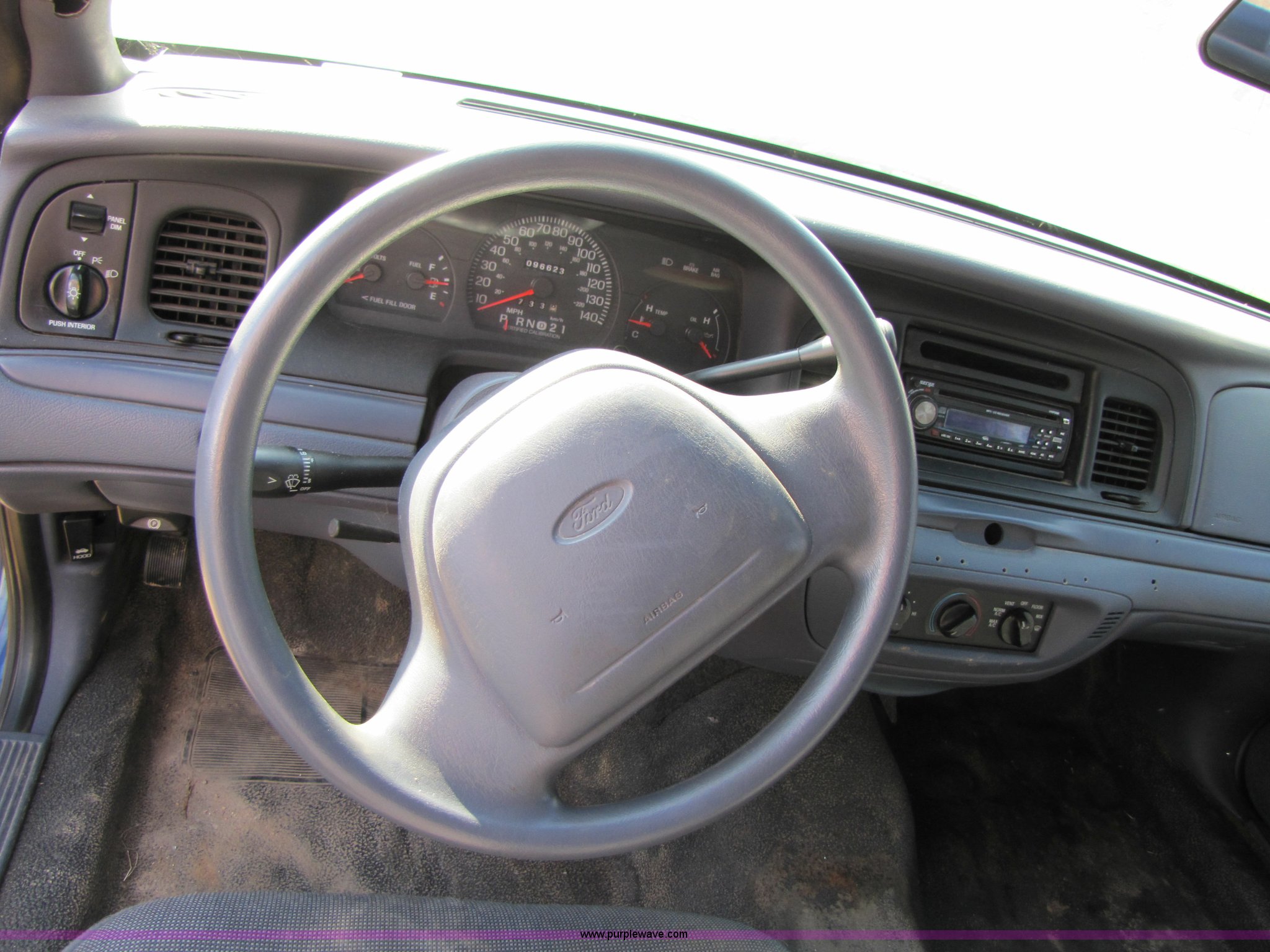 Purple Wave is selling a used Passenger Vehicle in Missouri. This item is a 1999 Ford Crown Victoria Police Interceptor with the following: 96,623 miles on odometer, 4.6L V8 EFI, Automatic transmission, AC and heat, Tilt steering wheel, AM/FM/CD player, Power windows, locks, and mirrors, P226/60R16 tires