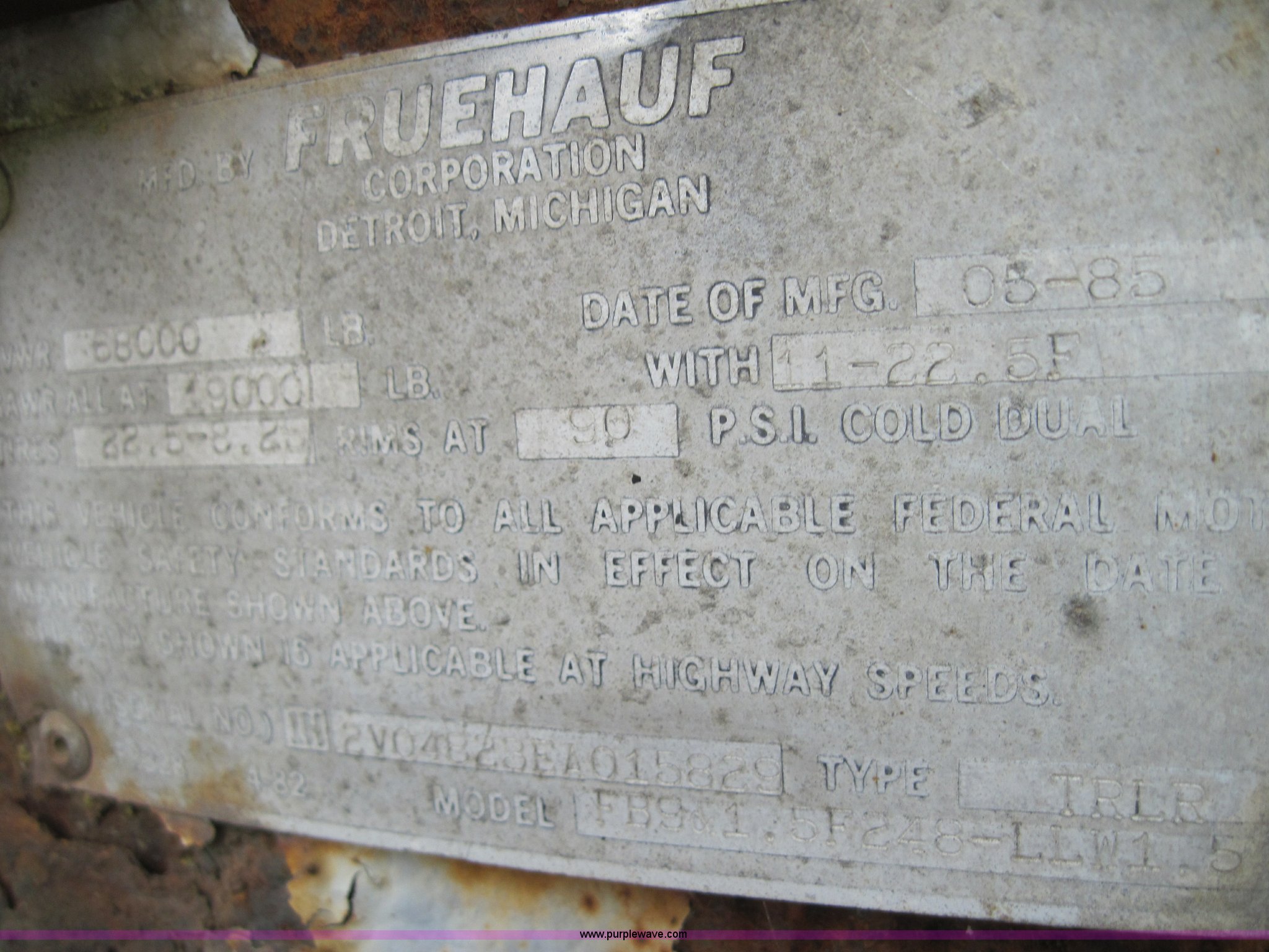 1985 Fruehauf 48' trailer. GVWR 68,000 lbs, Air brakes, Wood floor, 275/809R24.5 tires. 1H2V04823EA015829. Shipping quotes available. HMS Enterprises. 207 N Weichert. Girard, KS 66743