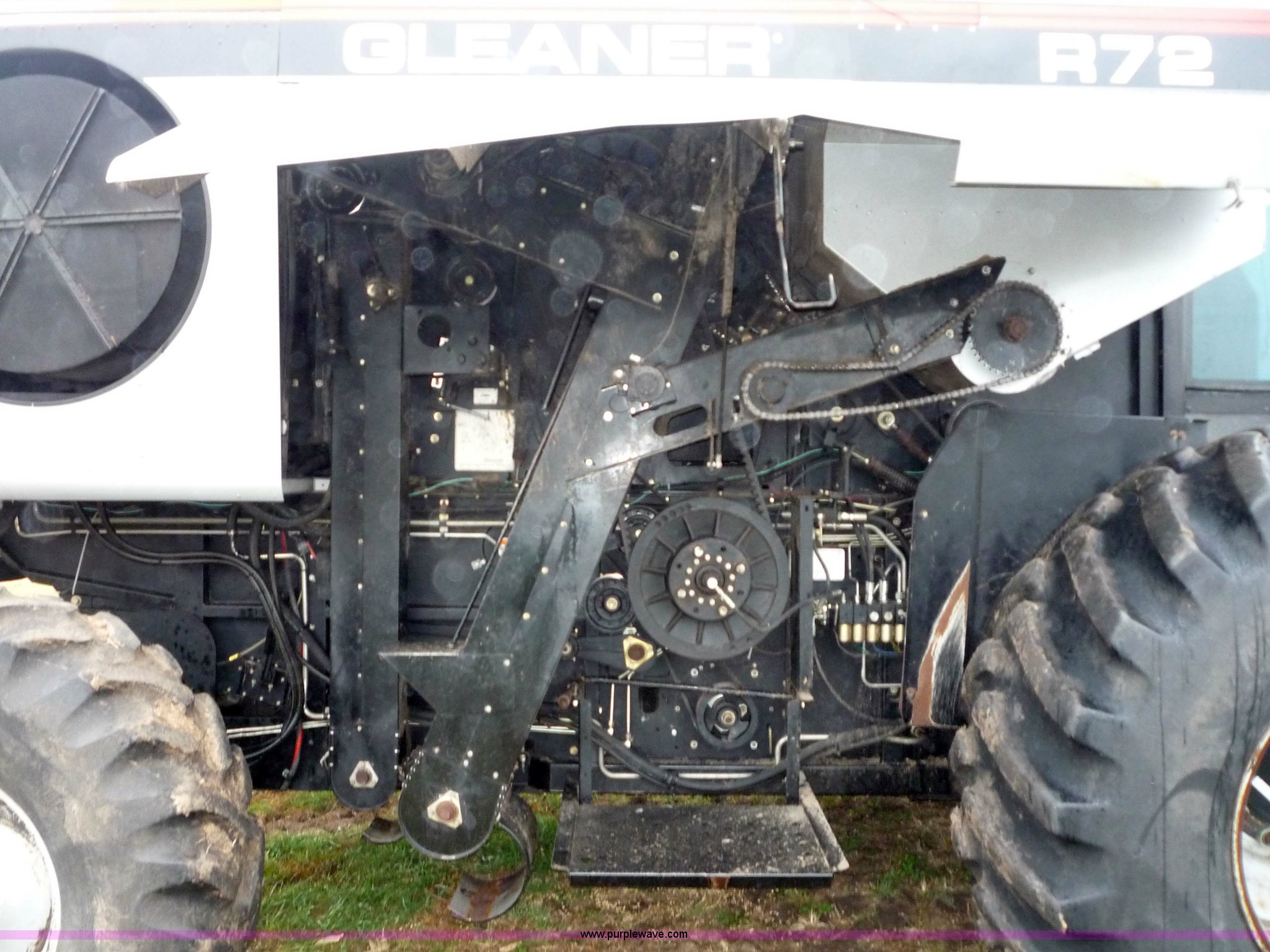 Purple Wave is selling a used Combine in Kansas. This item is a 2001 Gleaner R72 RWA combine with the following: 2573 engine hours on meter, 1853 separator hours on meter, Six cylinder 660cid 300hp turbocharged diesel engine, Rear wheel assist, 330 bushel grain tank capacity, Field Star monitor, Header control system, Tailings monitor, Acre estimator, AC and heat, AM/.FM radio, 30.5-32 drive tires, 18.4-26 steering tires, Serial HK72208