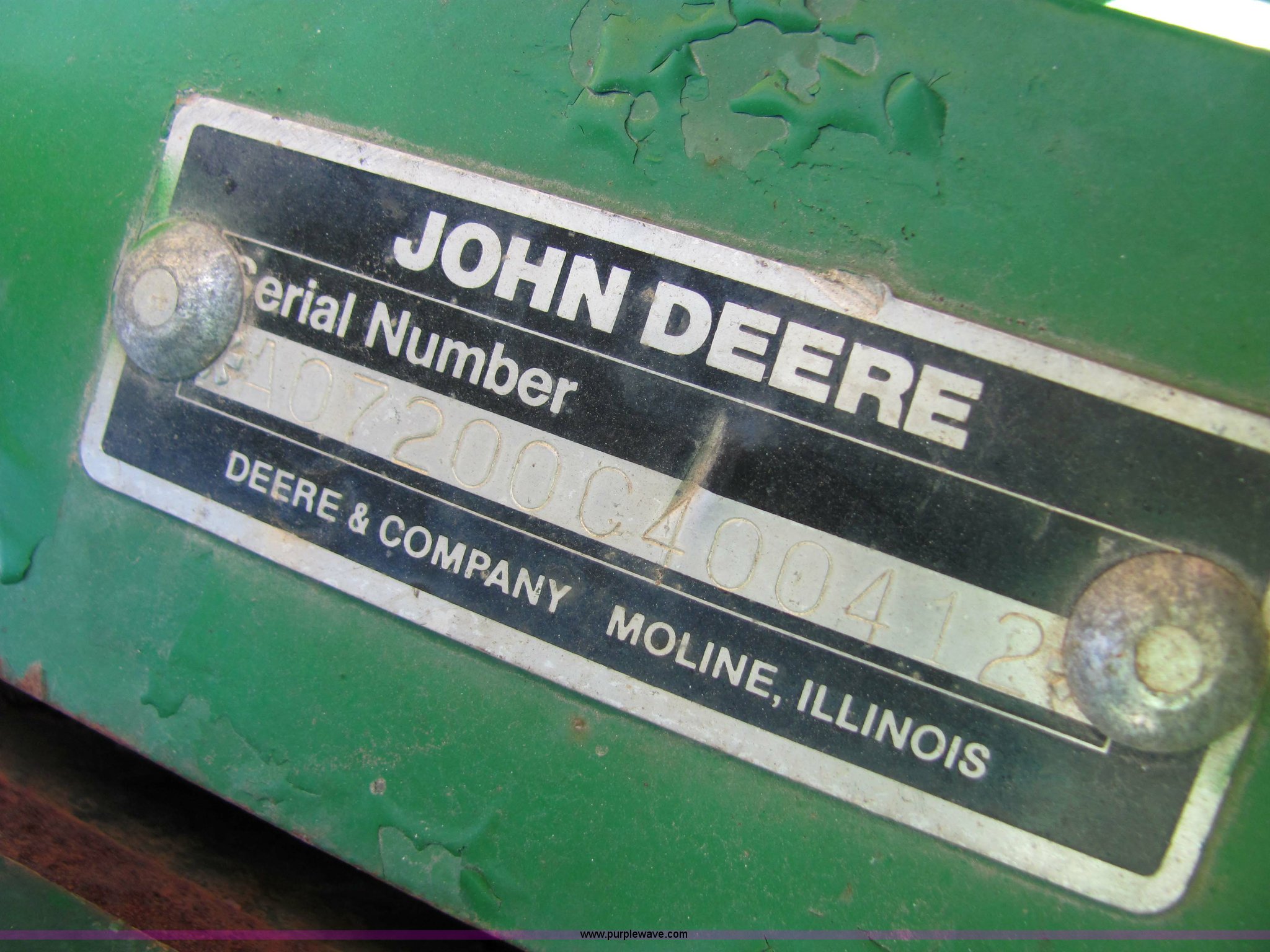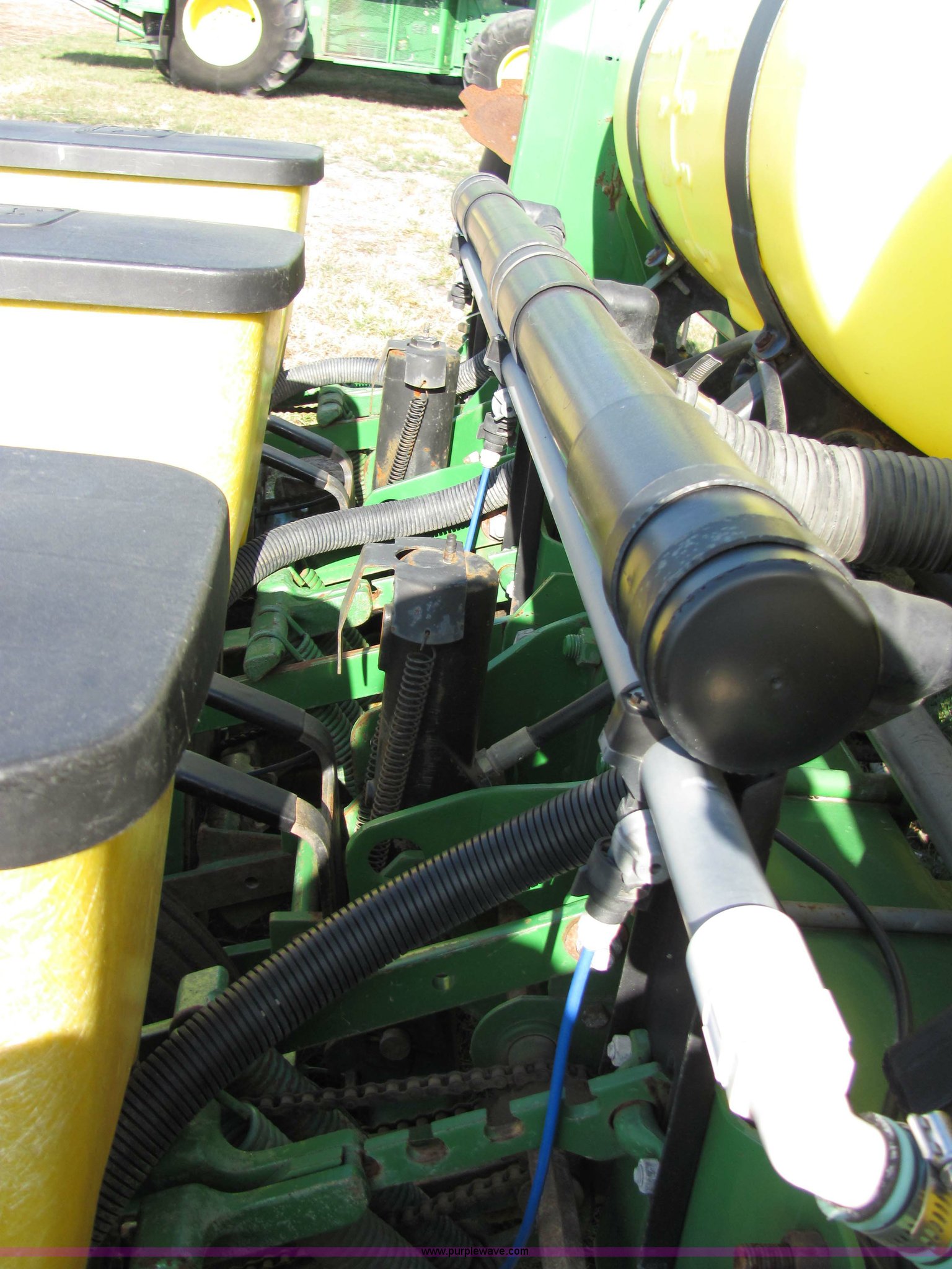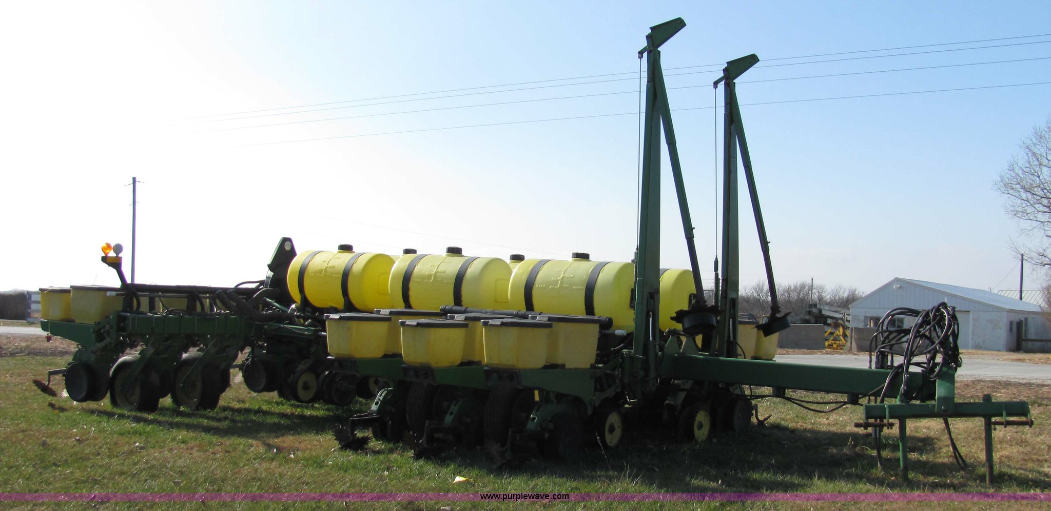 Purple Wave is selling a used Planter in Kansas. This item is a 1988 John Deere 7200 planter with the following: 12 row, 30" till spacing, (6) 70 gallon liquid fertilizer tanks, (24) 1.6 bushel seed boxes, Seed tube guards, True-Vee planting unit, 2,000 acre capability, Three point, Adjustable down pressure, Vacuum system, Chain driven to boxes, No-till fertilizer openers, Exapta rear closing wheels, Front fold, flexes in middle, Ron units replaced in 2004, 200 monitor control console, Serial A07200C400412, Stock# 61003