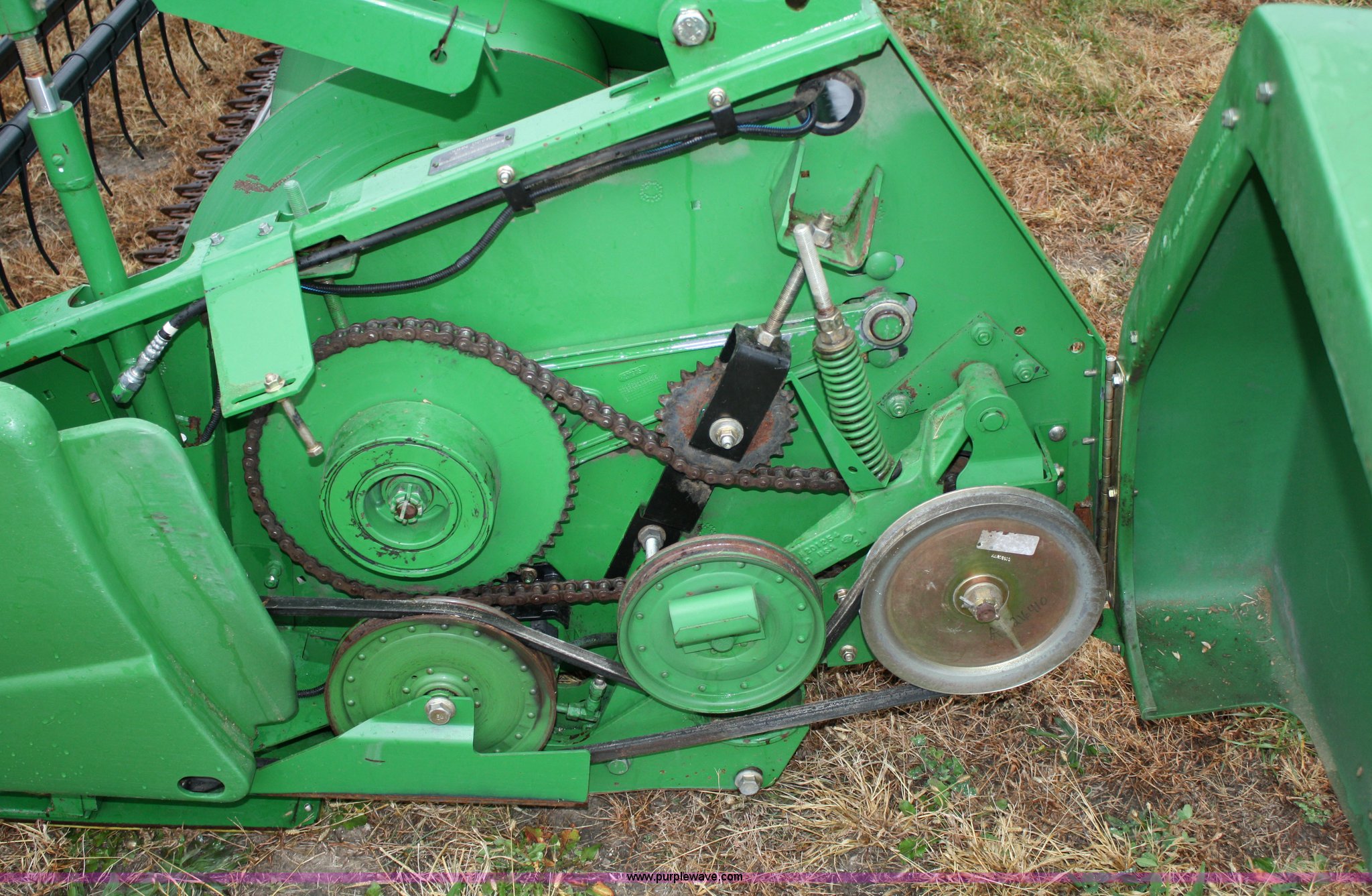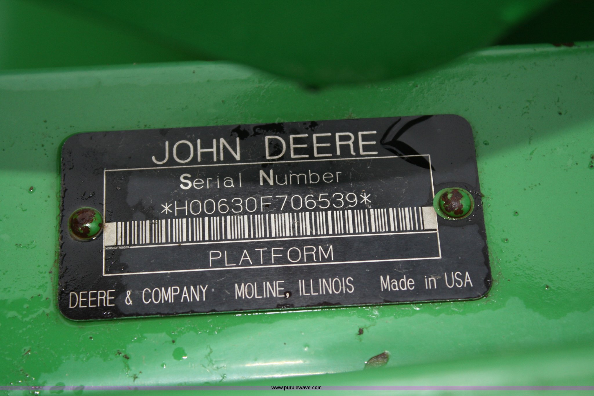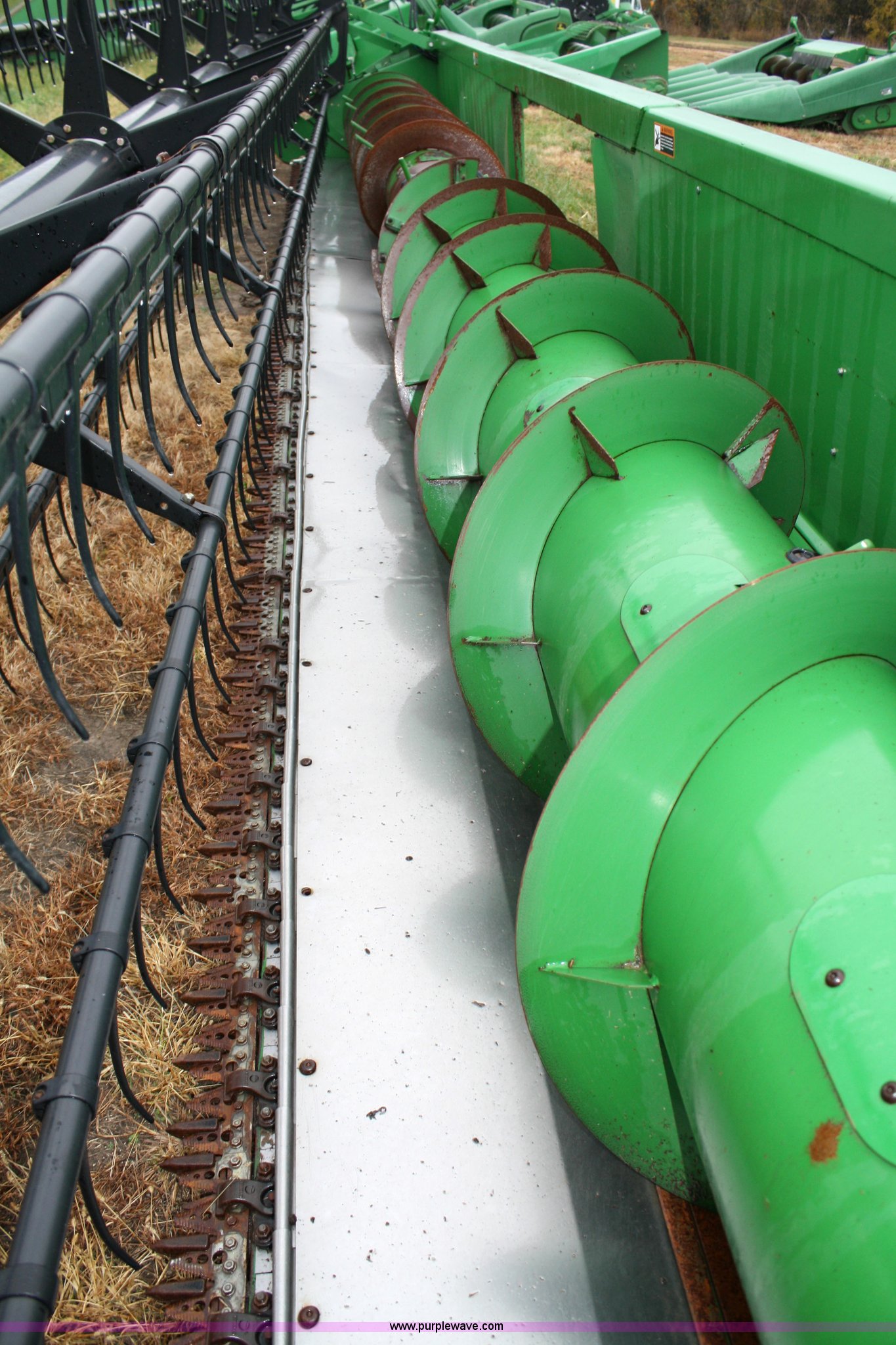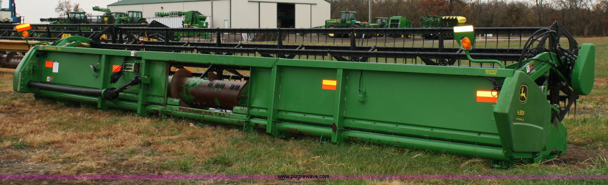 Purple Wave is selling a used Platform or Stripper Head in Kansas. This item is a John Deere 630F flex platform with the following: 30' width, Full finger auger, Pickup reel, Poly skid plates
