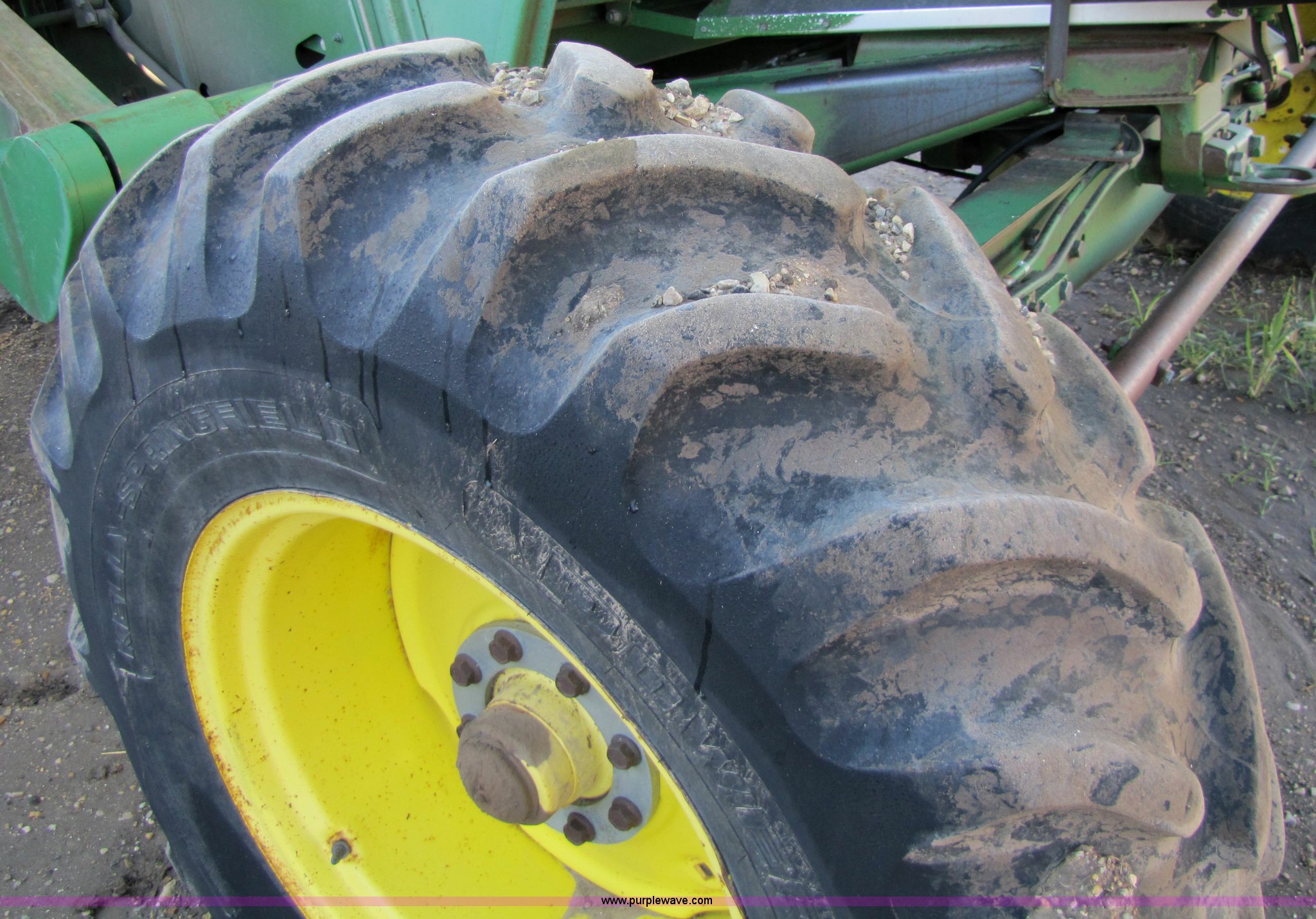Purple Wave is selling a used Combine in Kansas. This item is a 1982 John Deere 8820 combine with the following: 1801 hours on meter, John Deere 466 six cylinder diesel engine, Serial 6466AH-02211410R6, Hydrostatic transmission, Single cylinder drive, Variable speed feeder house, 30.5-32 front tires, 14.9-24 rear tires, Straw chopper, 17' unloading auger, Cab with AC and heat, AM/FM/cassette player, Grain loss monitor, Serial 514911, ID# U05359