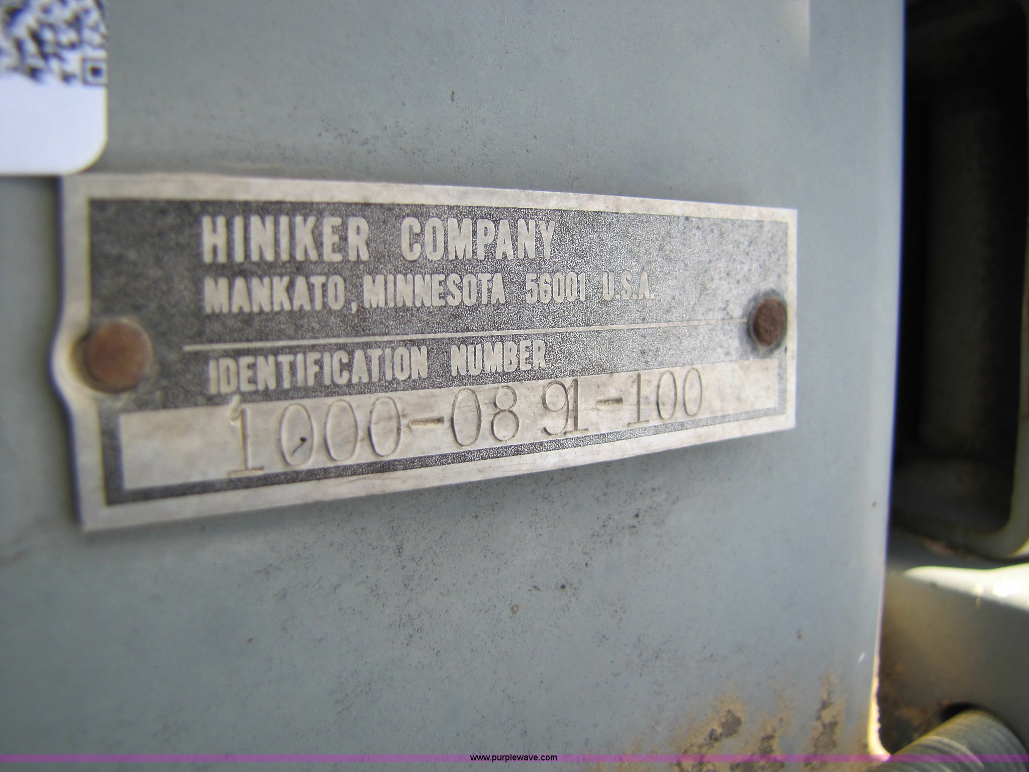 Purple Wave is selling a used Row Crop Cultivator in Kansas. This item is a Hiniker 1000 row crop cultivator with the following: 16 row, 30" spacings, Hydraulic fold, Gauge wheels, Stabilizers, Serial 1000-089-100, ID# U05441