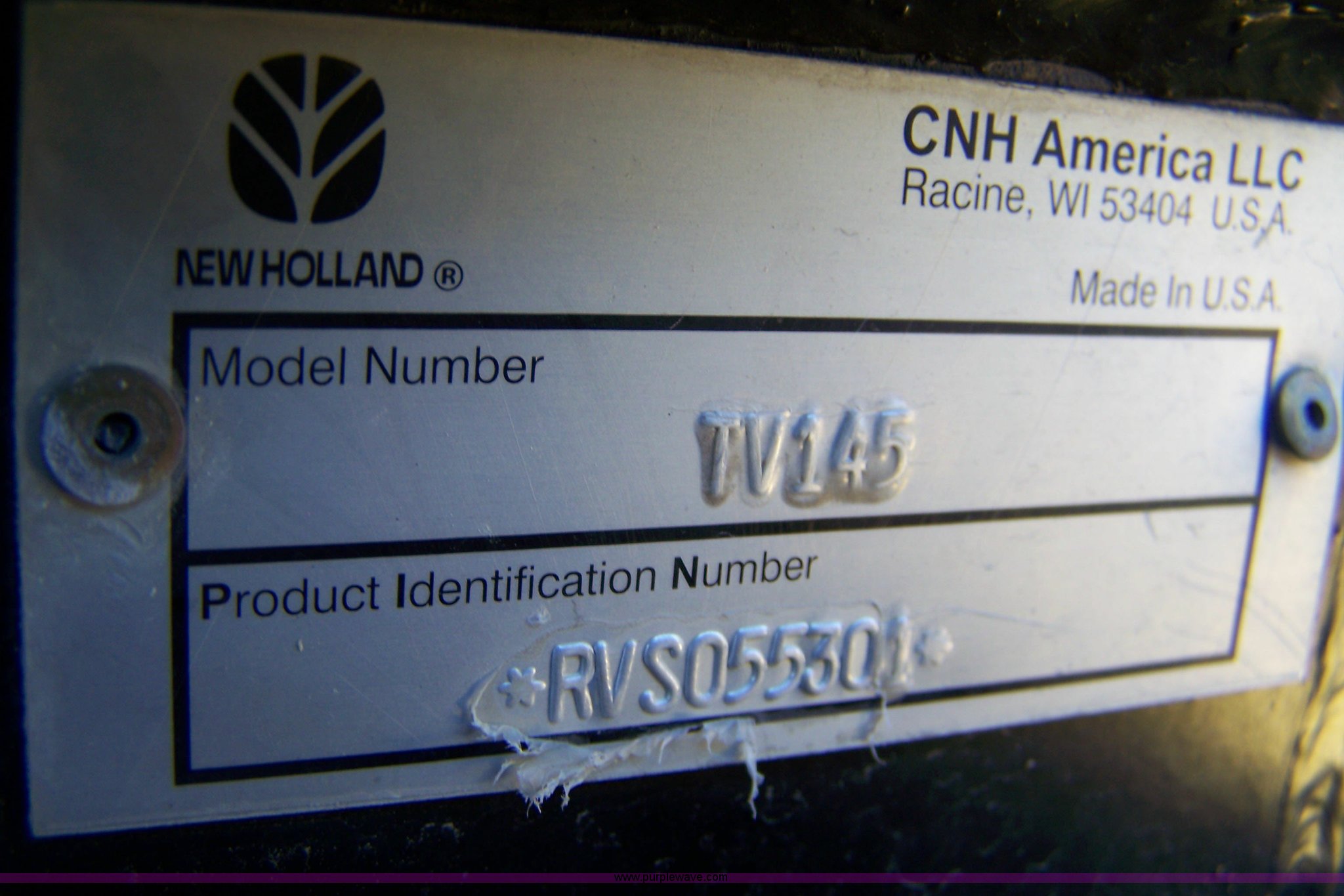 Purple Wave is selling a used Tractor in Kansas. This item is a 2007 New Holland TV145 4WD bi-directional tractor with loader with the following: 618 hours on meter, Six cylinder 7.5L 105hp engine, Hydrostatic transmission, Three forward and three reverse gears, AC and heat, AM/FM radio, Tilt steering wheel, Draw bar, 1000 PTO, New Holland 84LB loader with 8'4" bucket, Two lever control, (3) front hydraulic remotes, (2) rear hydraulic remotes, 400/85R34 front tires, 480/85R34 rear tires, Serial RVS055301