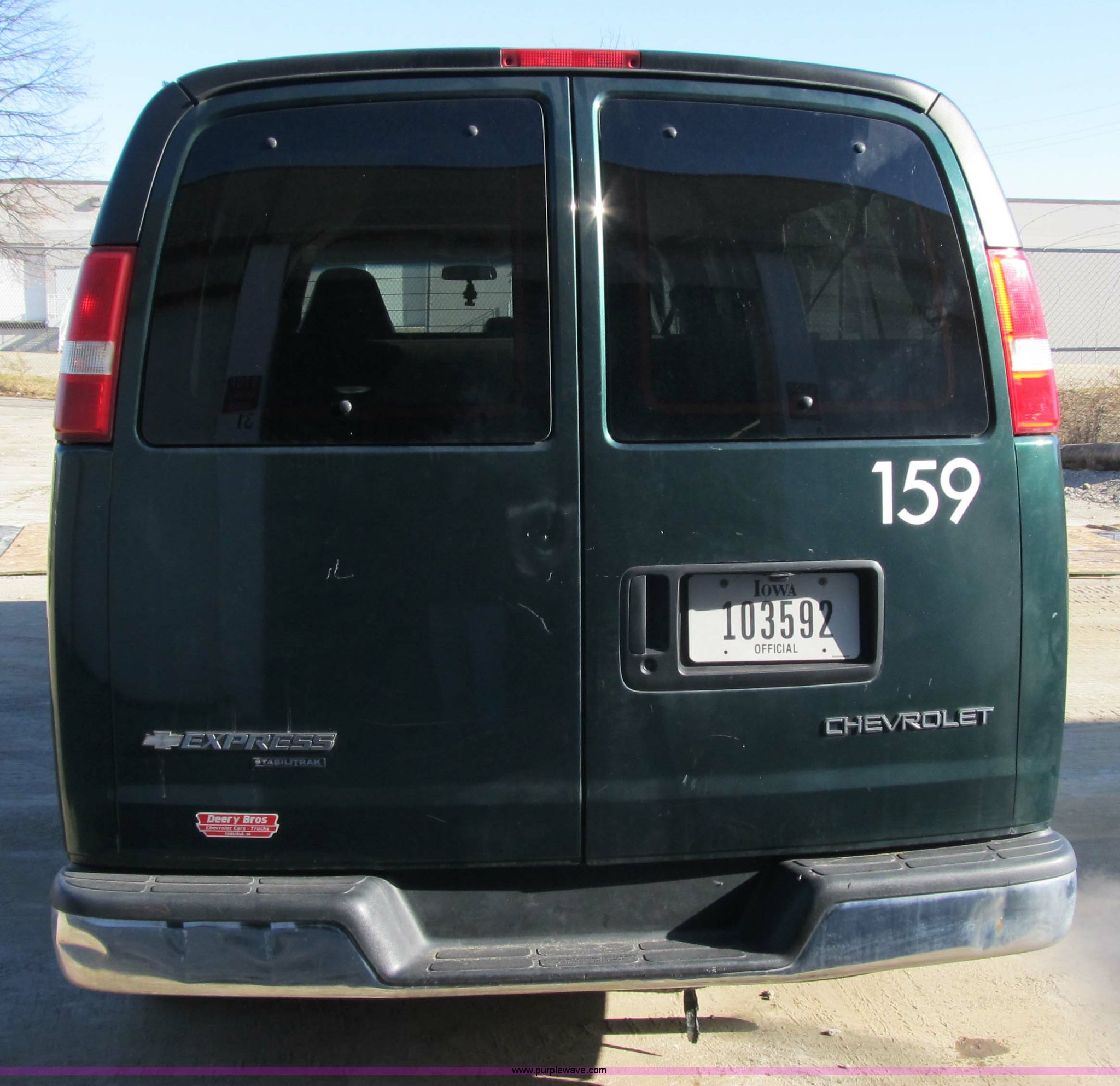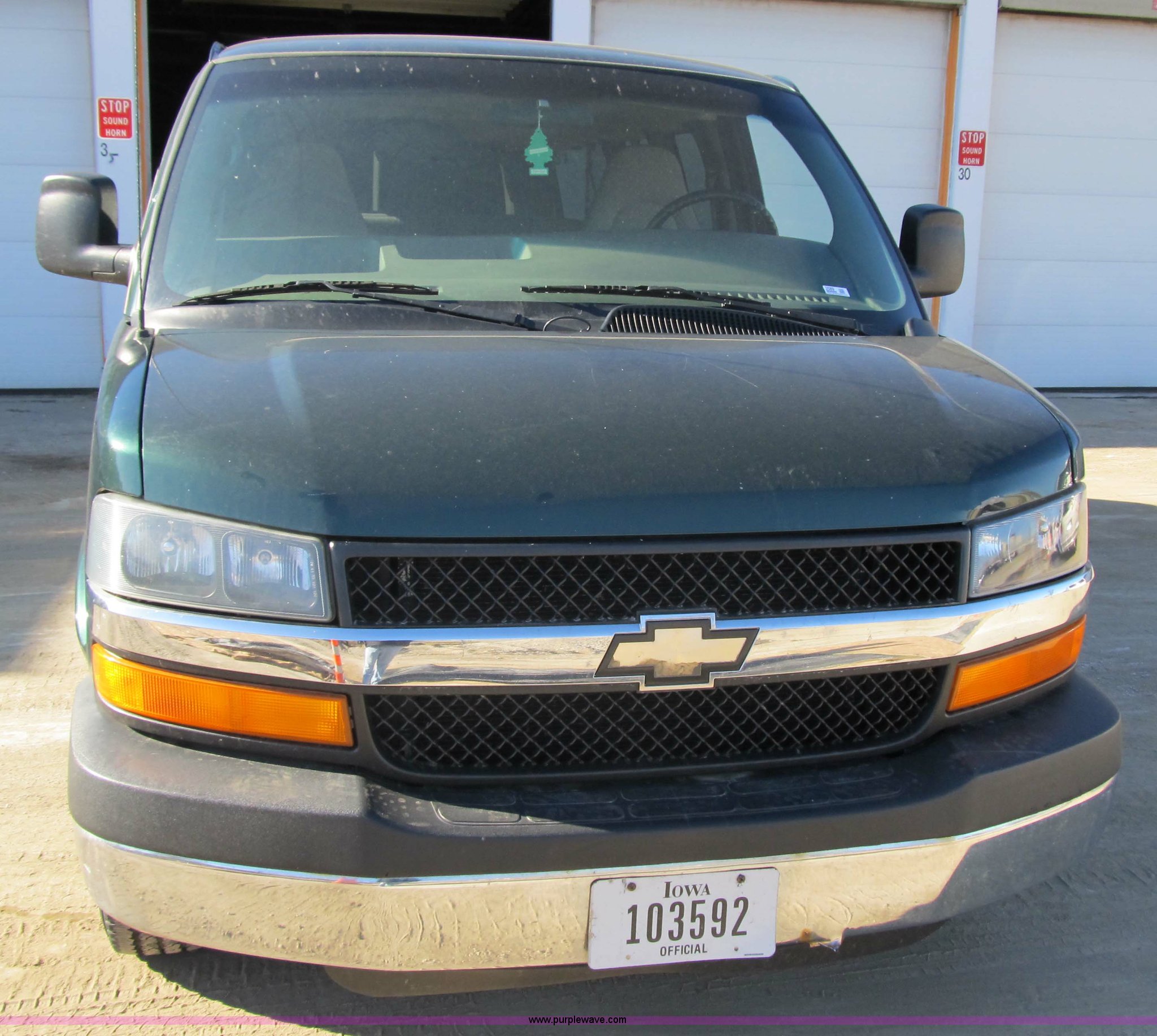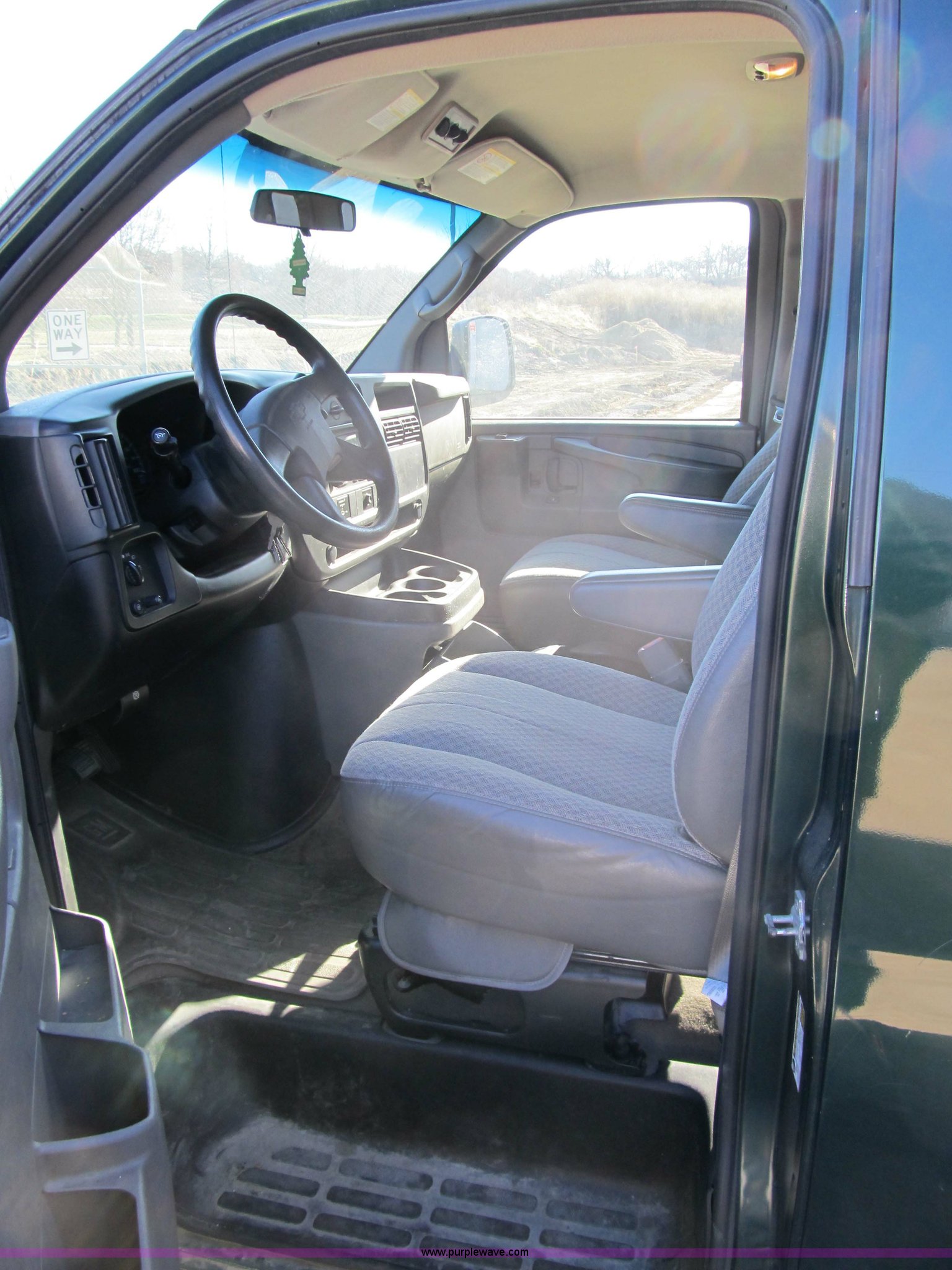 Purple Wave is selling a used 3/4 or 1 Ton Pickup or Van in Iowa. This item is a 2005 Chevrolet G3500 Express Stabiltrak van with the following: 164,109 miles on odometer, 6.0L V8 SFI, Automatic transmission, Heater and air conditioner, Tilt and cruise control, AM/FM radio, Power windows, locks and mirrors, Three-row seating, Dual side air bags, LT245/75R16, Door side seized, ID 159