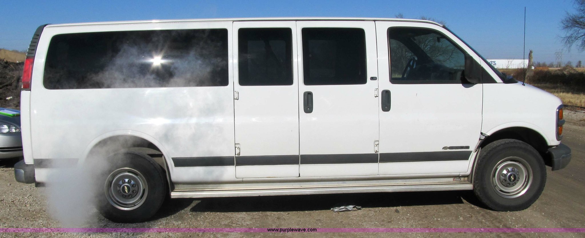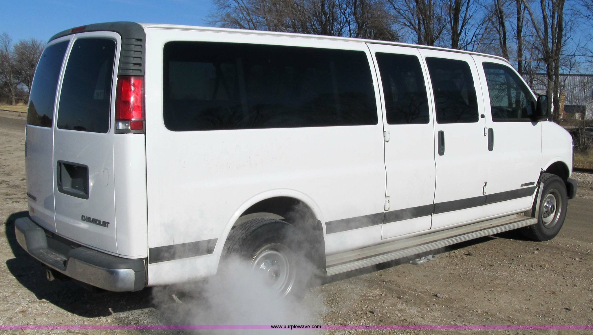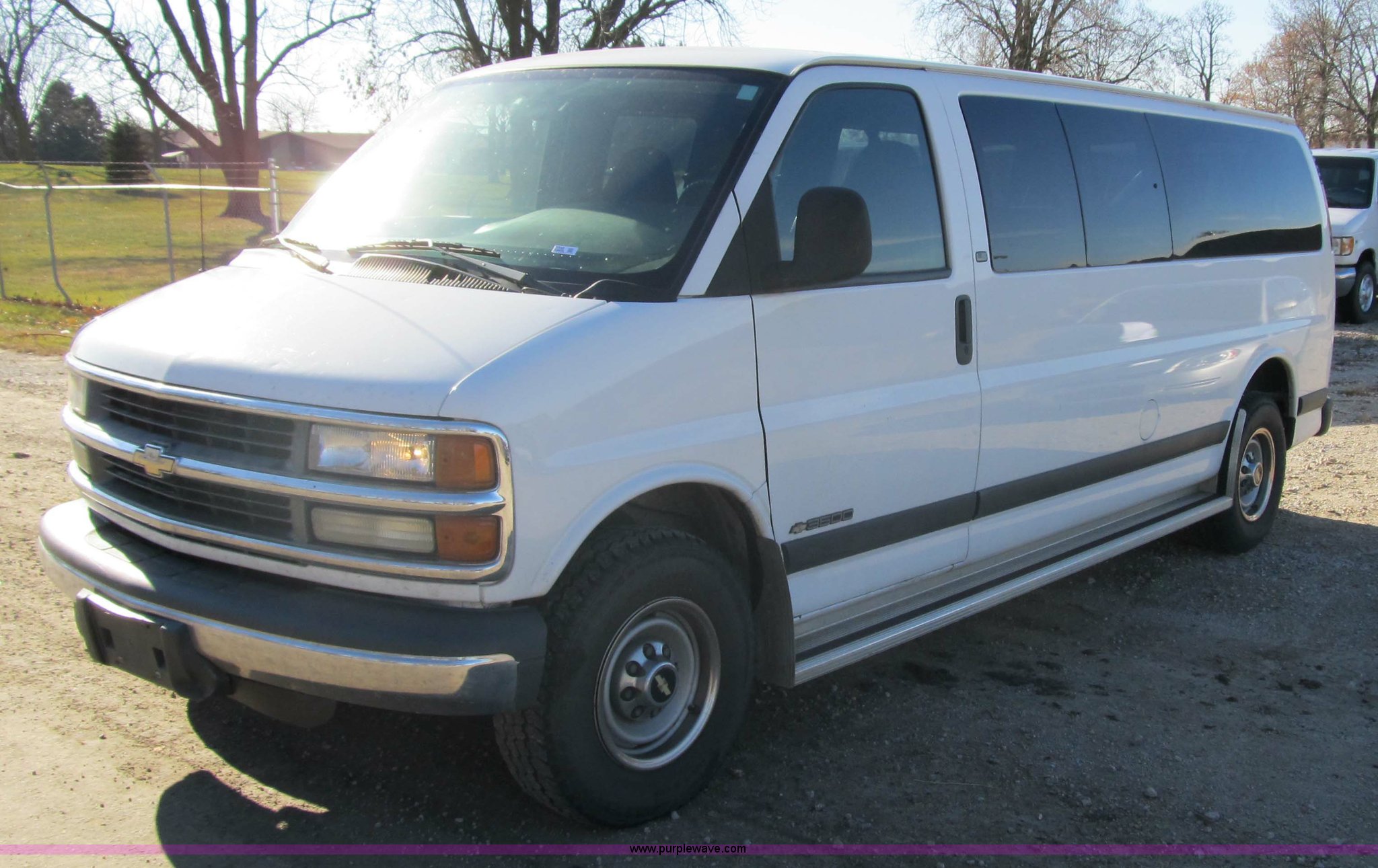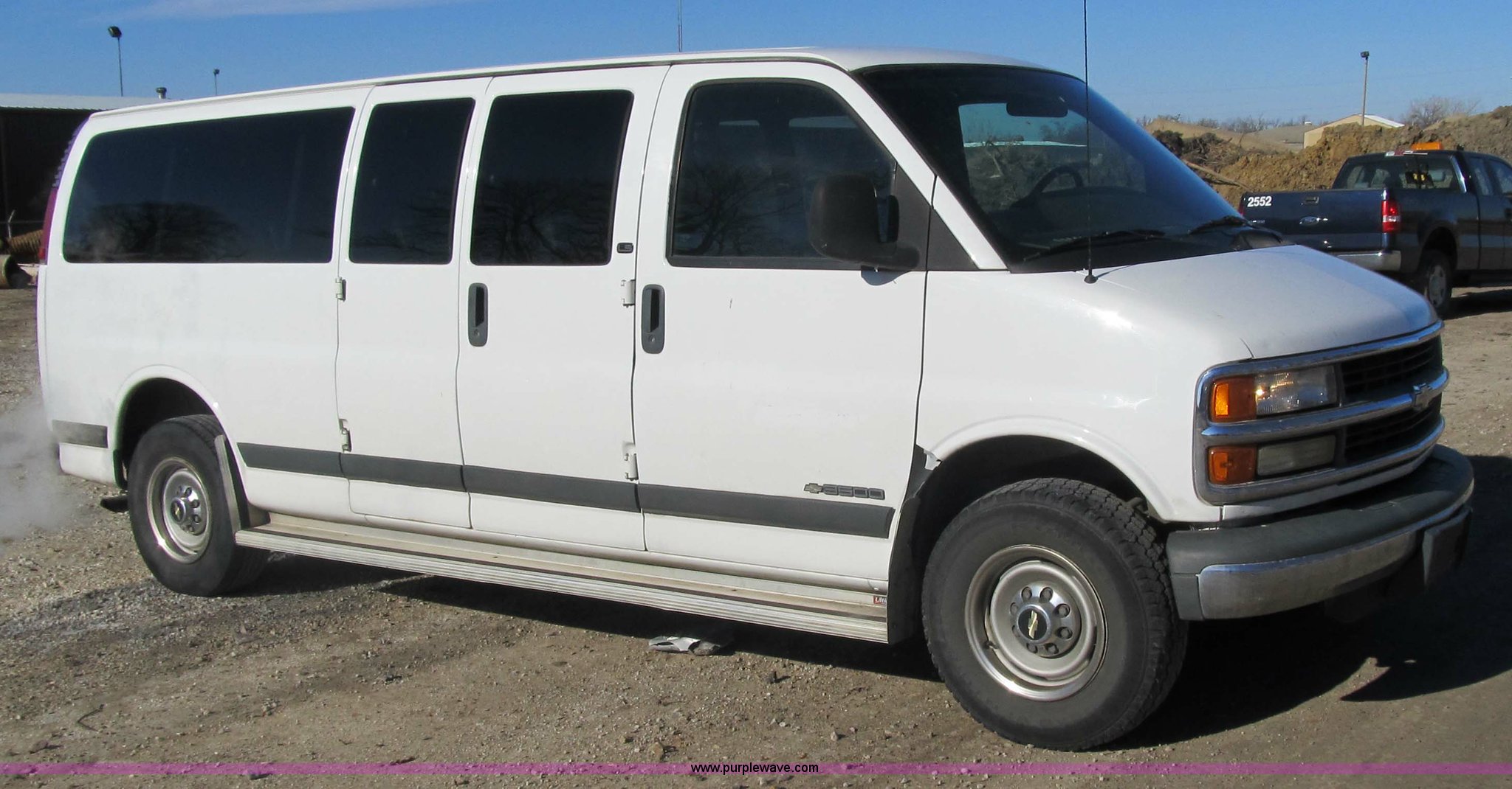 Purple Wave is selling a used Bus in Iowa. This item is a 2002 Chevrolet G3500 Express LS 12-passenger van with the following: 159,724 miles on odometer, 5.7L V8 SFI gas engine, Automatic transmission, Heater and air conditioner, Tilt and cruise control, Power windows, locks, mirrors and seats, Three-row seating, LT245/75R16 tires, View service records, ID 140