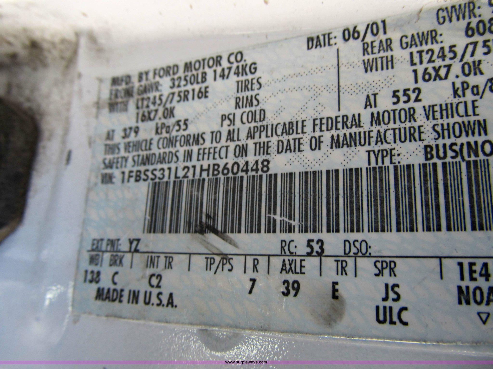 Purple Wave is selling a used 3/4 or 1 Ton Pickup or Van in Iowa. This item is a 2001 Ford E350 XL super duty van with the following: 87,561 miles on odometer, Triton 5.4L V8 EFI gas engine, Automatic transmission with over drive, Tilt and cruise control, AM/FM radio, LT245/75R16 tires, Minor cosmetic damage on driver's side, ID 103