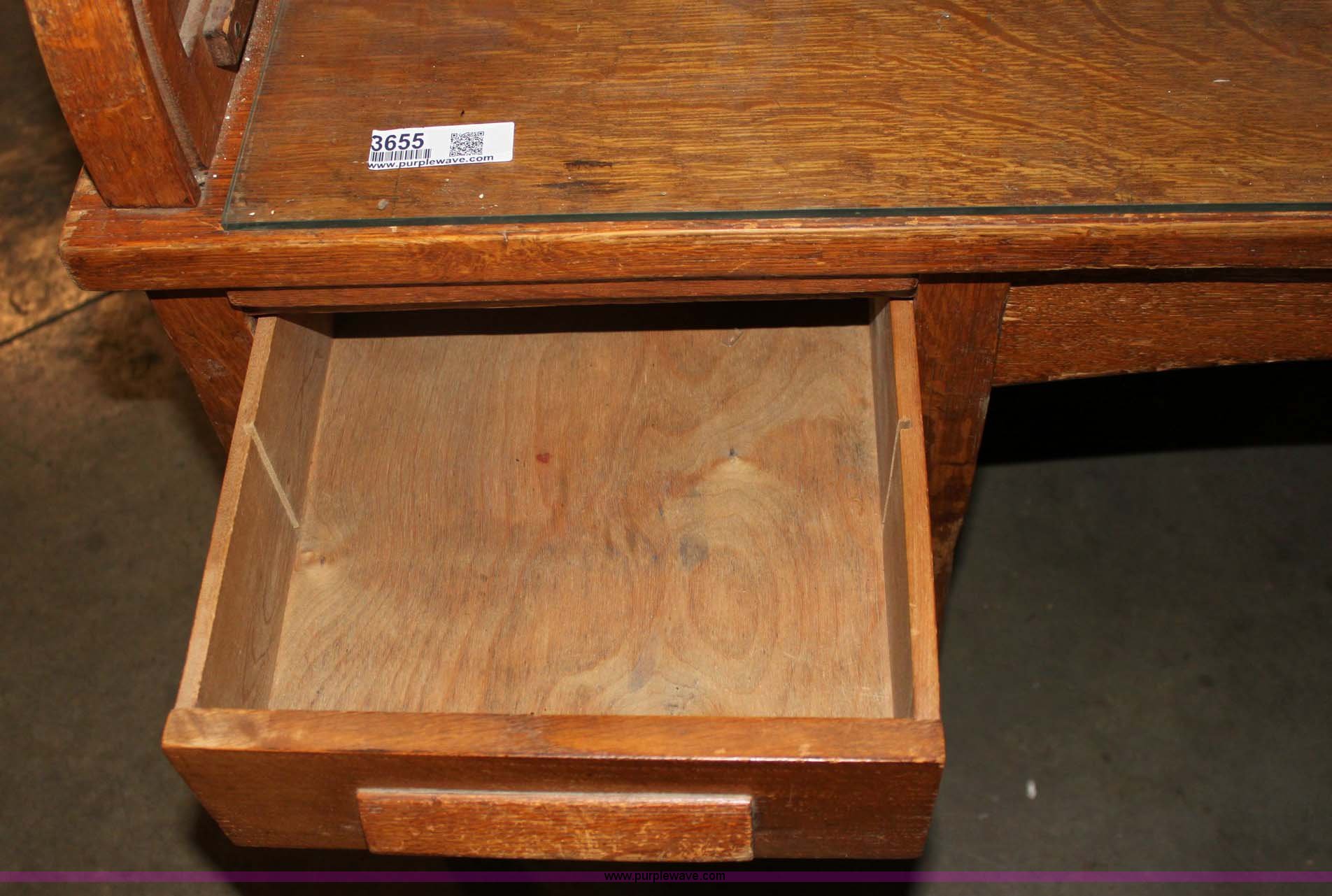 Wood roll top desk and chair has sold in South Hutchinson, Kansas for $302.50. Item 3655 sold on December 14th, 2010.