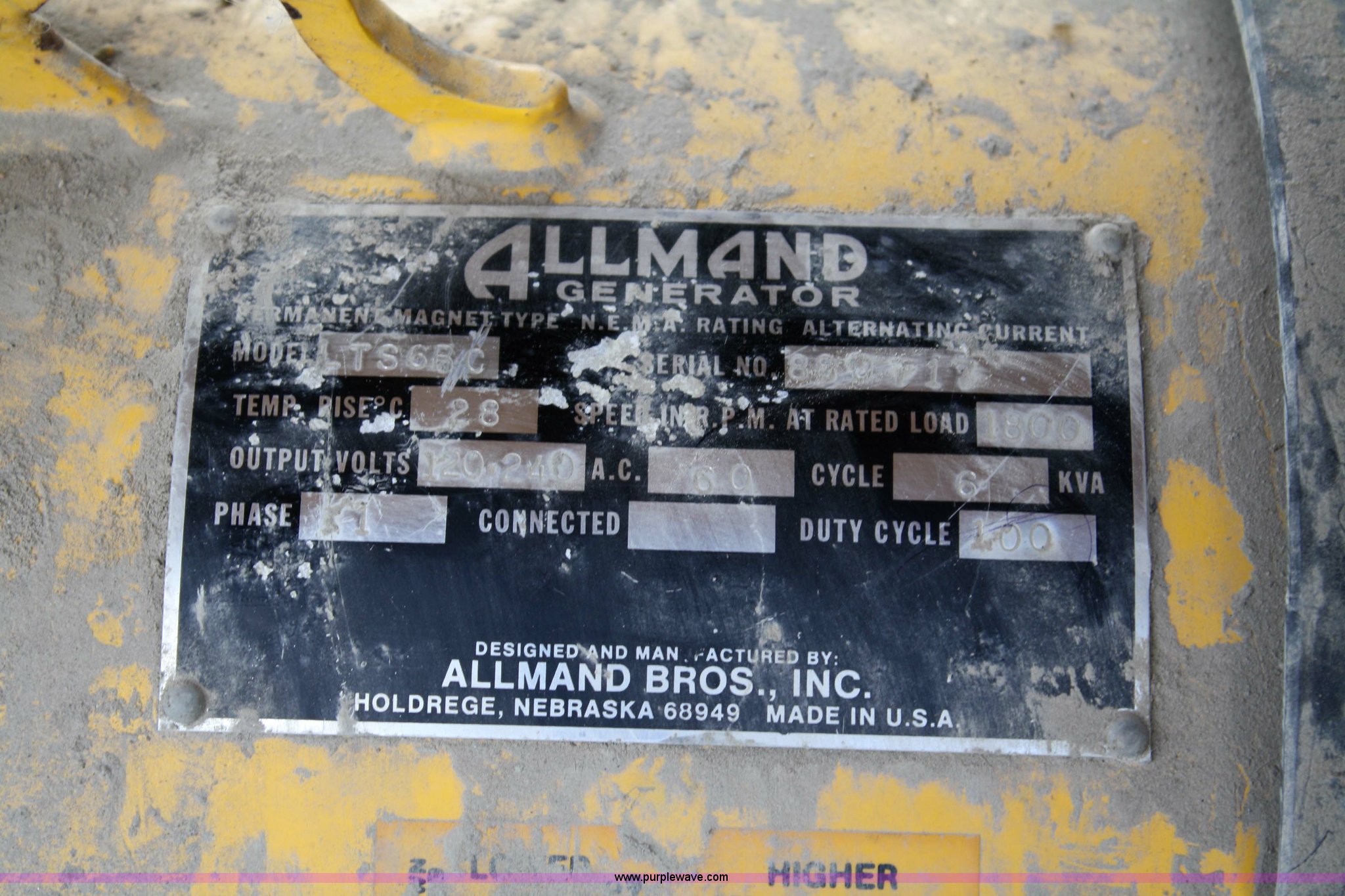 Purple Wave is selling a used Generator Set in Kansas. This item is a Maxi-lite III Cem light tower with the following: 7496 hours on meter, Lister-Petter two cylinder diesel engine, Allmond generator Ts6BC, Single phase, 120-240 volt, Four lights, Electric tower winch, Interchangeable pintle or ball hitch, 215/75R15 tires, Dead battery, Has not been operated for at least four years, Serial 880717