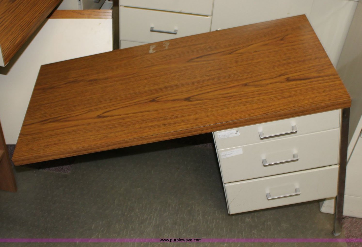 Purple Wave is selling a used Office Supplies and Equip. in Kansas. This item is a Assorted office supplies with the following: (2) metal desks, Laminate wood bookshelf, Office chair