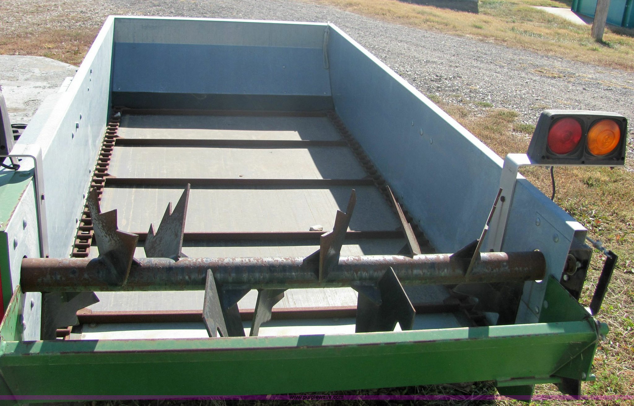 Purple Wave is selling a used Manure Spreader in Kansas. This item is a Frontier MS1108 manure spreader with the following: 8'10"L x 51"W manure box, Pin hitch, 7.60-15 tires, Tail lights and turn signals
