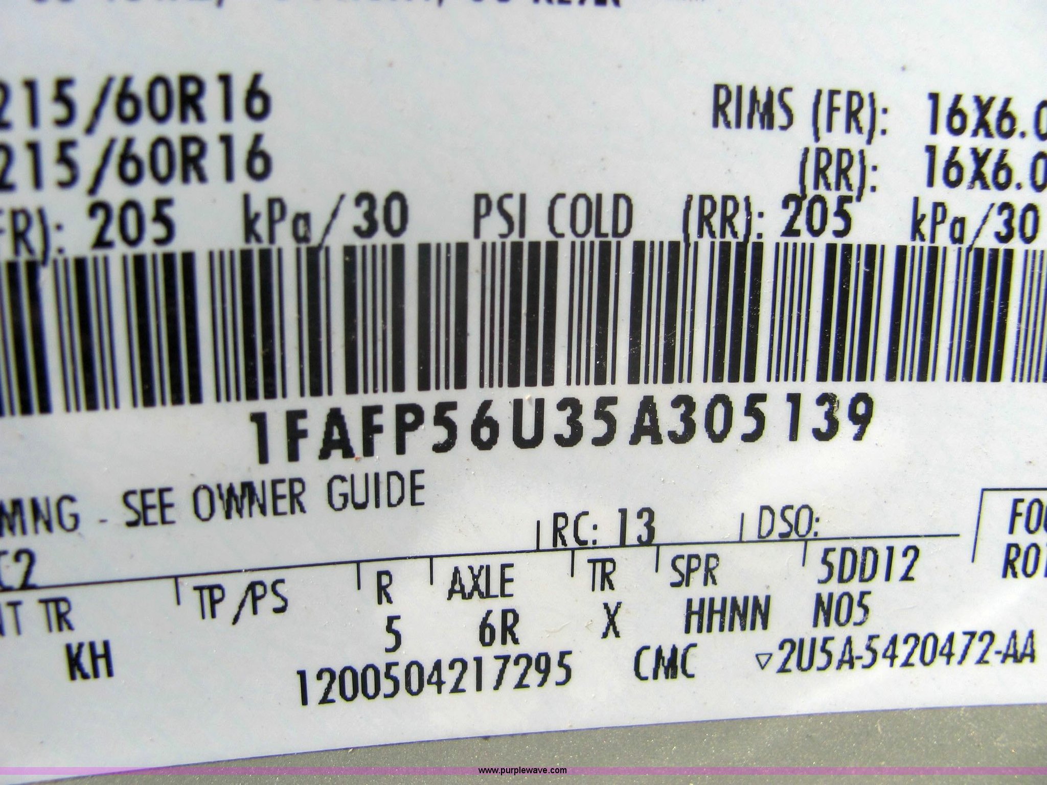 Purple Wave is selling a used Passenger Vehicle in Kansas. This item is a 2005 Ford Taurus SEL with the following: 78,247 miles on odometer, 3.0L V6 EFI, Automatic transmission, AC and heat, Tilt steering wheel, Cruise control, AM/FM/CD player, Power windows, locks, mirrors, and seats, 215/60R16 tires, Check engine light is on, Dent in right front quarter panel, Paint peeling