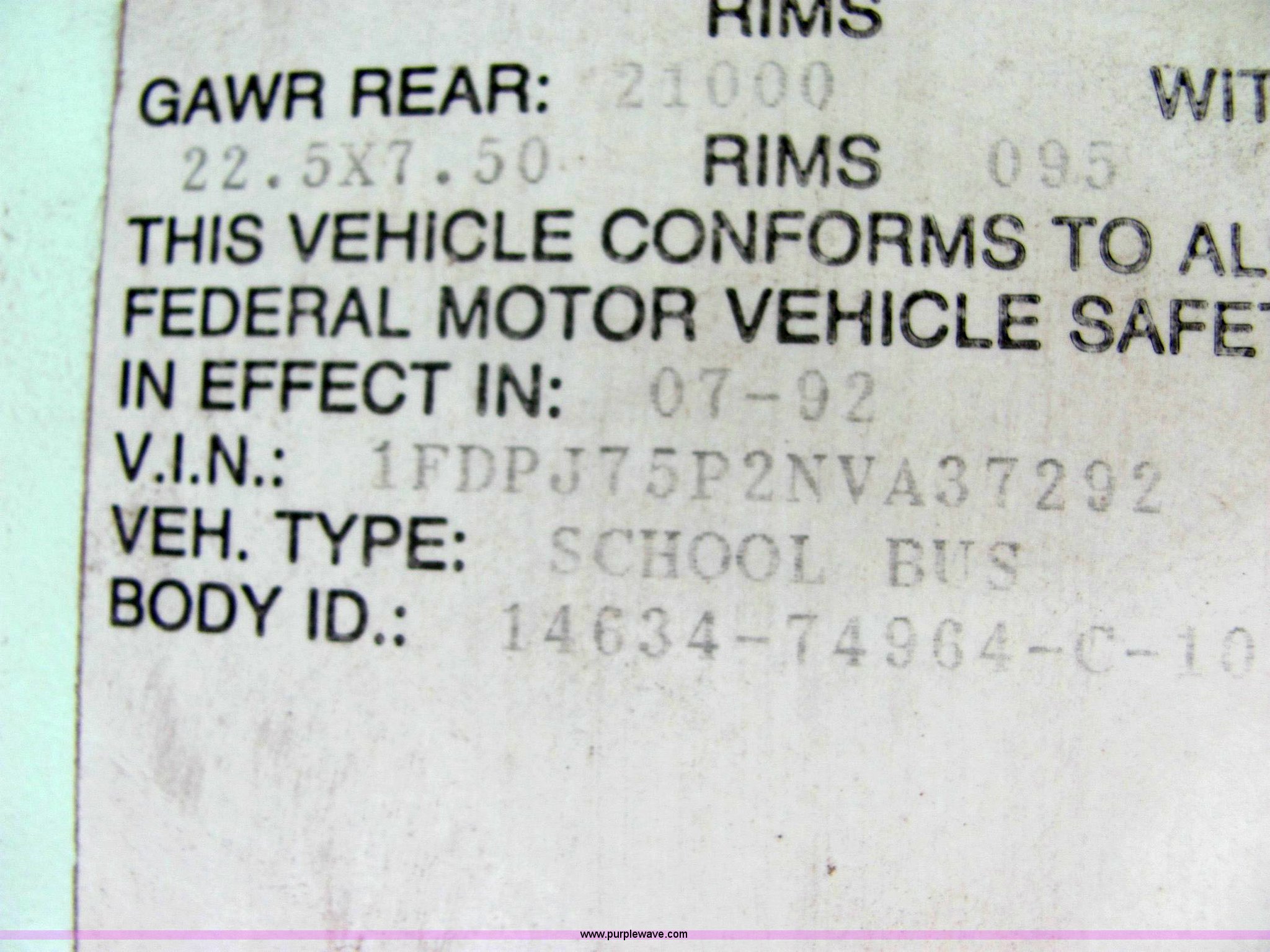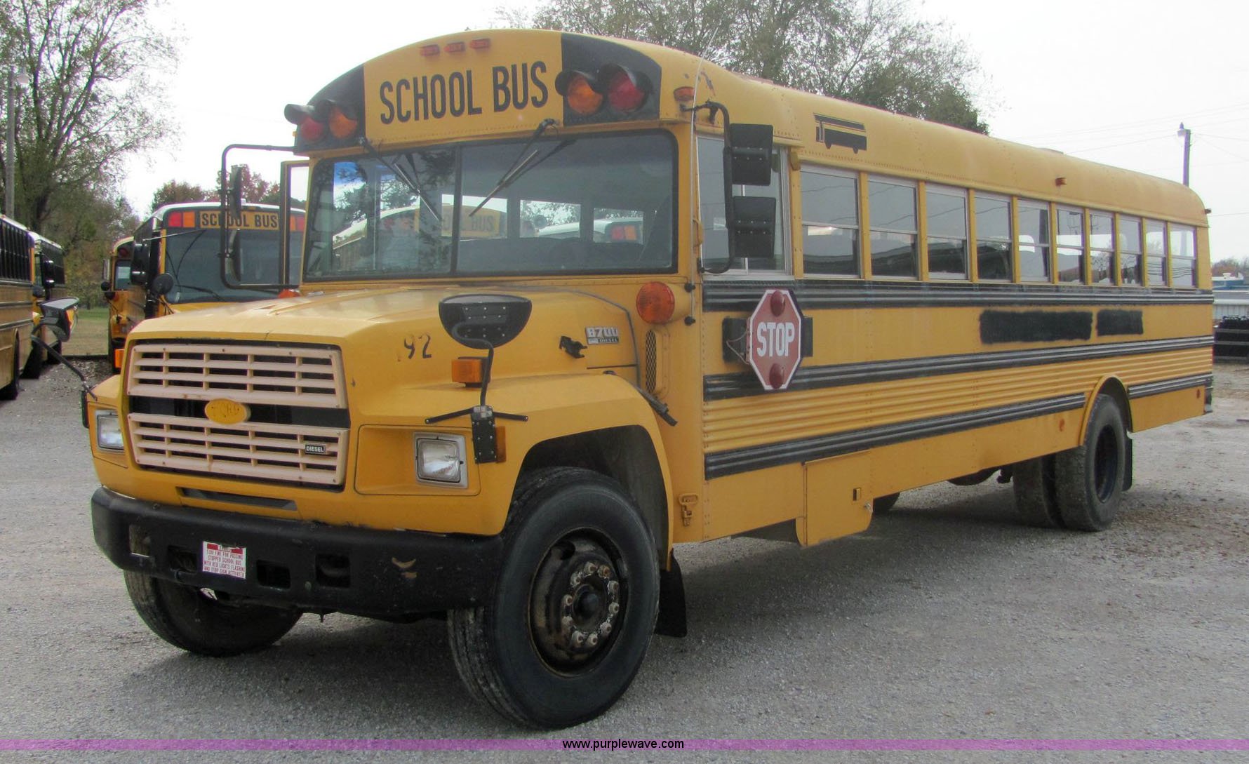 Purple Wave is selling a used Bus in Kansas. This item is a 1992 Ford B700 Thomas Built school bus with the following: 126,544 miles on odometer, Ford 6.6L 170hp diesel engine, Automatic transmission, Hydraulic brakes, Panasonic AM/FM radio, Roof, side, and rear emergency egress, GVWR 30,000 lbs, GAWR front 9,000 lbs, GAWR rear 21,000 lbs, 11R22.5 tires, Serviced summer 2010