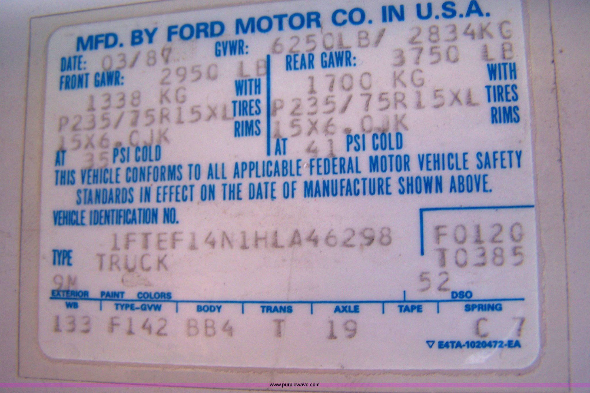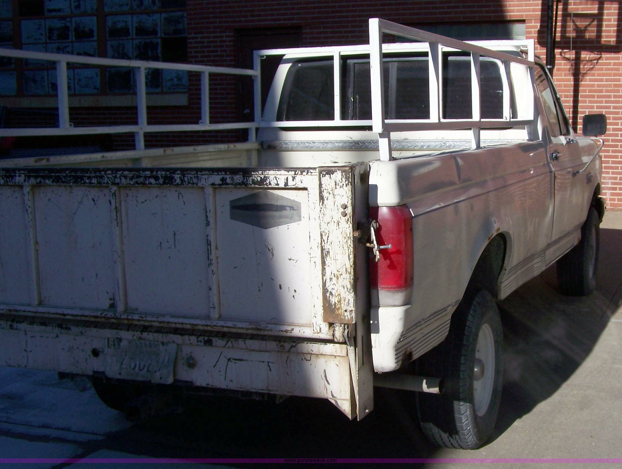 Purple Wave is selling a used Passenger Vehicle in Kansas. This item is a 1987 Ford F150 pickup truck with the following: 58,974 miles on odometer, 5.0L V8 EFI, Automatic transmission, Lock-out hubs, Four wheel drive, AC and heat, AM/FM radio, Manual windows and locks, Long bed, Receiver hitch, Tommy lift gate, P225/75R15 tires, Recently replaced battery, Hood latch needs adjustment, Unknown oil leak