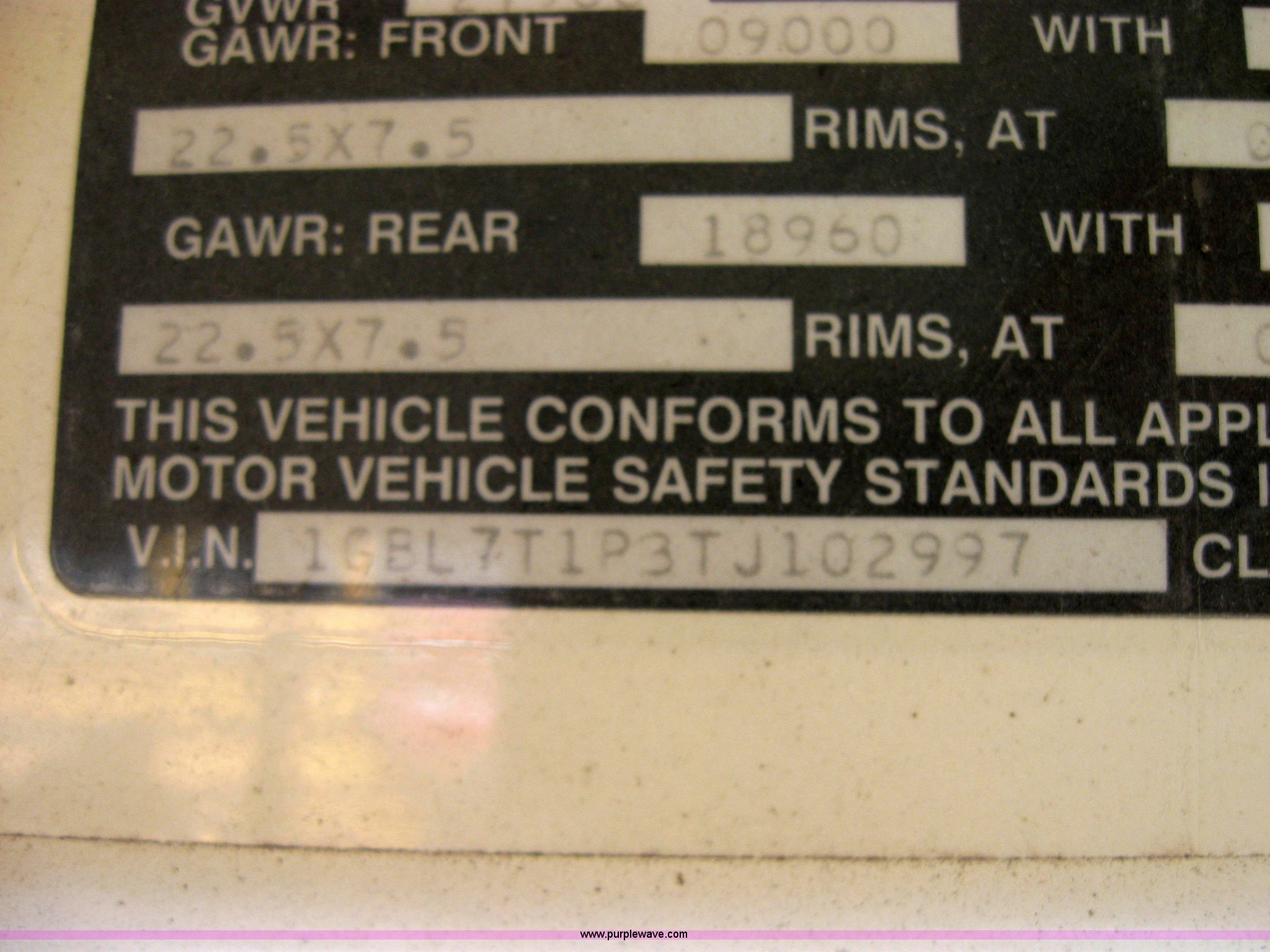 1996 Chevrolet B7 Blue Bird school bus. 149,546 miles on odometer, 454cid gas engine, Automatic transmission, 71 passenger, Heat, AM/FM/cassette player, GVWR 27,960 lbs, 10R22.5 tires, Blue Bird# M74571, Engine is blown, Bus has been used for parts Missing parts includes steering box, lights, battery, and more, Unit # 17. 1GBL7T1P3TJ102997. USD 378 Riley County. 12451 Fairview Church Road. Riley, KS 66531