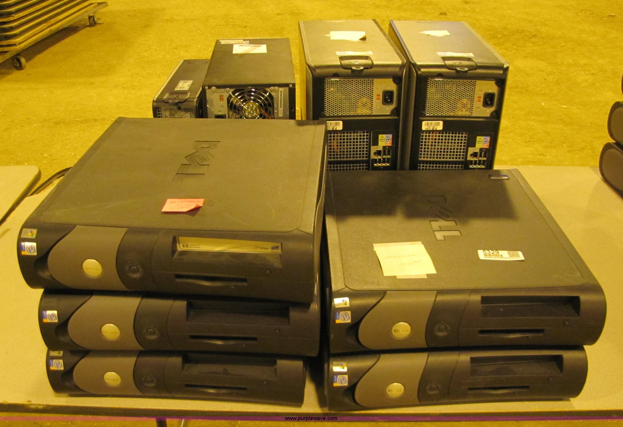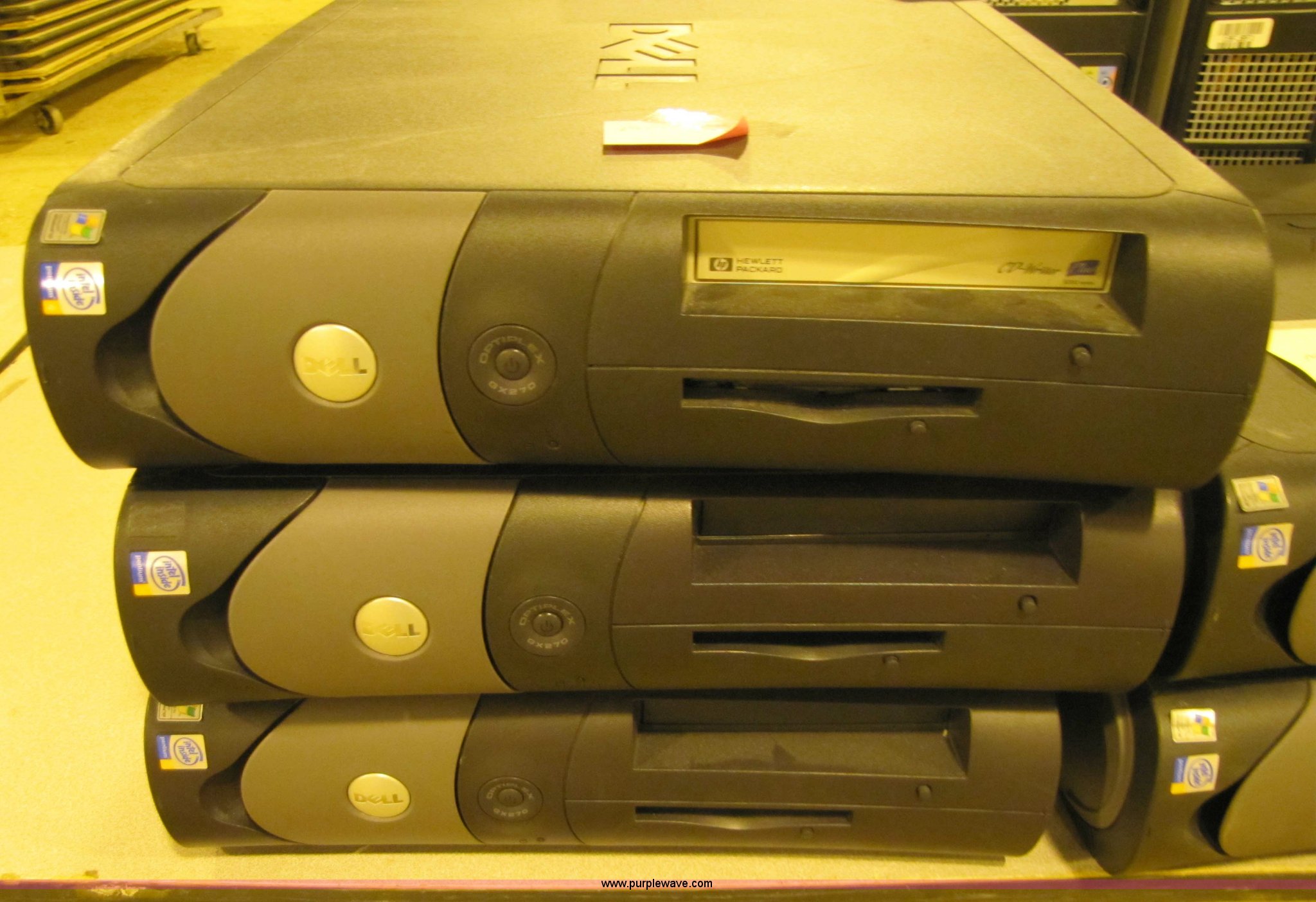 Purple Wave is selling a used Computers in Kansas. This item is a (9) Computer towers with the following: (5) Dell Optiplex GX270, Pentium 4, (2) Dell Optiplex 330, Pentium dual core, Compaq EVO, Dell Optiplex GX520, Pentium 4, All have no operating system installed