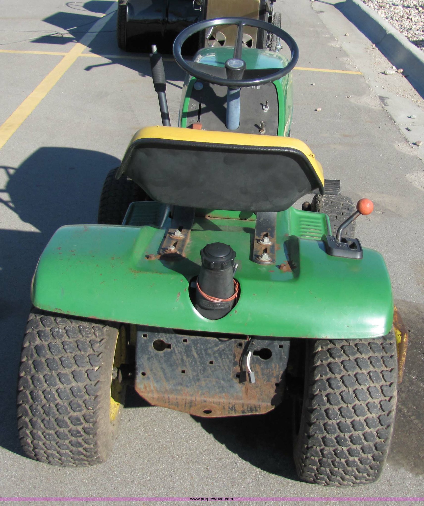 Purple Wave is selling a used Lawn and Garden in Kansas. This item is a John Deere 111 riding mower with the following: Briggs & Stratton 13.5hp engine, Engine locked up, 40" deck, 18x8.50-8 rear tires, 15x6.00-6 front tires, flat, No battery, Cosmetic damage to seat, Key, Serial C111L191404M