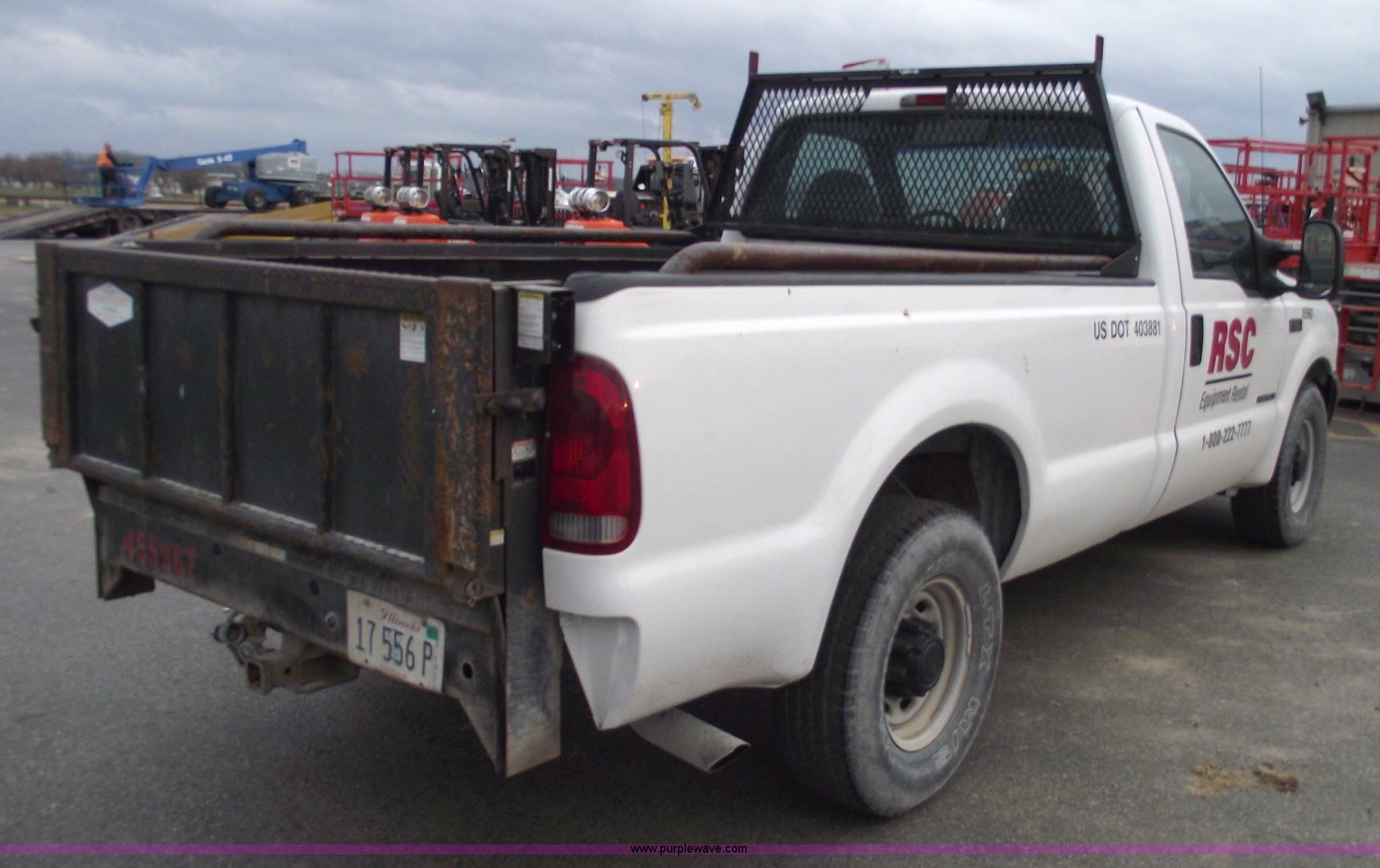 Purple Wave is selling a used Passenger Vehicle in Illinois. This item is a 2002 Ford F250 XL Super Duty pickup truck with the following: 141,607 miles on odometer, 7.3L V8 DI diesel engine, Automatic transmission, AC and heat, AM/FM radio, Manual windows and locks, Vinyl seats, Rubber floor, Electric brake controller, Receiver hitch, Trailer wiring, Spray in bed liner, Headache rack, Steel bed rails, Front tow hooks, Tommy Lift gate, 1,000 lbs capacity, 265/75R16 tires, Scratches and dents, Needs ball joints, EIN 455967
