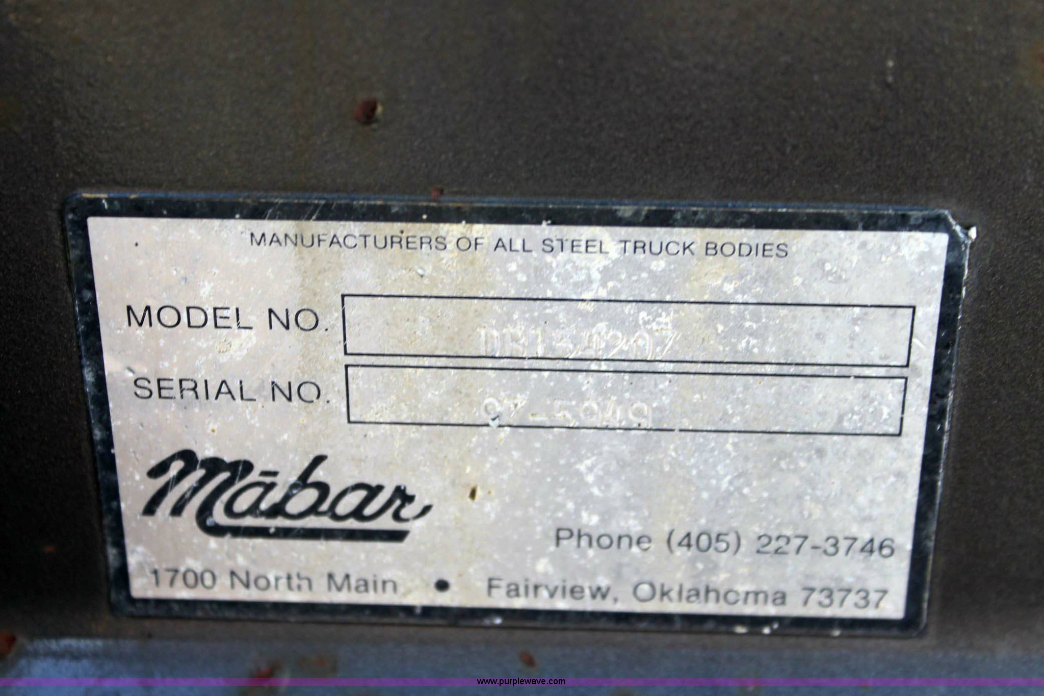 Mabar dump truck bed. Model DB154207, Manual dump end gate, Roll over tarp, Rear bed hydraulic couplers, Serial 07-5949. Shipping quotes available. McPherson County. 1115 W Avenue A. McPherson, KS 67460-5241