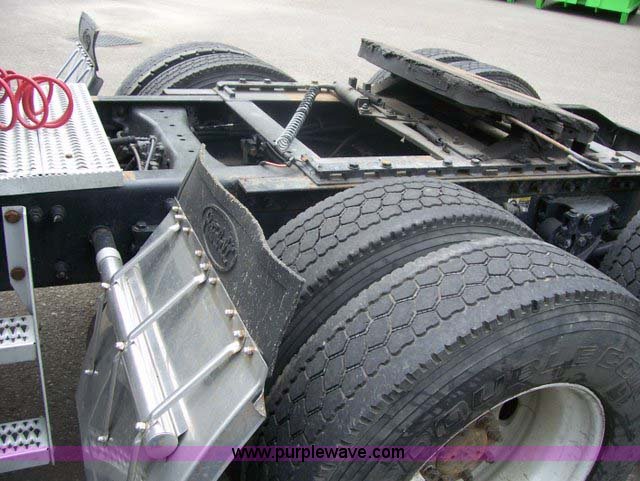 Purple Wave is selling a used Truck Tractor in Oregon. This item is a 2004 Peterbilt Conventional 387 semi truck with the following: 756,004 miles on odometer, Caterpillar C15 L6, 14.6L (893 CID) 475hp diesel engine, 10 speed manual transmission, Twin screw, AC and heat, Air ride cab, Power windows, Passenger daylight door, Dual fuel tanks, Double rear stacks, Aluminum deck plate, Air slide fifth wheel, Raised roof sleeper with storage, Air suspension, Air brakes, GVWR 50,000 lbs, GAWR front 12,000 lbs, GAWR intermediate 19,000 lbs, GAWR rear 19,000 lbs, Flat tire, Dead batteries