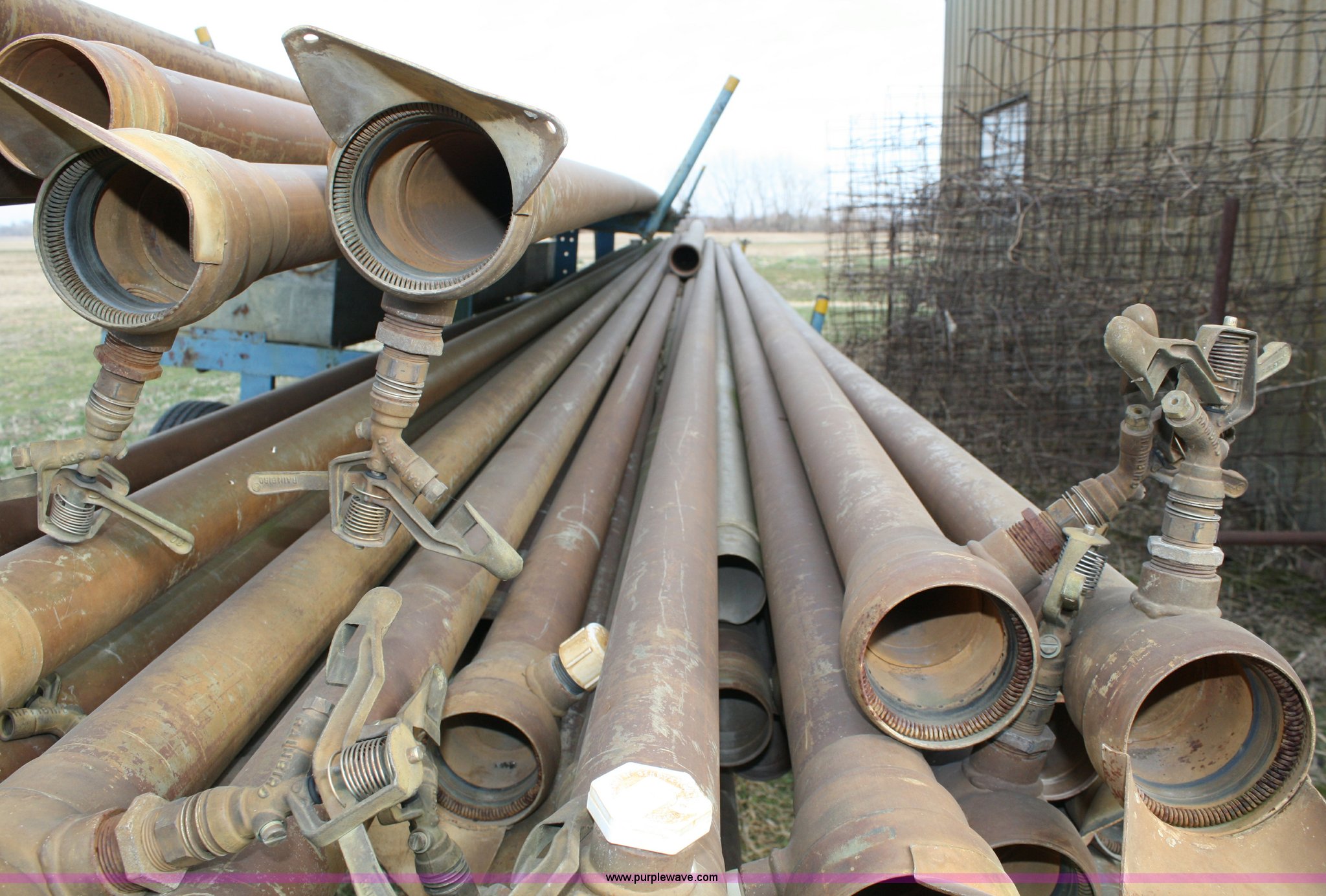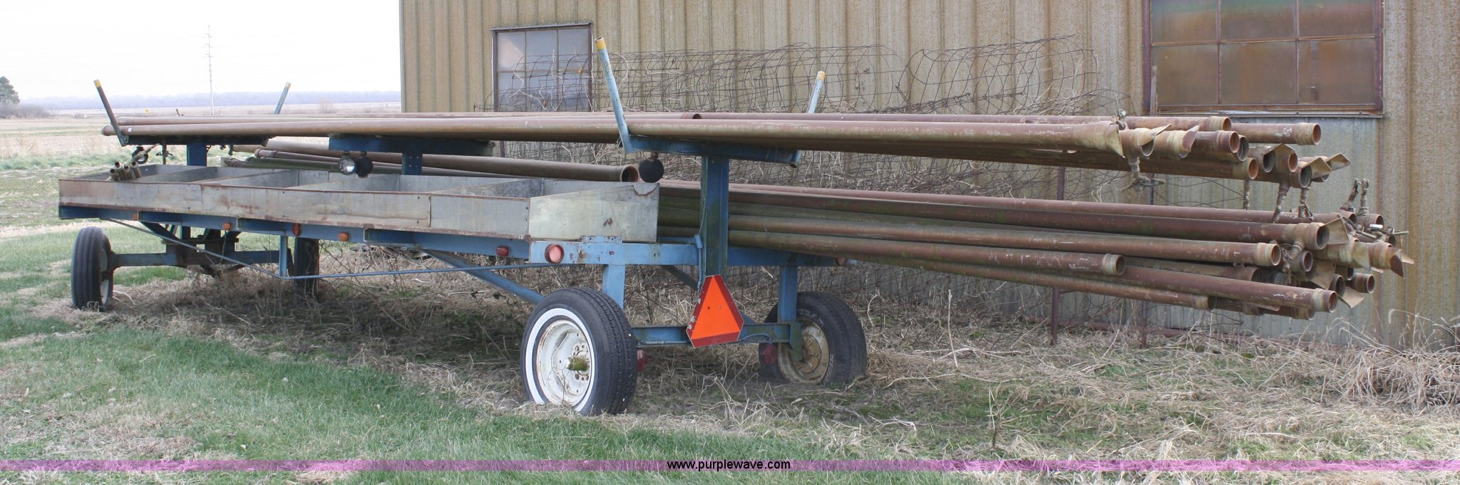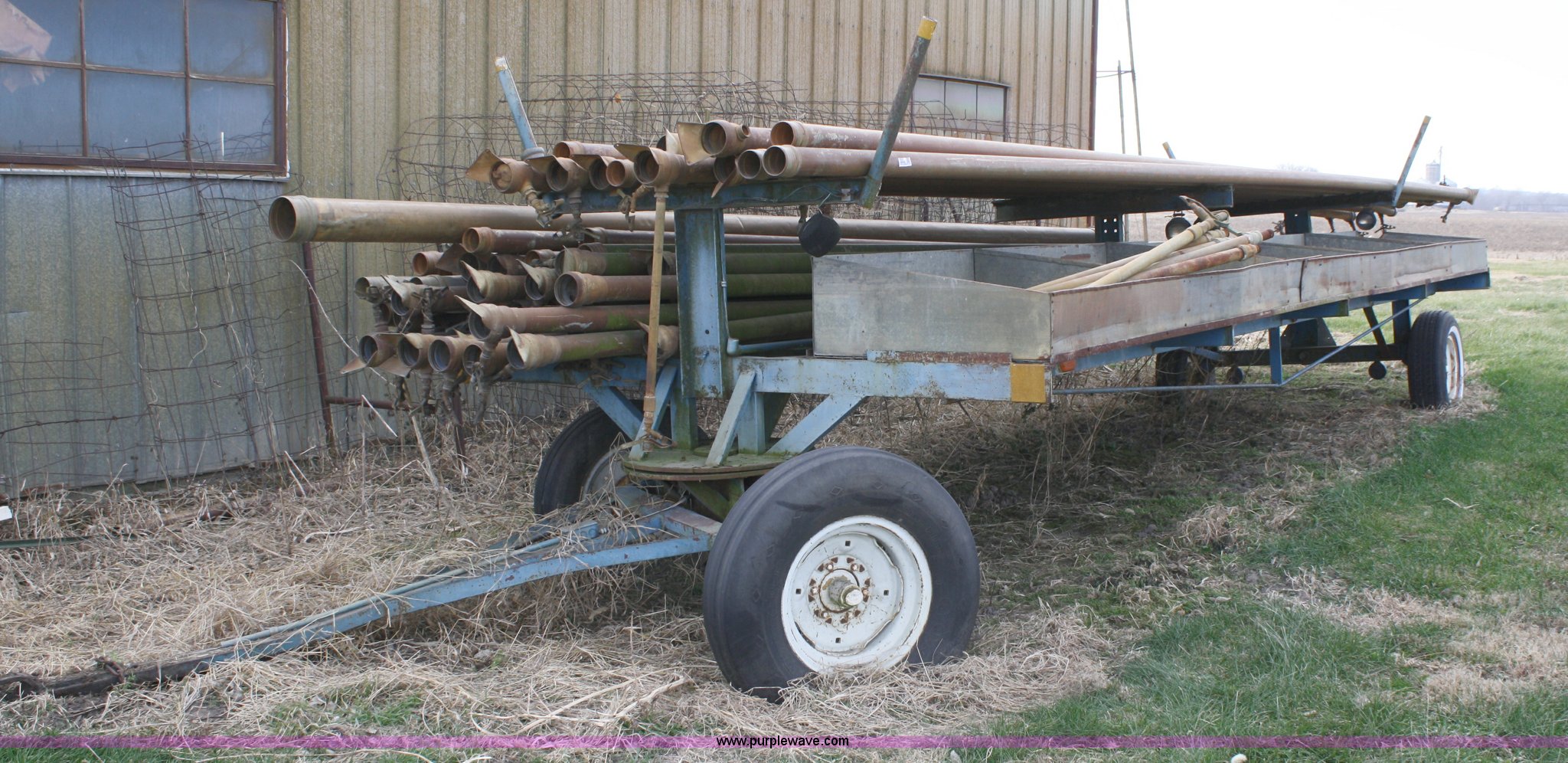 Purple Wave is selling a used Irrigation Equip. Attach. in Kansas. This item is a Irrigation pipe and trailer with the following: Approx 50 30'L x 3" diameter irrigation pipe, 30H Rainbird sprinklers