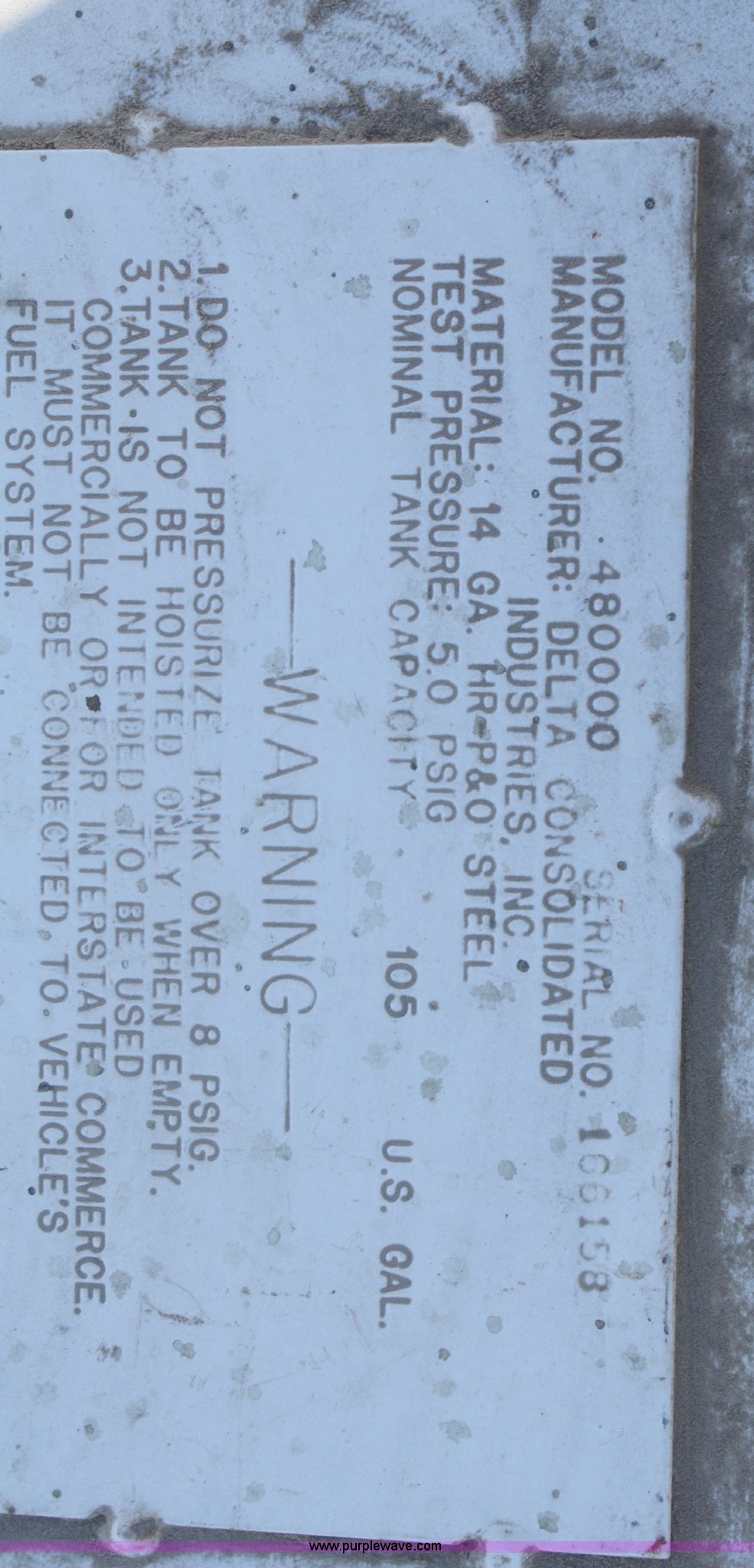 105 gallon L-shaped fuel tank with pump has sold in Lawrence, Kansas for $302.50. Item 4973 sold on December 28th, 2010.