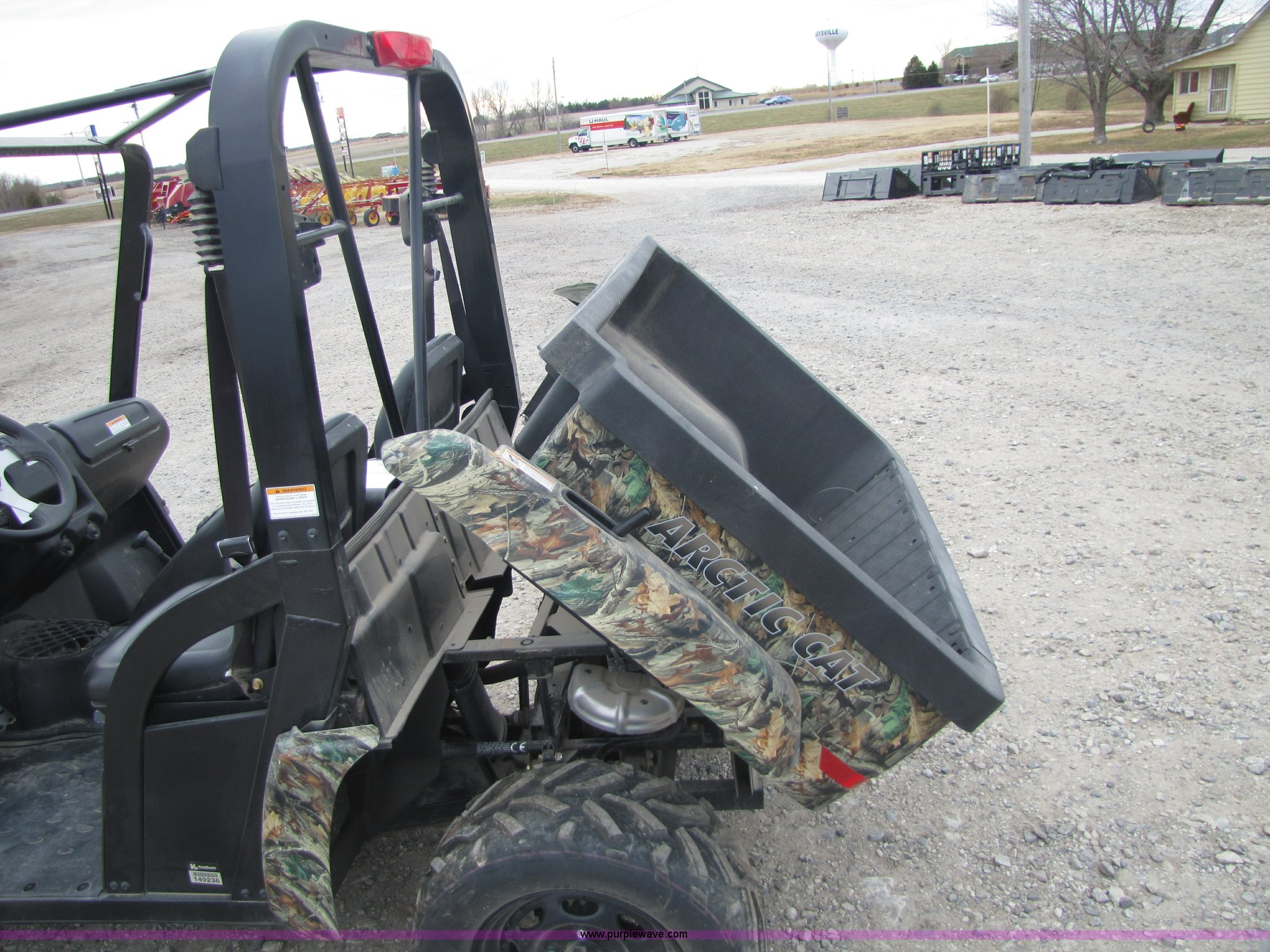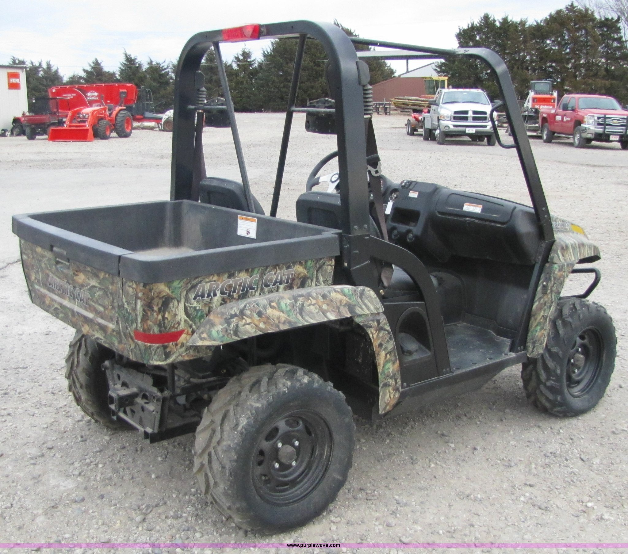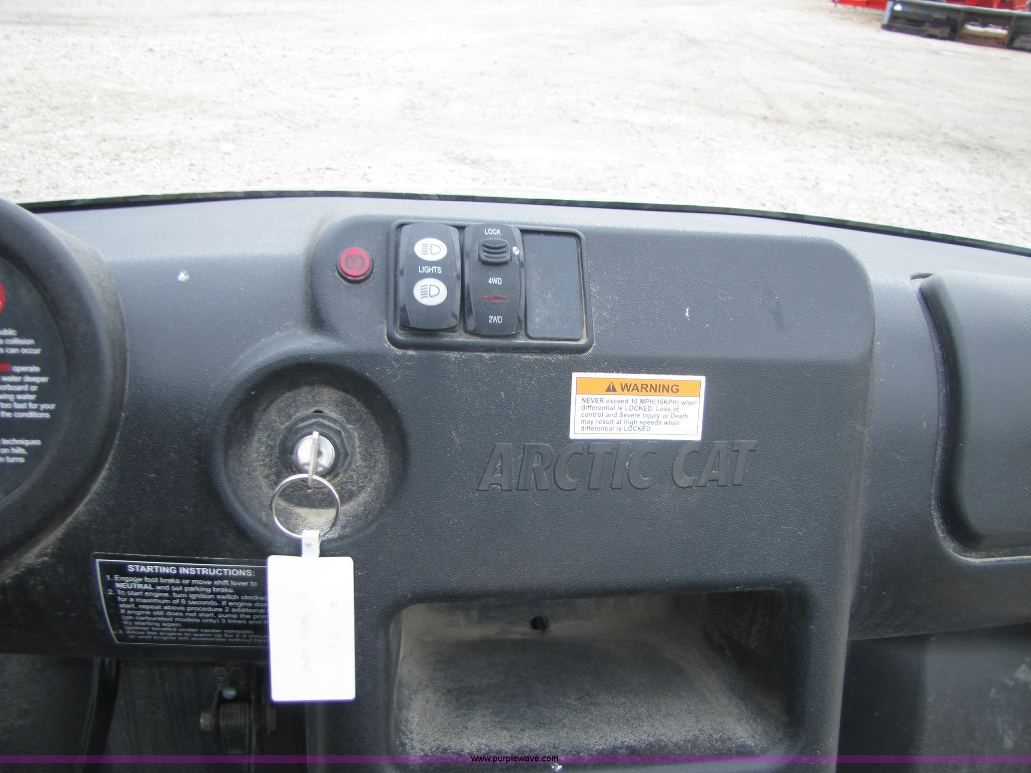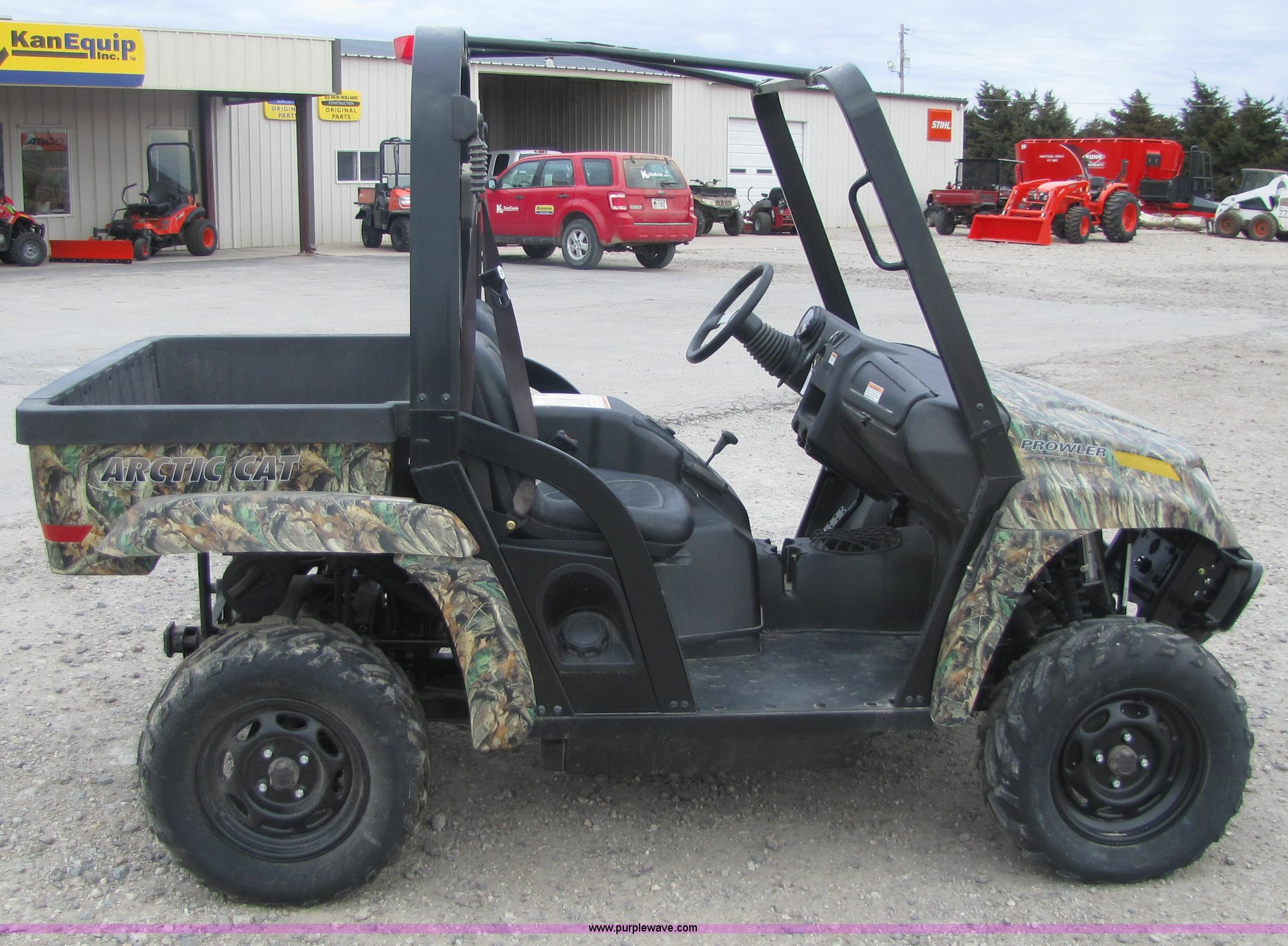 Purple Wave is selling a used Utility Vehicle in Kansas. This item is a 2010 Arctic Cat Prowler XTX 700 ATV with the following: 2 miles on odometer, 695cc SOHC, four stroke, four valve gas engine, 8.2-gallon fuel capacity, Automatic CVT transmission with EBS, Hi/lo range and reverse, 2/4WD and diff lock, Hydraulic disc brakes, Manual dump bed, Tilt steering, Underhood storage, 1,243 dry weight
