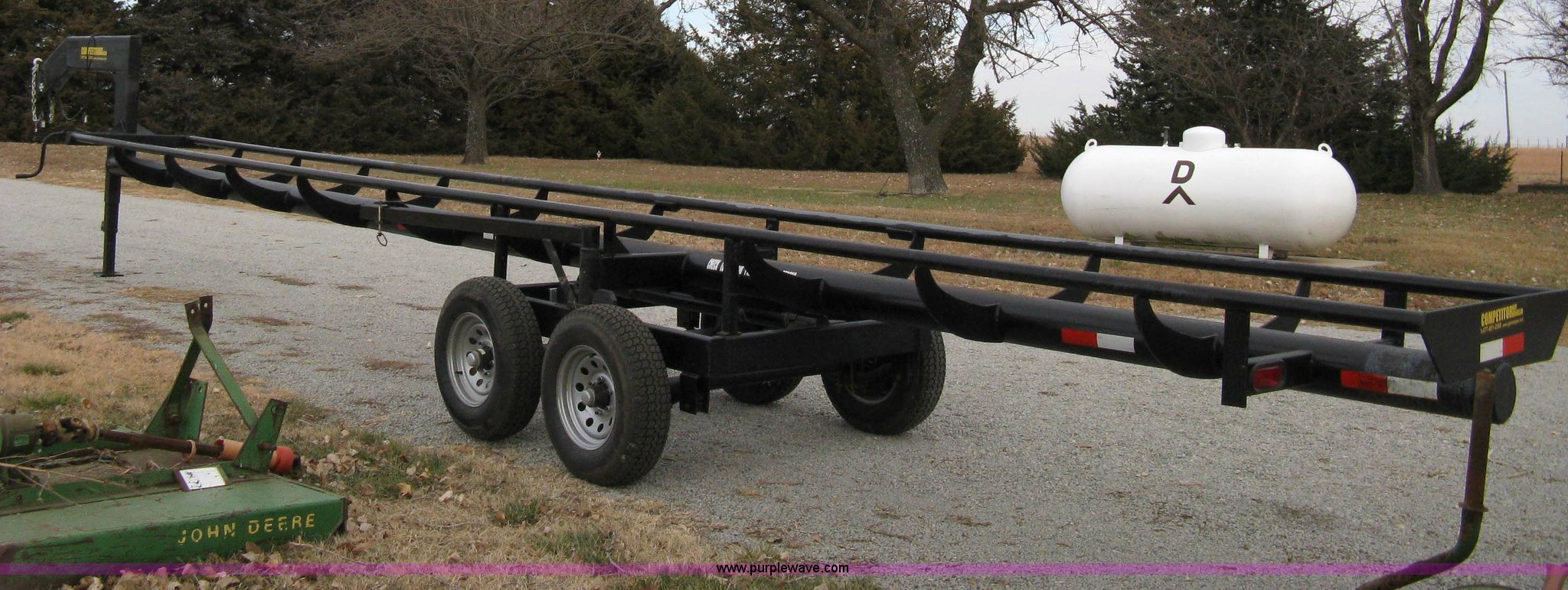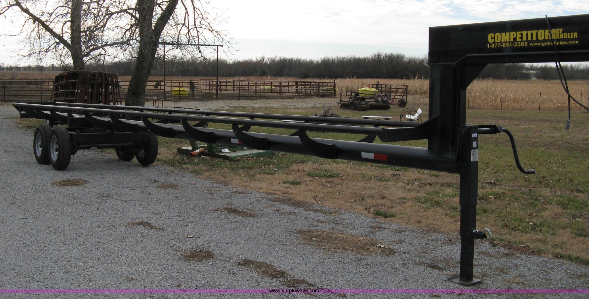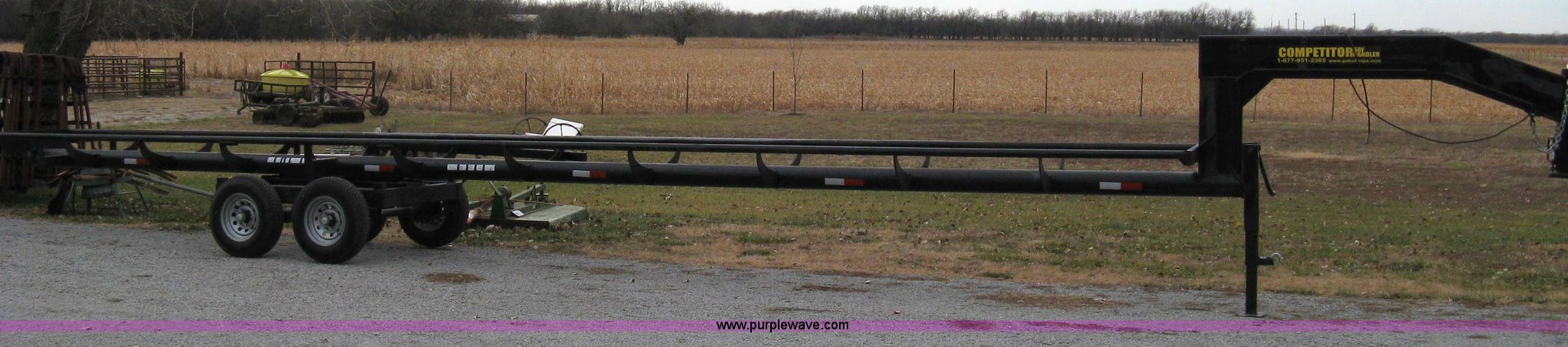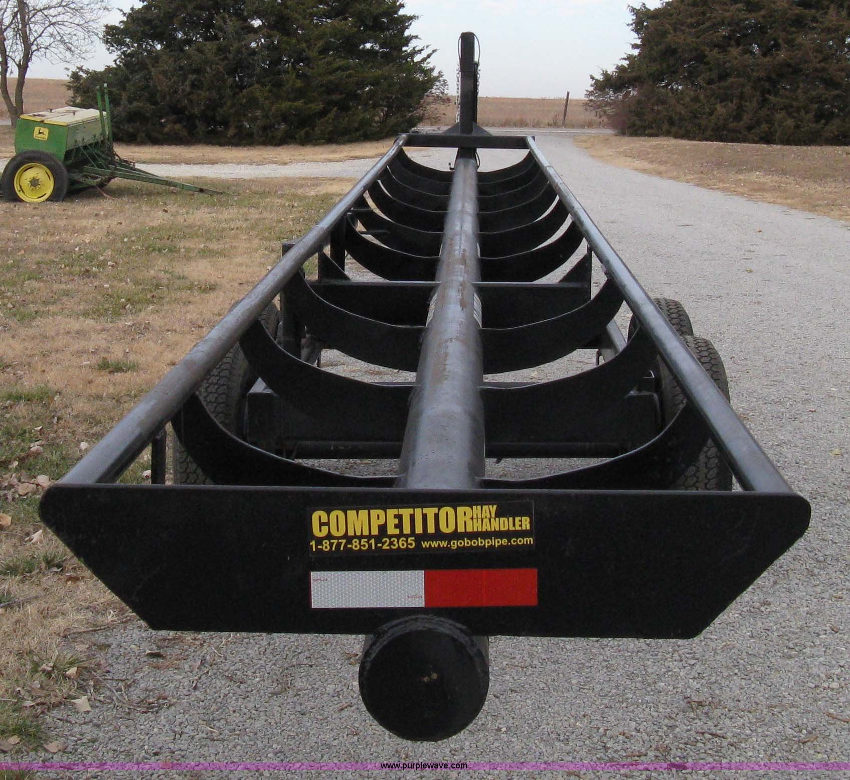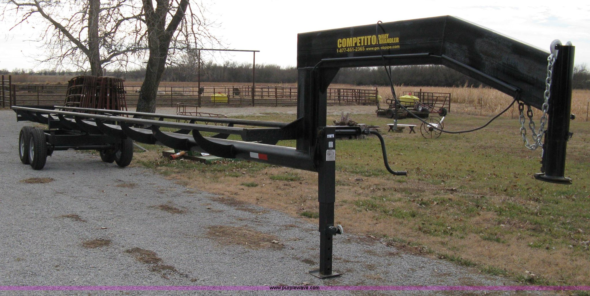 Purple Wave is selling a used Hay Handling in Kansas. This item is a 2010 Competitor Hay Handler 36' inline self-dump round bale trailer with the following: Bulldog gooseneck hitch, Break-away chains, Trailer lights and brake hookup, Spring loaded landing gear, Tandem axle, Brake on rear axle, Swivel manual dump arm, ST225/75D15 tires, Eight ply trailer tire, Lights and reflective tape, Used one season for approx. 350 bales hauled