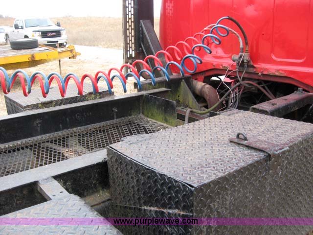 Purple Wave is selling a used Truck Tractor in Kansas. This item is a 1972 GMC semi truck with the following: 450,193 miles on odometer, Detroit Diesel model V8 diesel engine, 13 speed manual transmission, Twin screw, Heat, AM/FM/cassette player, Air ride cab, Chrome bumper, Dual 50 gallon fuel tanks, Double rear stack, Steel deck plate, Air dryer, Wet kit, Air suspension, Air brakes, GVWR 49,000 lbs, GAWR front 11,500 lbs, GAWR rear 38,000 lbs, 10.00R20 tires