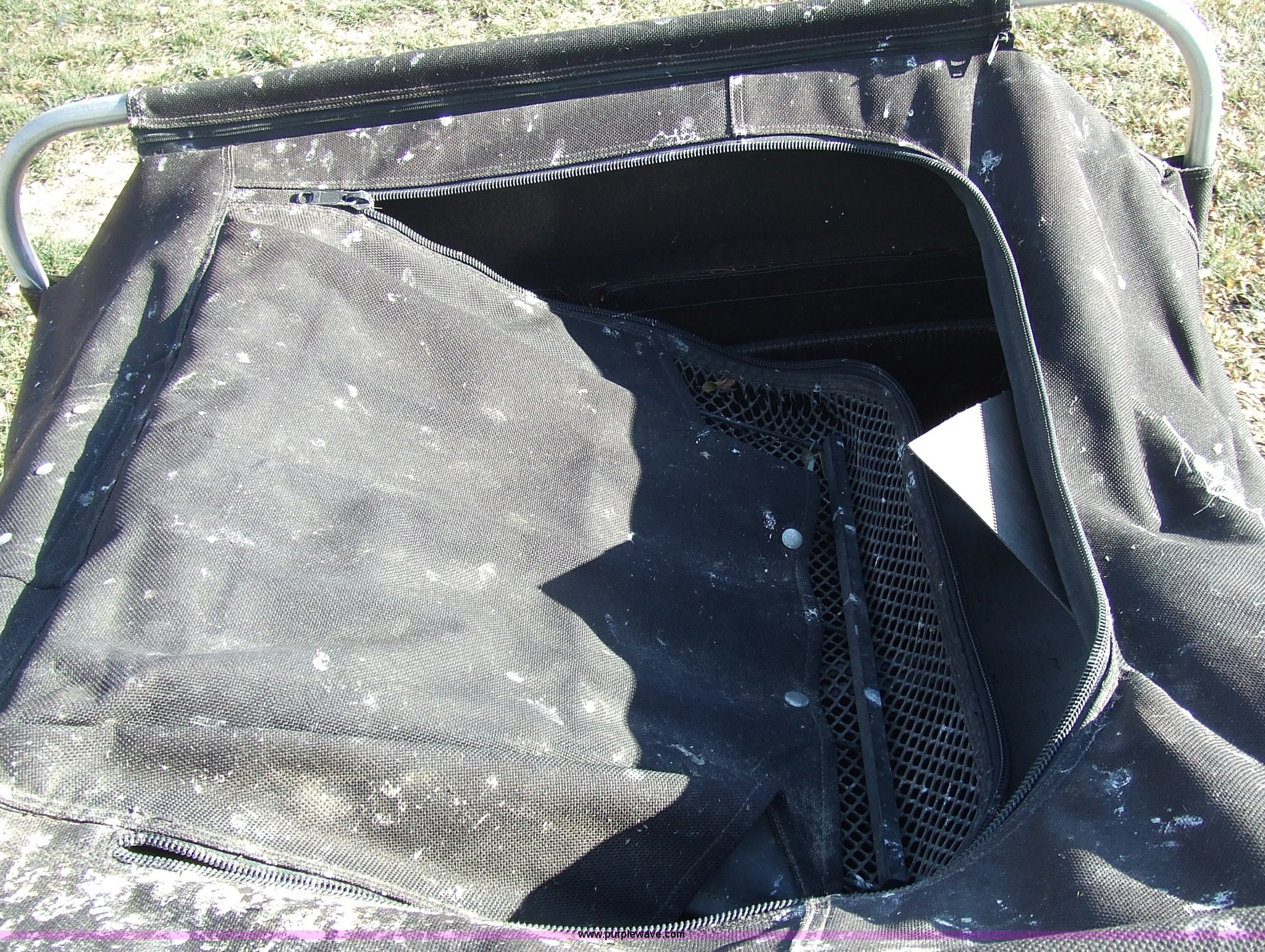 Purple Wave is selling a used Lawn and Garden in Kansas. This item is a Cyclone pull-behind leaf rake vacuum for riding mower with the following: Grinder and blower motor, 5hp Tecumseh, 7" hose