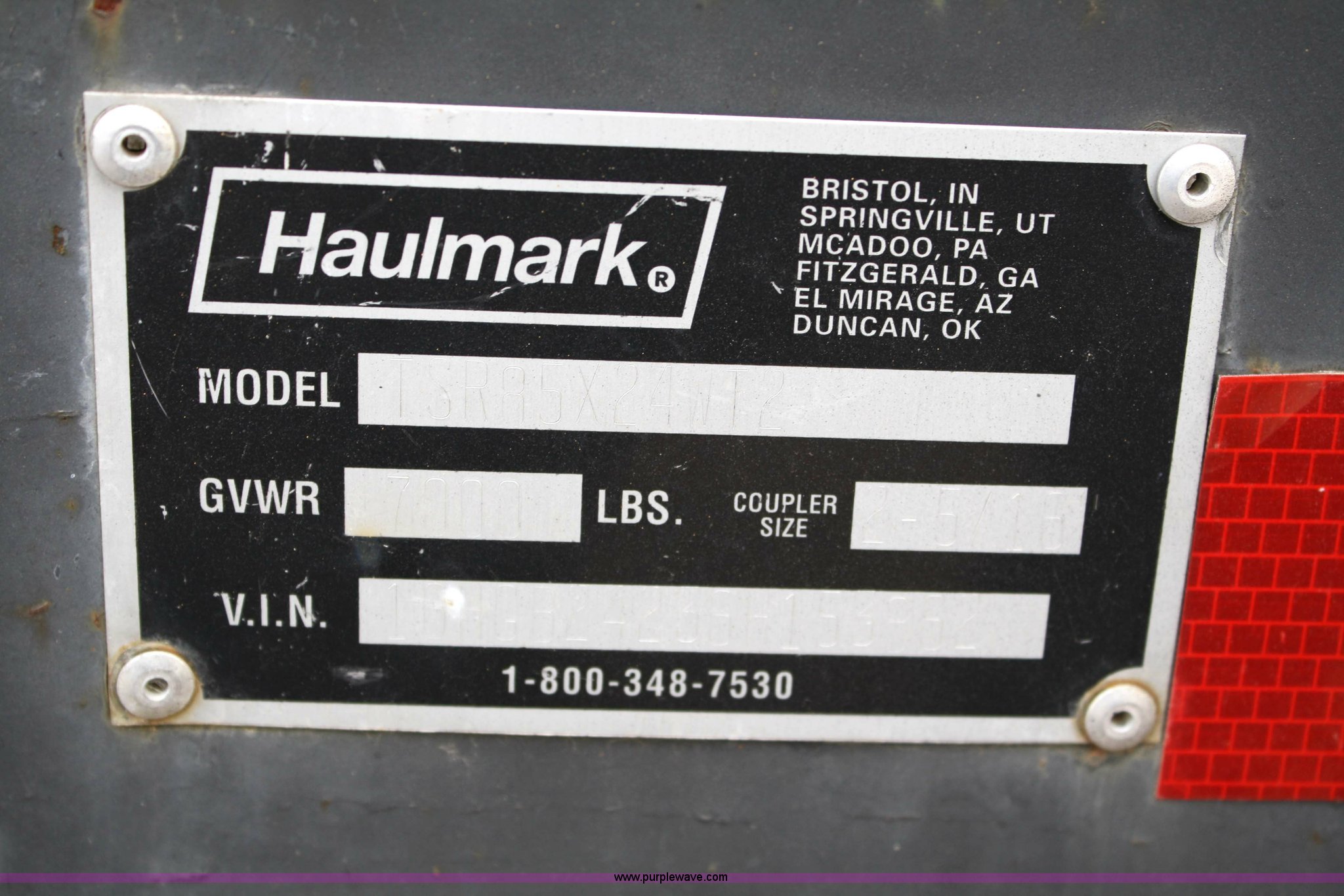 Purple Wave is selling a used Enclosed Cargo Trailer in Kansas. This item is a 2006 Haulmark 24' enclosed trailer with the following: 2' extension, 8'3" width, Fold down door, AC unit, 2 5/16" ball hitch, Tie down rings, 92" x 77" entry door, 7.00/75D15 tires, Spare tire, GVWR 7,000 lbs, 3,500 lbs axles
