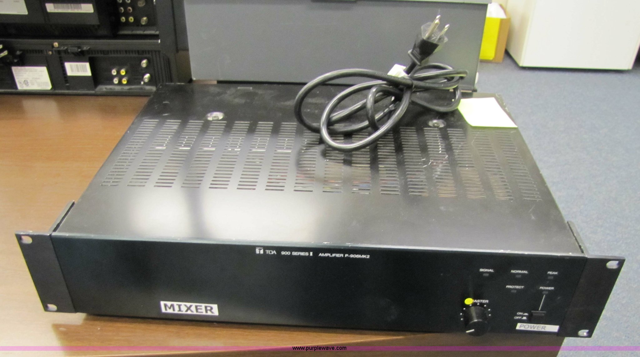 Purple Wave is selling a used Electronics in Kansas. This item is a Assorted electronics with the following: (3) VCR's, 3M 9050 projector, TOA 900 series power amplifier, P-906MK2