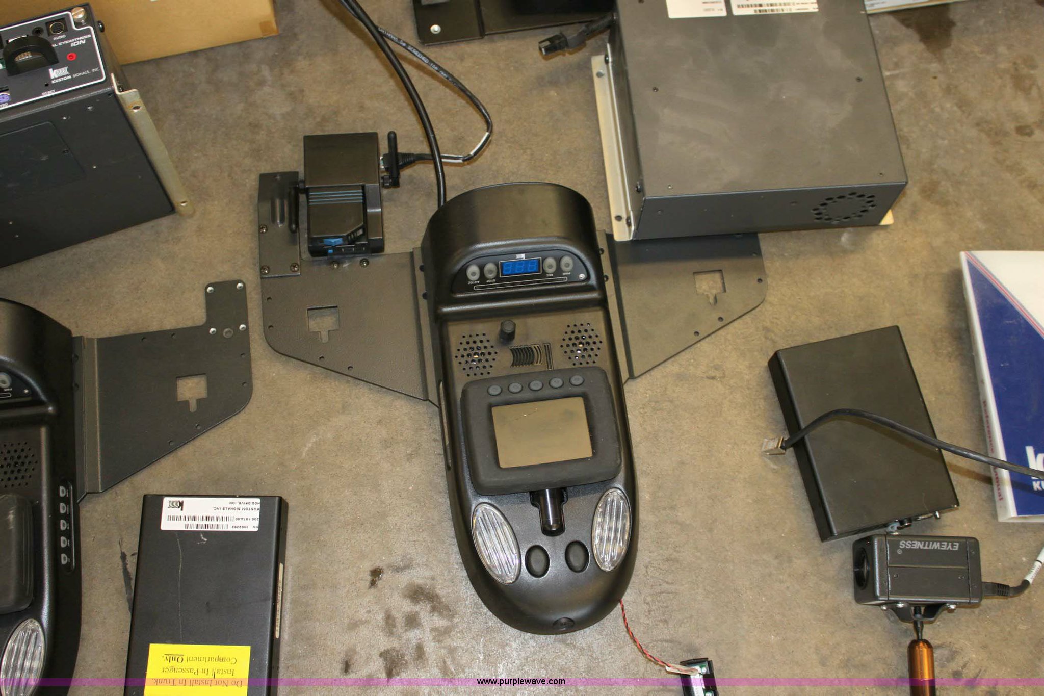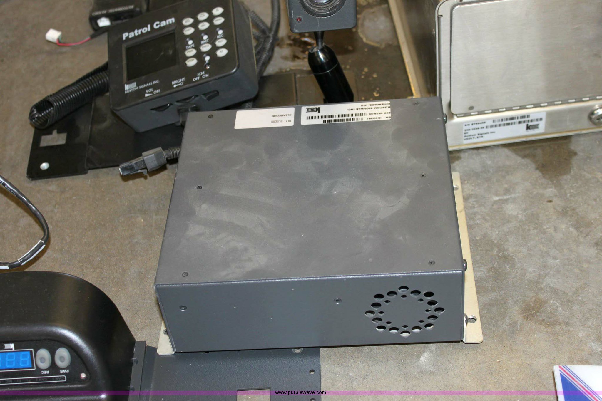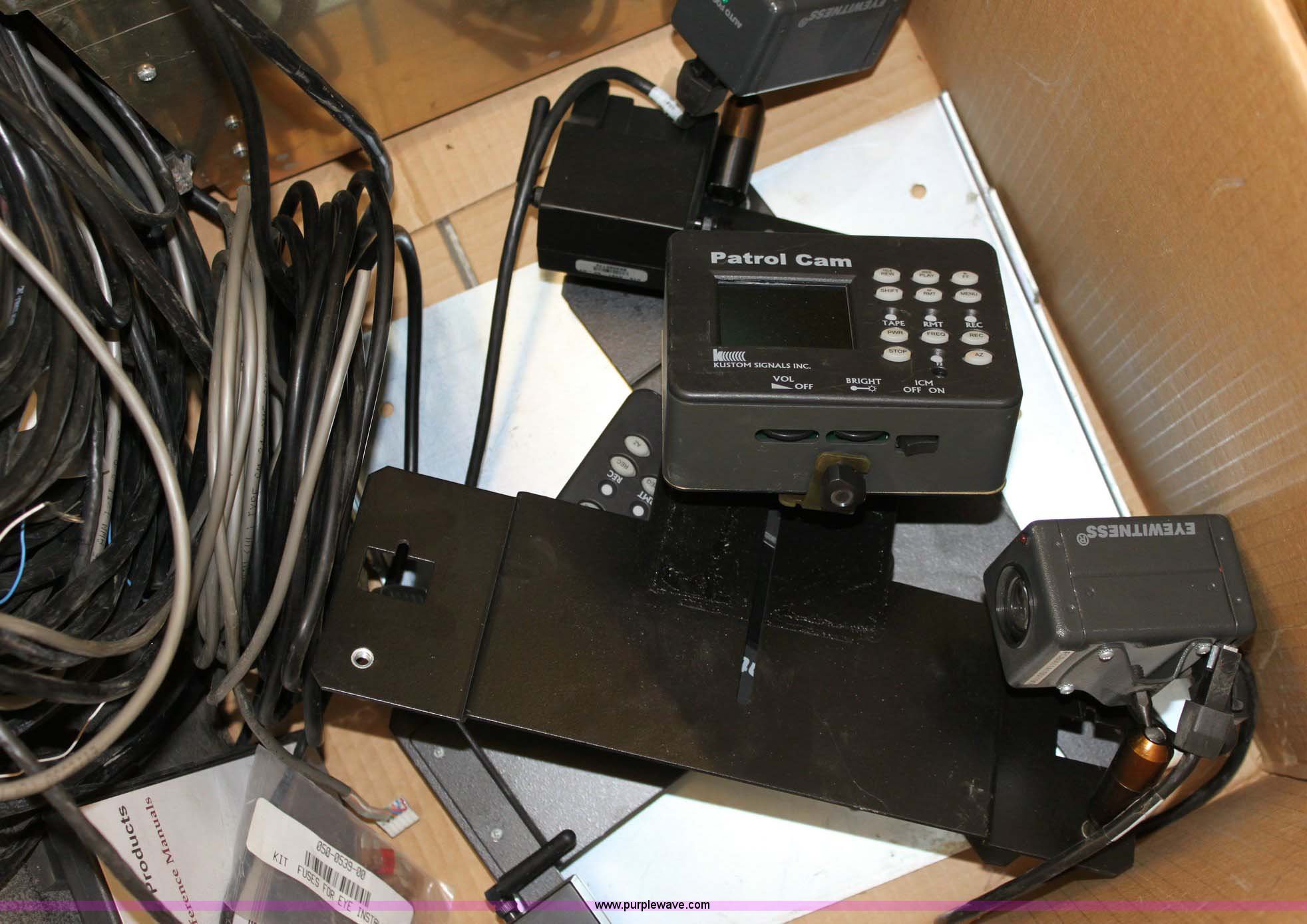 Purple Wave is selling a used Electronics in Kansas. This item is a Assorted recording equipment with the following: (2) custom signals, digital eye witness ion, Mountable review screen, control boxes, cameras, hard drive enclosures, and wiring, (2) Kuston signals VHS eye witness, Patrol cam, VCR, VCR enclosure, wiring harness, Assorted Kustom signals reference manuals, (2) eastern cameras, Two video switches, VCR, (3) stationary mount camera's, (6) Powercam recording units, Six control boxes and belt pack transmitters