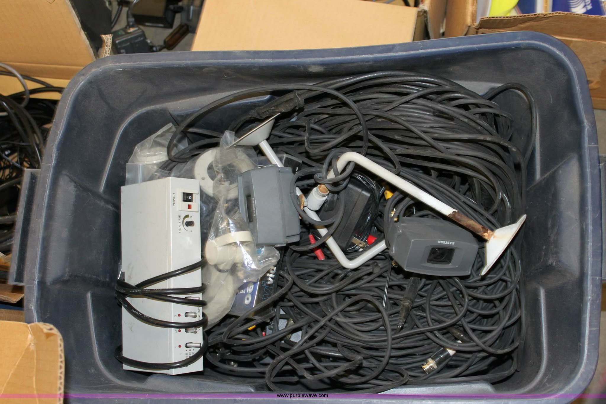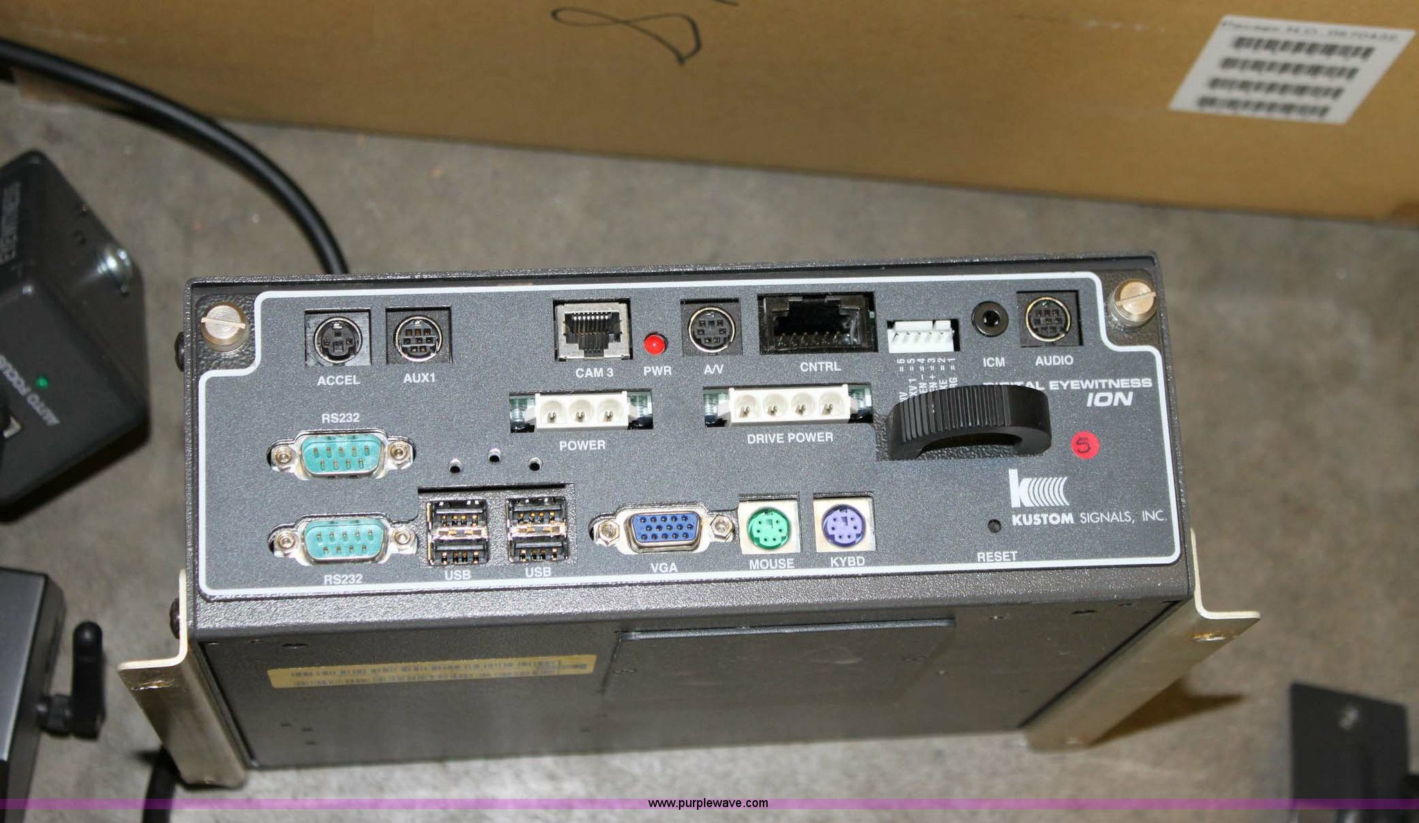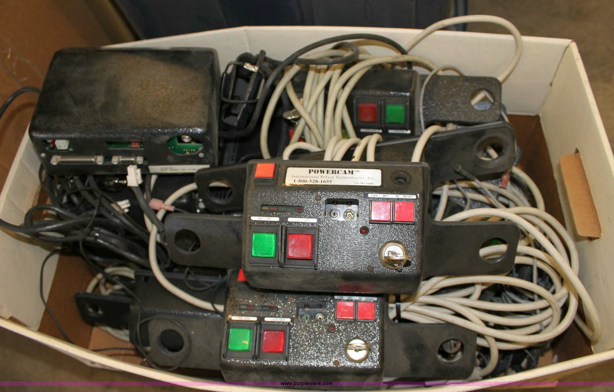 Purple Wave is selling a used Electronics in Kansas. This item is a Assorted recording equipment with the following: (2) custom signals, digital eye witness ion, Mountable review screen, control boxes, cameras, hard drive enclosures, and wiring, (2) Kuston signals VHS eye witness, Patrol cam, VCR, VCR enclosure, wiring harness, Assorted Kustom signals reference manuals, (2) eastern cameras, Two video switches, VCR, (3) stationary mount camera's, (6) Powercam recording units, Six control boxes and belt pack transmitters