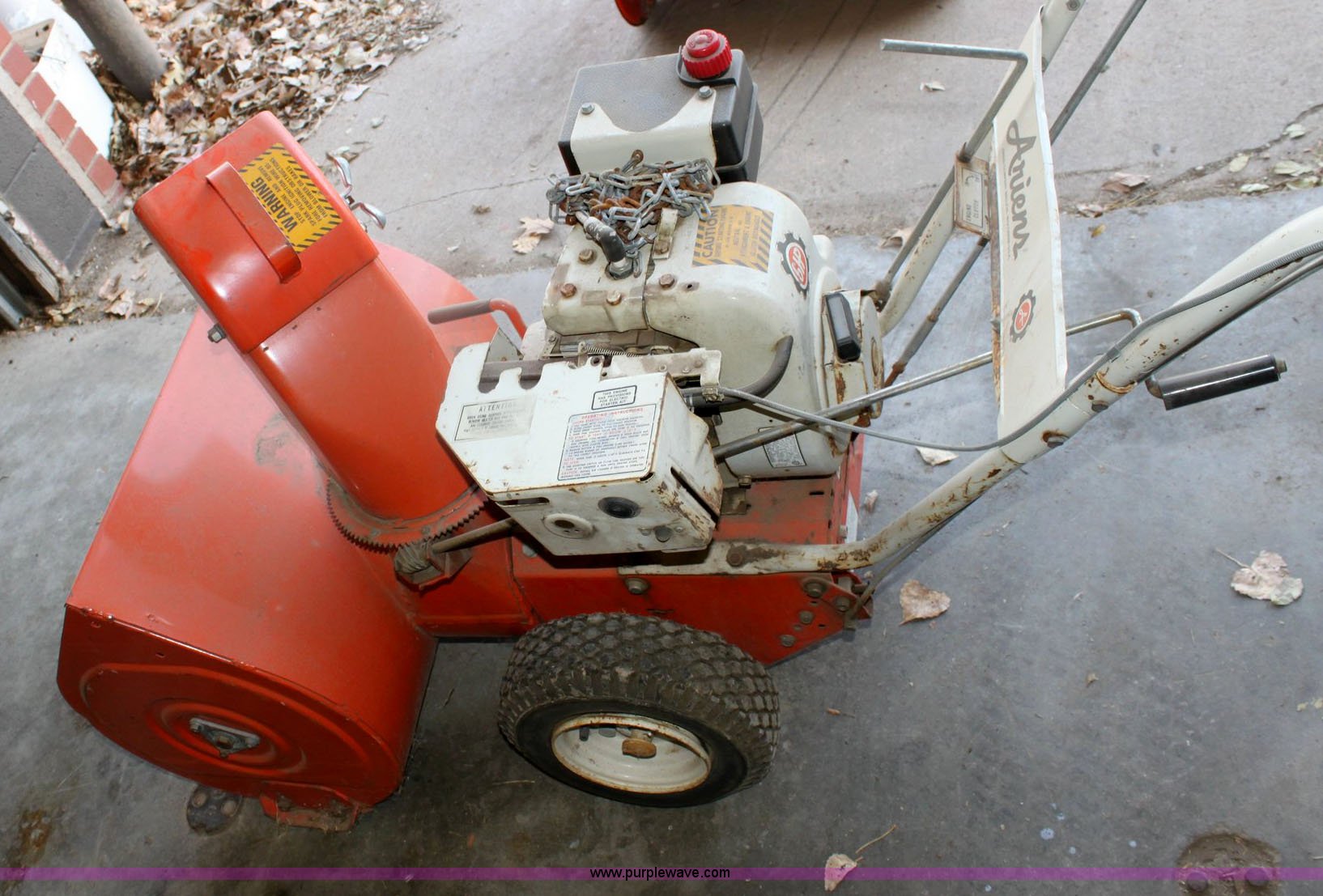 Purple Wave is selling a used Lawn and Garden in Kansas. This item is a (2) snow blowers with the following: Ariens ST724 24" snow blower, 7hp gas engine, Four speeds, Ariens 24" snow blower, 6hp gas engine, Four speeds