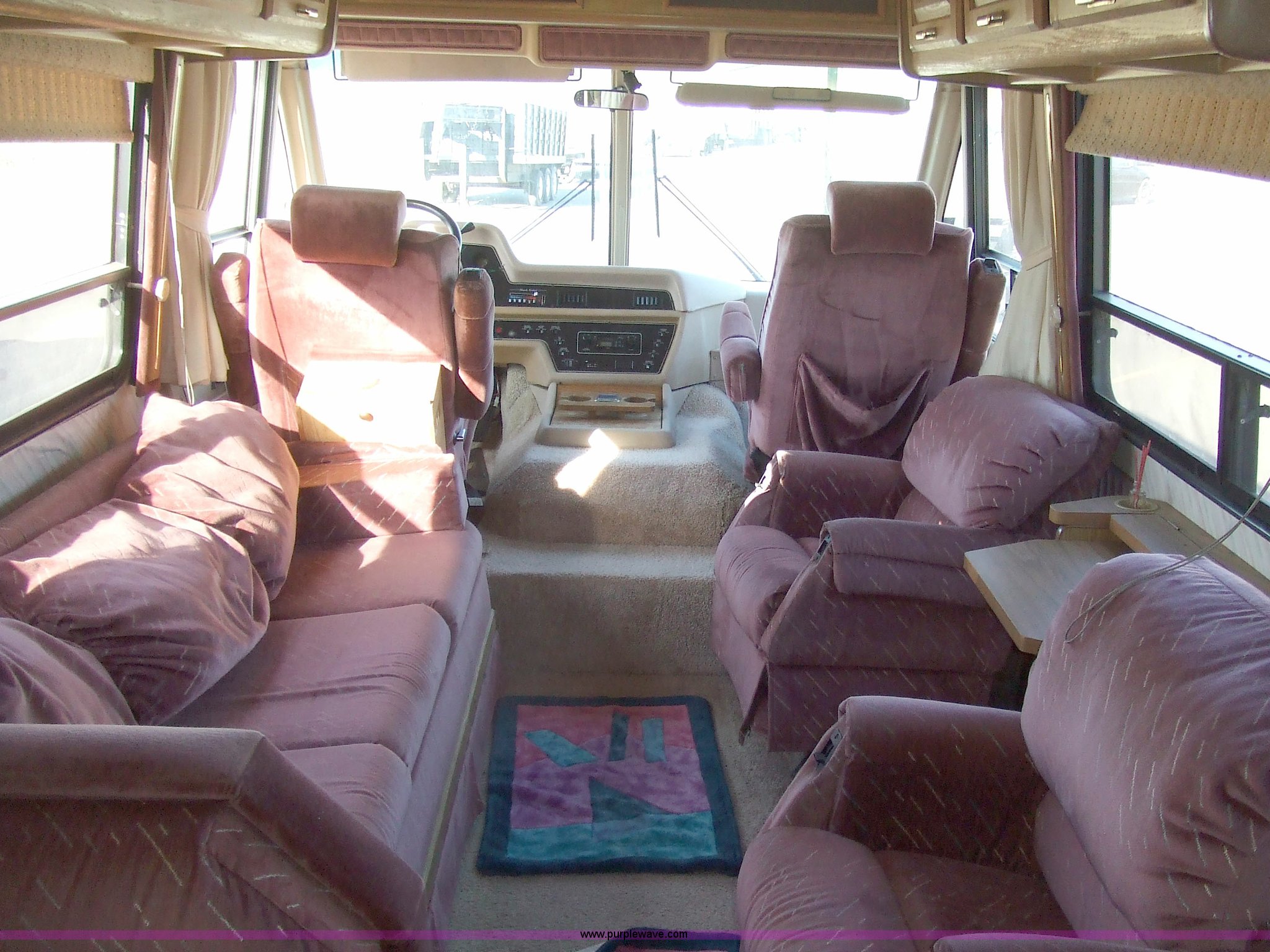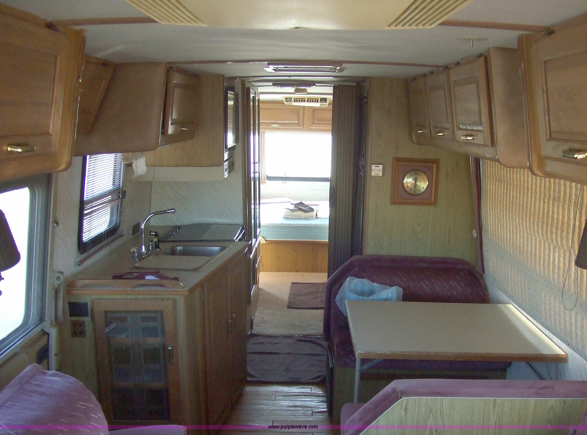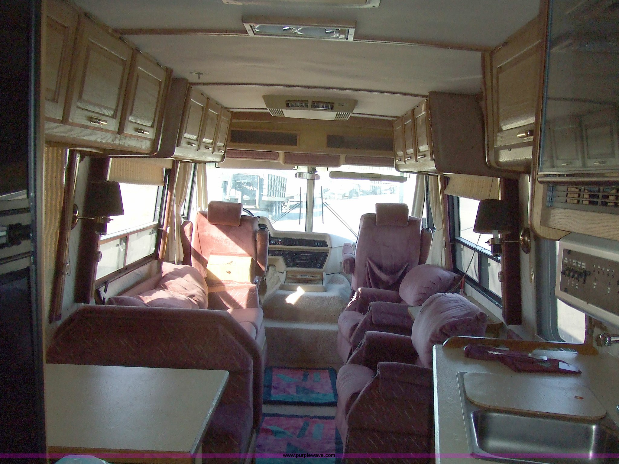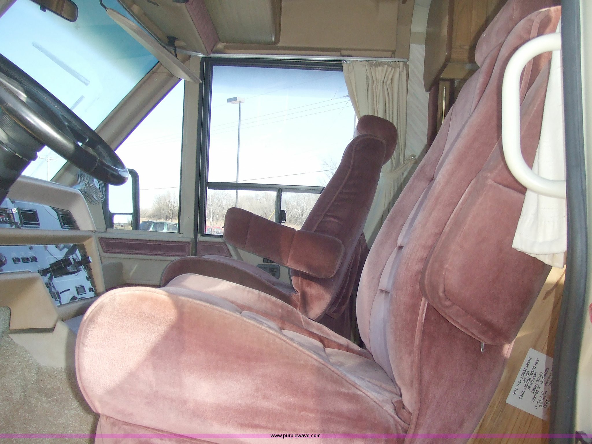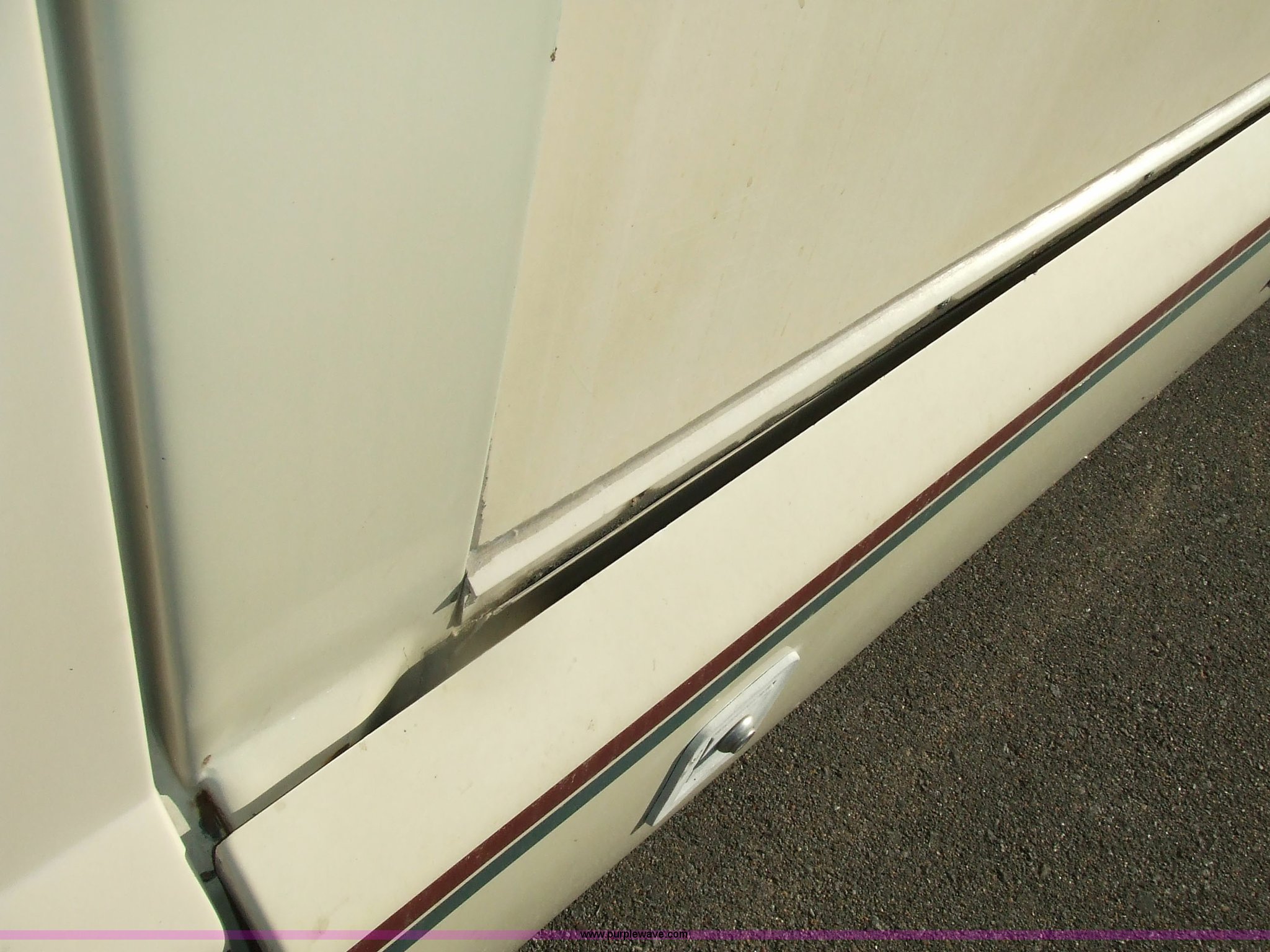 Purple Wave is selling a used RV in Kansas. This item is a 1987 Chevrolet Elandan 33' Winnebago with the following: 54,792 miles on odometer, V8 7.4L gas engine, Automatic transmission, Receiver hitch, Trailer wiring, MVP body, Model: WCP37RQ, Serial: 10p85x269780, GVWR: 17,000lbs, AC and heat, Tilt steering wheel, Cruise control, AM/FM/cassette player, Manual windows and locks, 8R19.5 tires, 110-125V electrical connection, Water hookup, Sewage drainage, Hydraulic leveling system, Aux gen time: 227.2, New battery, Bedroom, Bed, Storage, Radio, Bathroom, Sink, Shower, Toilet, Storage, Kitchen, Fridge/Freezer, Sink, Stove, Microwave, Table, Couch, Two chairs, Overhead storage, Approx $7,000 recently spent on new tires, engine tune-up, and lighting
