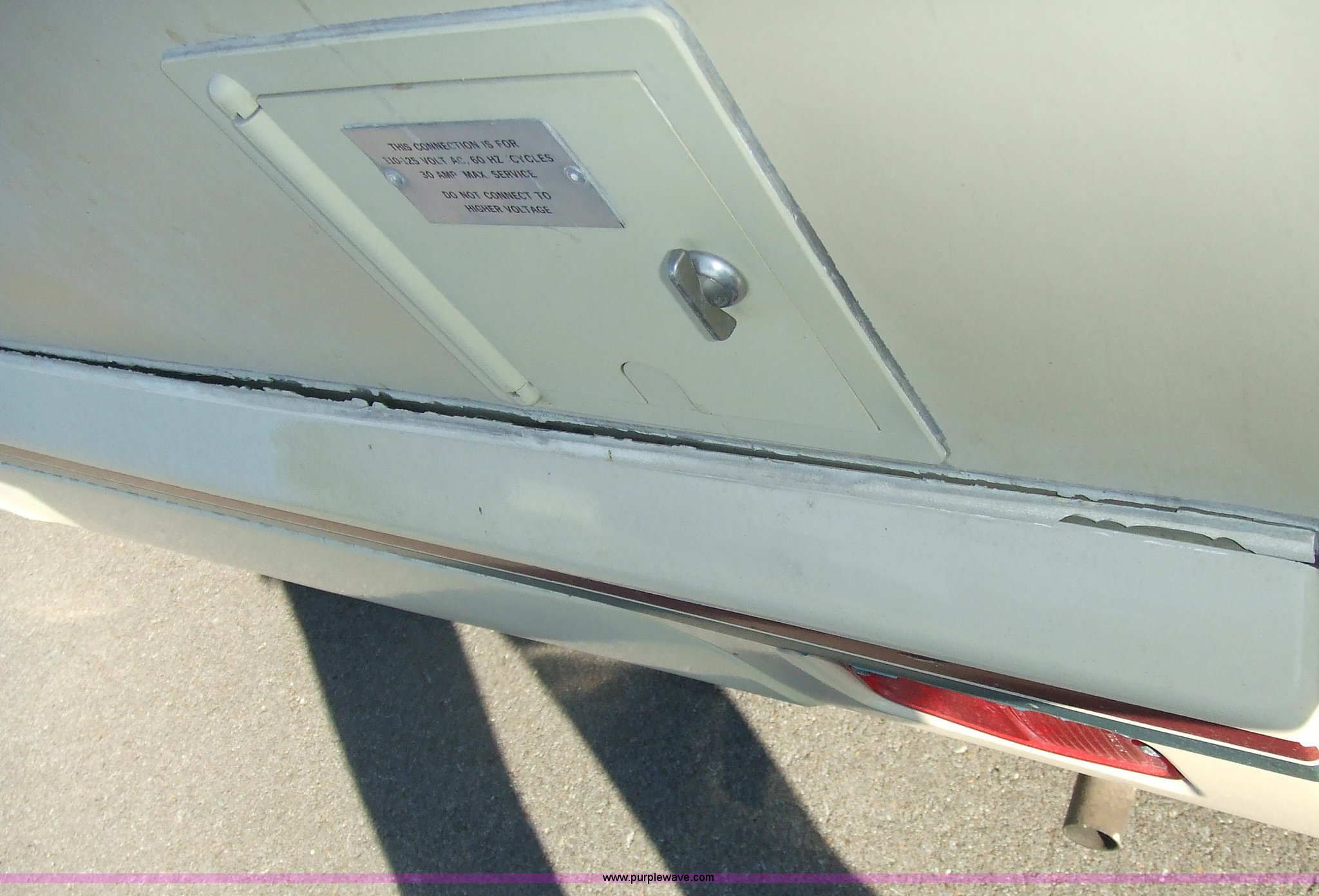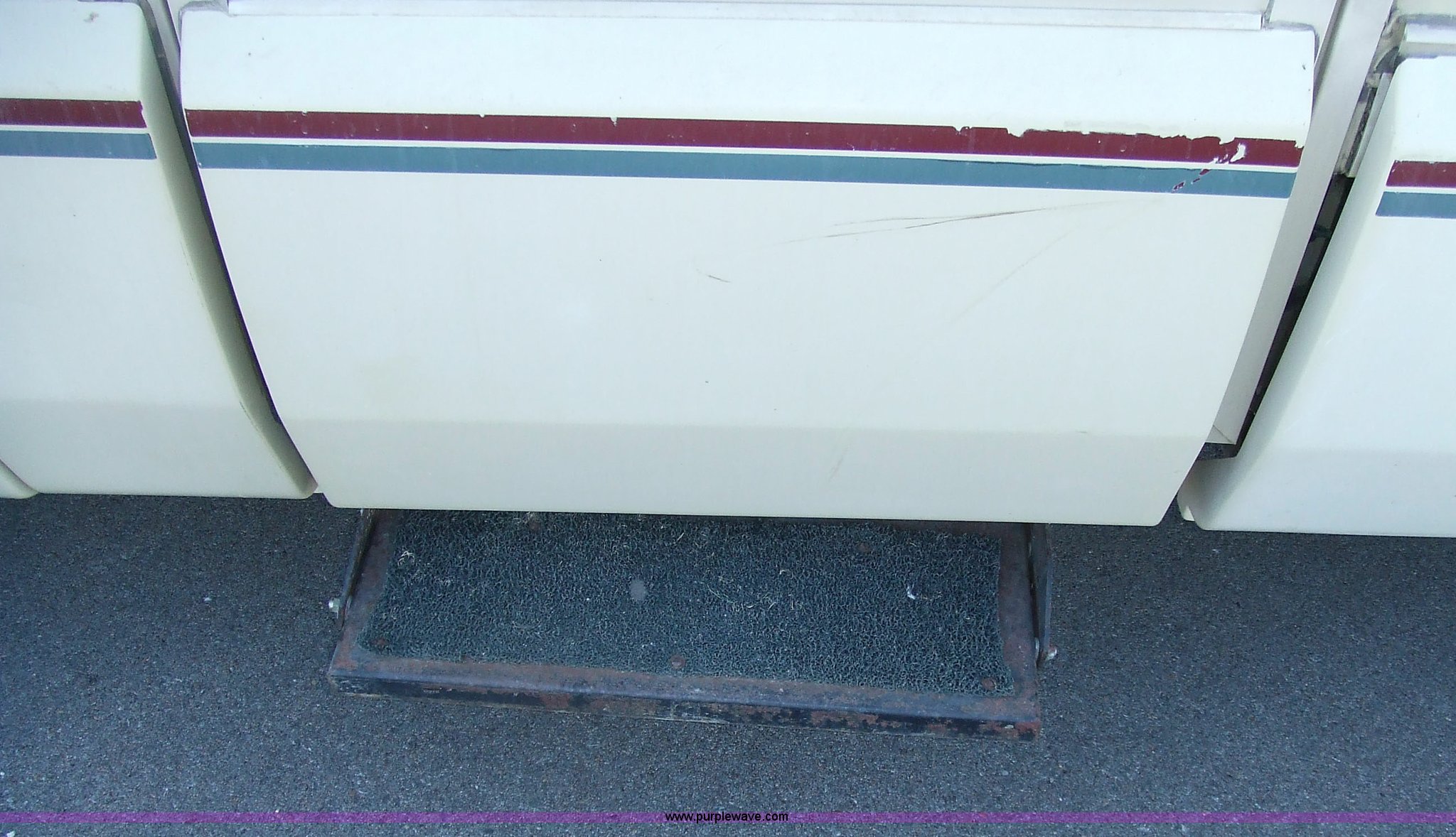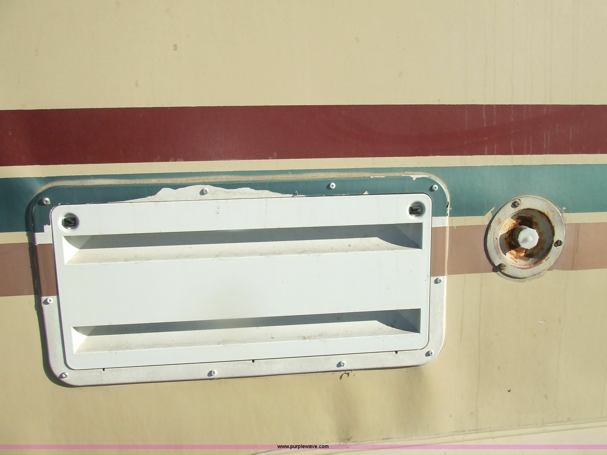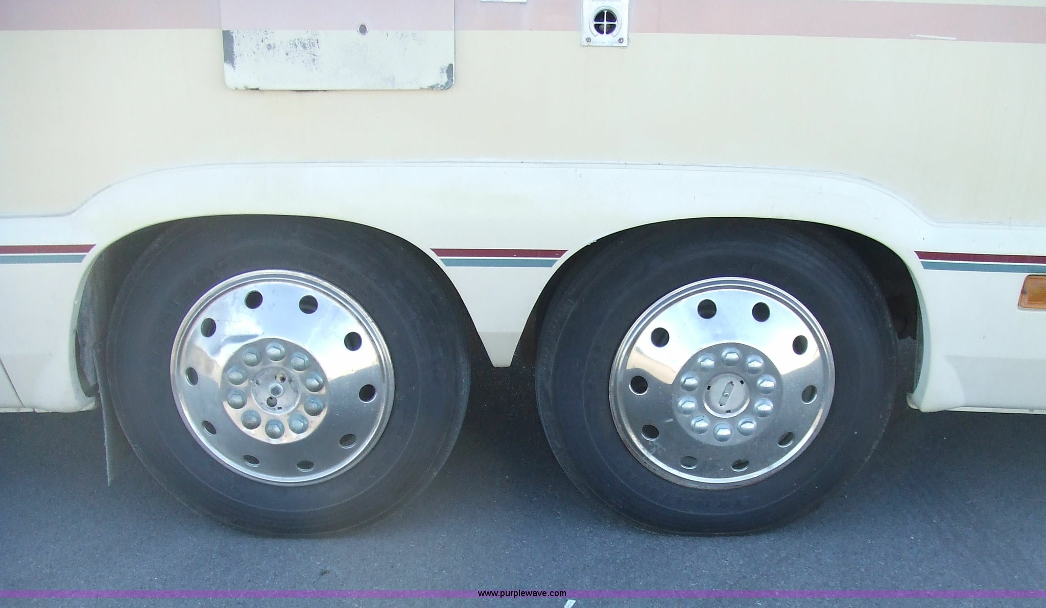 Purple Wave is selling a used RV in Kansas. This item is a 1987 Chevrolet Elandan 33' Winnebago with the following: 54,792 miles on odometer, V8 7.4L gas engine, Automatic transmission, Receiver hitch, Trailer wiring, MVP body, Model: WCP37RQ, Serial: 10p85x269780, GVWR: 17,000lbs, AC and heat, Tilt steering wheel, Cruise control, AM/FM/cassette player, Manual windows and locks, 8R19.5 tires, 110-125V electrical connection, Water hookup, Sewage drainage, Hydraulic leveling system, Aux gen time: 227.2, New battery, Bedroom, Bed, Storage, Radio, Bathroom, Sink, Shower, Toilet, Storage, Kitchen, Fridge/Freezer, Sink, Stove, Microwave, Table, Couch, Two chairs, Overhead storage, Approx $7,000 recently spent on new tires, engine tune-up, and lighting