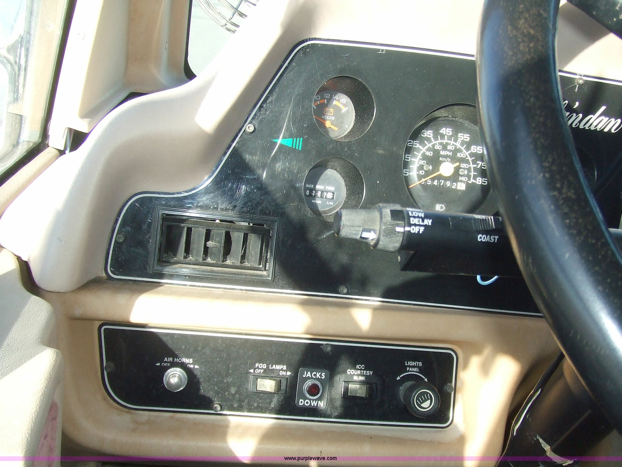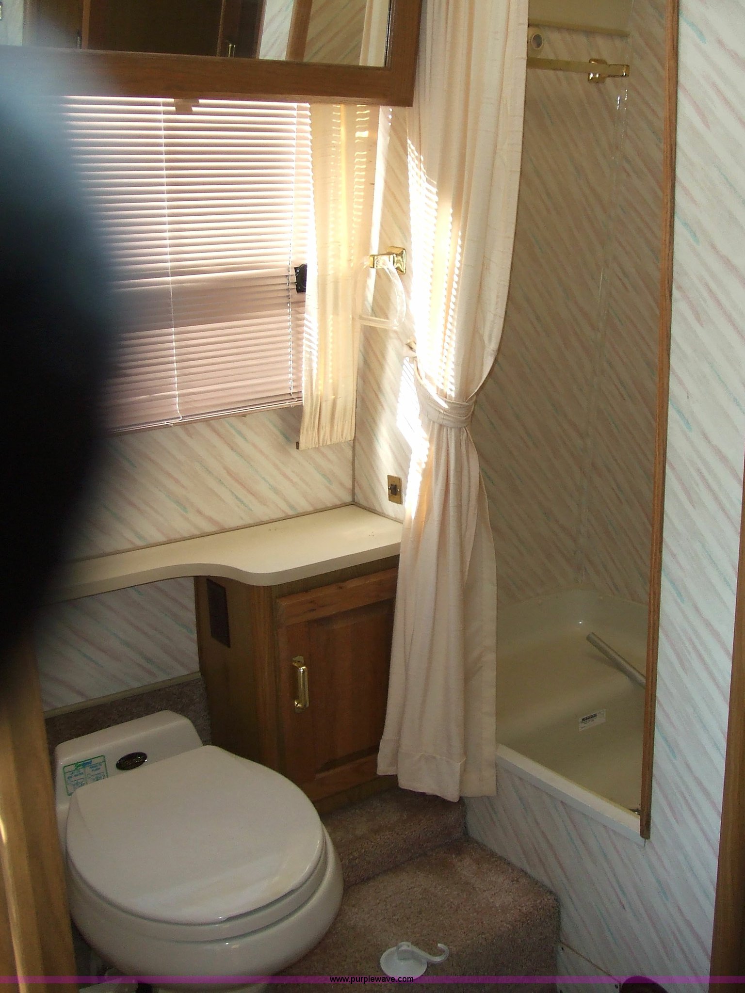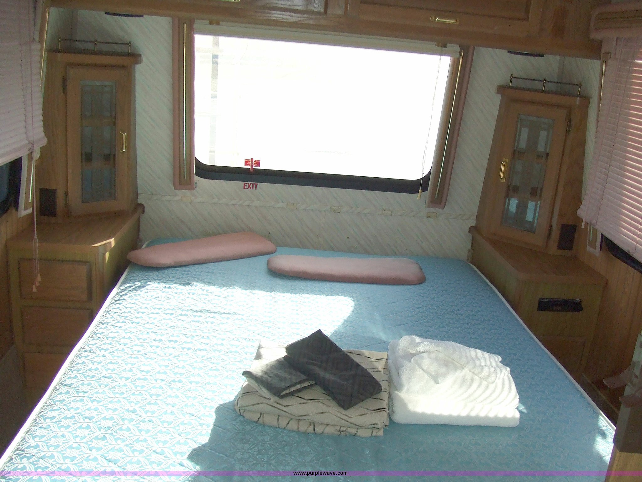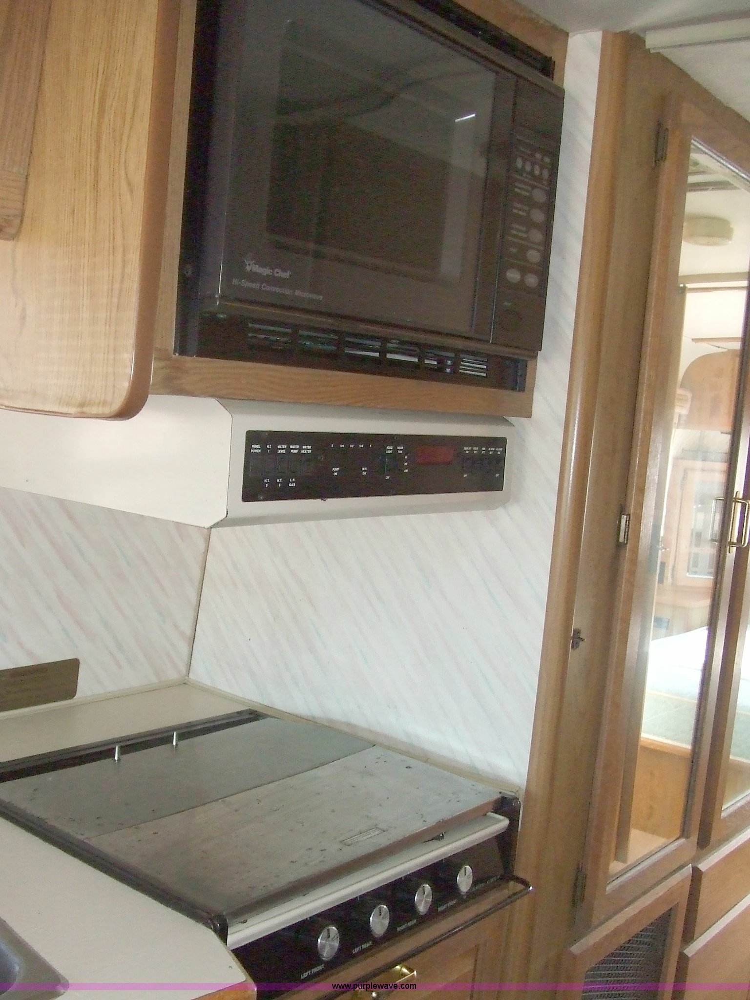 Purple Wave is selling a used RV in Kansas. This item is a 1987 Chevrolet Elandan 33' Winnebago with the following: 54,792 miles on odometer, V8 7.4L gas engine, Automatic transmission, Receiver hitch, Trailer wiring, MVP body, Model: WCP37RQ, Serial: 10p85x269780, GVWR: 17,000lbs, AC and heat, Tilt steering wheel, Cruise control, AM/FM/cassette player, Manual windows and locks, 8R19.5 tires, 110-125V electrical connection, Water hookup, Sewage drainage, Hydraulic leveling system, Aux gen time: 227.2, New battery, Bedroom, Bed, Storage, Radio, Bathroom, Sink, Shower, Toilet, Storage, Kitchen, Fridge/Freezer, Sink, Stove, Microwave, Table, Couch, Two chairs, Overhead storage, Approx $7,000 recently spent on new tires, engine tune-up, and lighting