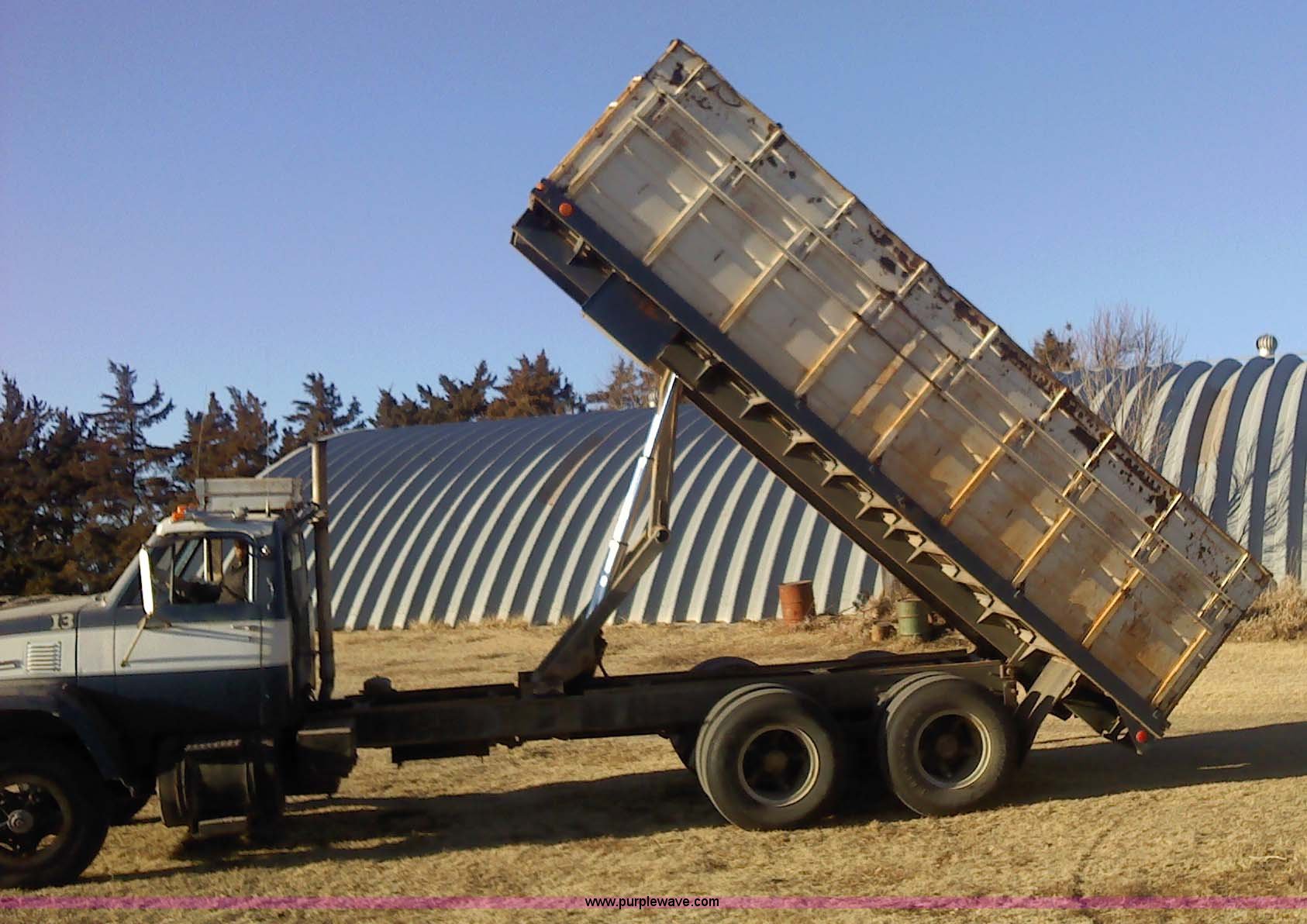 Purple Wave is selling a used Grain Truck in Kansas. This item is a 1973 GMC 9500TS tandem axle grain truck with the following: 346,727 miles on odometer, 1984 hours on meter, Detroit 671 diesel engine, 13 speed transmission, 20' steel bed, Three stage Doonan hoist with stabilizer, Triple dump end gate, Rear pintle hitch, Glad hands, 10.00-20.00 bias ply tires, Approx 60% tread, Dayton rims, 550-600 bushel capacity, AC not working