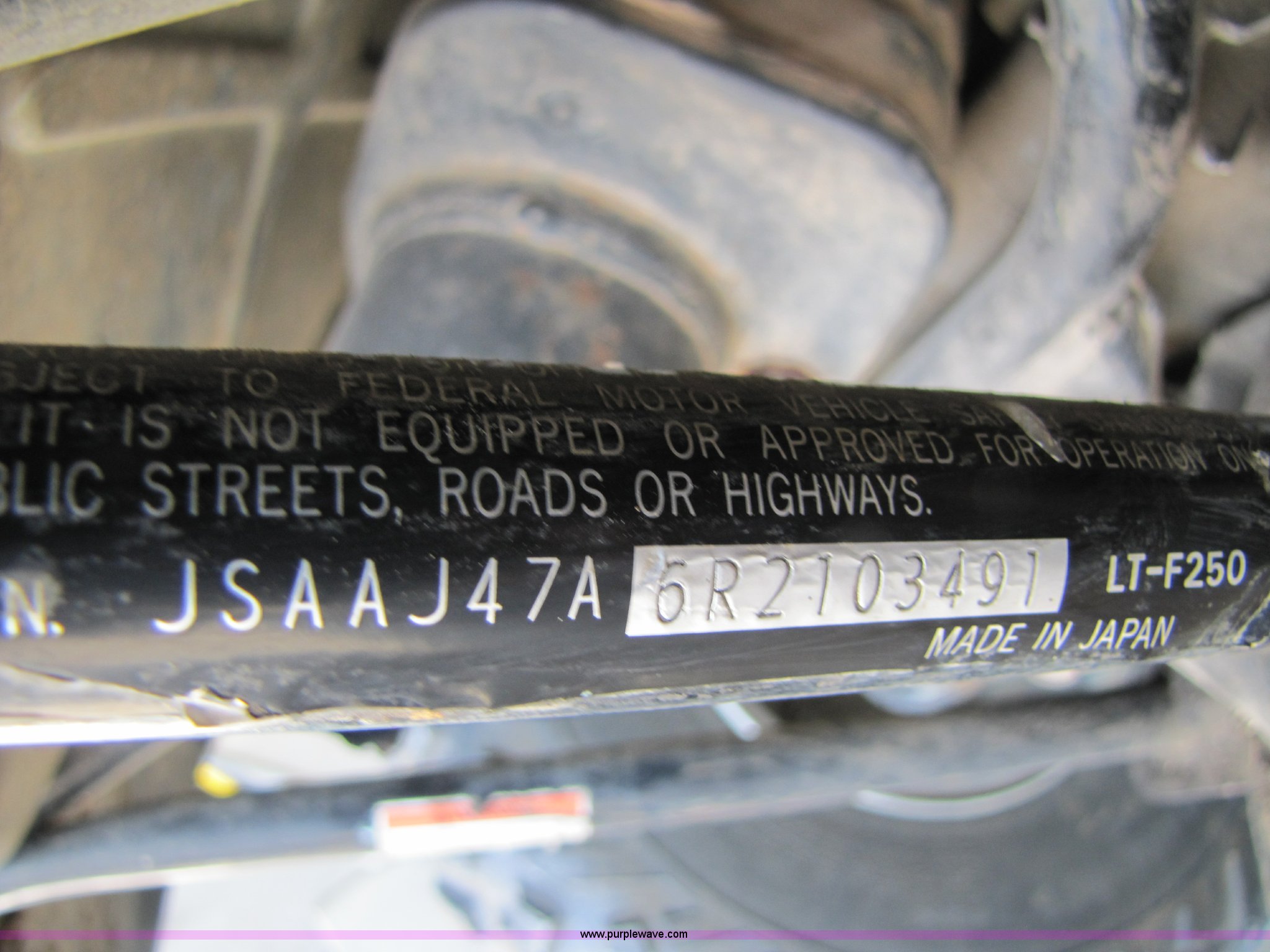 Purple Wave is selling a used ATV in Oklahoma. This item is a 1996 Suzuki quad runner 250 ATV with the following: 1,355 miles on odometer, 246cc gas engine, Five speed transmission with reverse, Hi/Lo side transmission, Two wheel drive, Front and rear cargo racks, 22x8-10 front tires, 24x11-10 rear tiers, Rear hitch